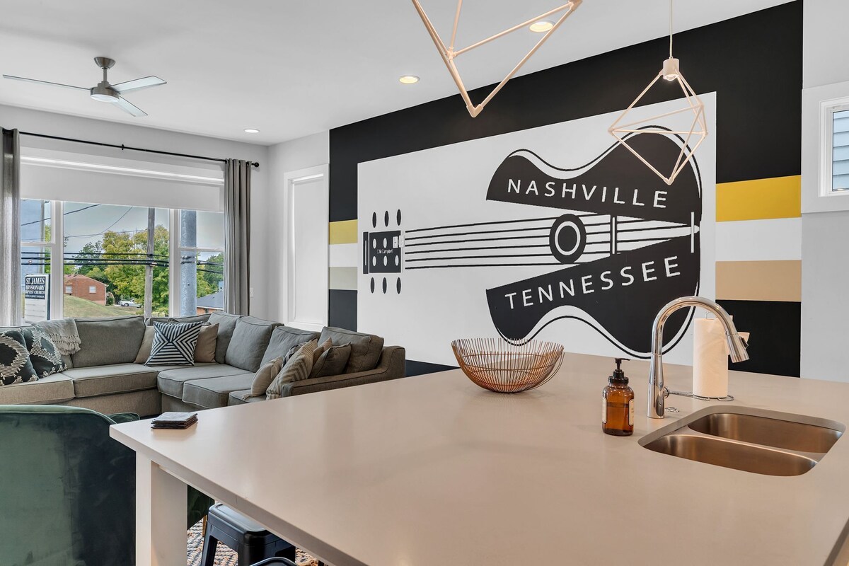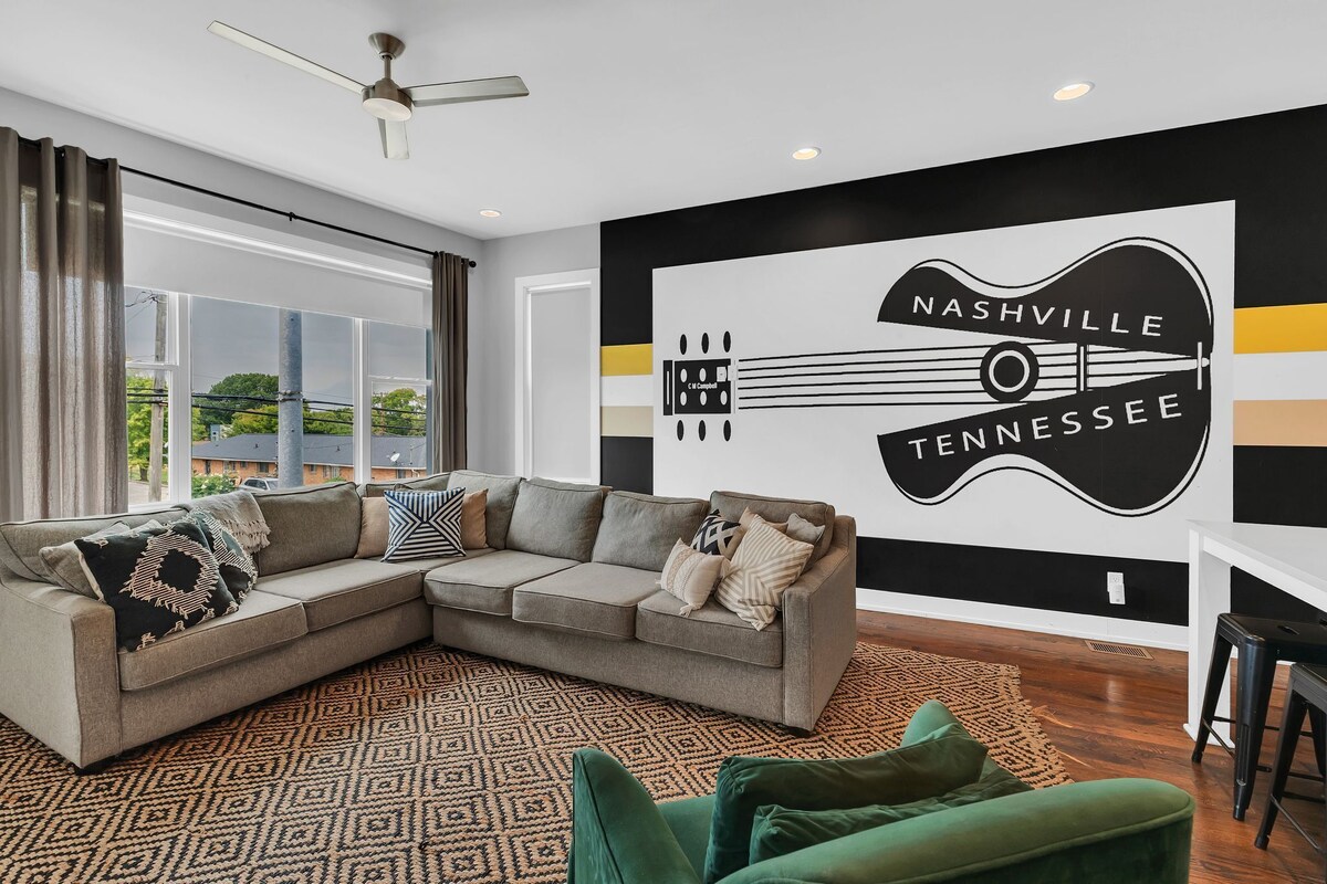 Discover this expansive Nashville retreat featuring two full homes side by side, offering 24 beds, multiple kitchens, rooftop lounges, and spacious layouts ideal for large gatherings. Enjoy modern amenities, 2-car garages, and plenty of space to relax, connect, and celebrate before heading downtown—just minutes away. Whether you’re exploring the city’s vibrant scene or staying in to unwind, this retreat delivers the ultimate mix of convenience, comfort, and style. 2 Connected Homes- Side by side properties. You will have access to both homes. Modern Luxury ★ Sleeps 32 ★2 Massive Rooftop Deck Welcome to your classic Nashville escape! These spacious homes features high-end designer finishes throughout — from hardwood floors and granite countertops to stainless steel appliances and custom lighting. Sleeps up to 32 comfortably • 8 Bedrooms: 2 King, 6 Queen, 4 Full, 12 Singles Fully stocked modern kitchen – gas range, stainless steel appliances, and everything you need to cook and entertain 2- 2 Car Garages for safe and secure parking that's always available 2 Rooftop terraces – perfect for sunset views and gathering Smart TVs – stream your favorite shows in multiple Nashville Guitar mural, picture perfect moment All of this makes for a perfect home base for families, groups, or corporate stays. Prime Location ★ Easy Access to Music City Hotspots You’re just minutes from Nashville’s best attractions, restaurants, and nightlife. Uber or Lyft puts everything within easy reach: 2–4 Minutes: • The Parthenon & Centennial Park • Climb Nashville • Dozens of great restaurants, bars & breweries 5–8 Minutes: • Broadway & Honky Tonk Central • The Gulch • Nissan Stadium (Titans games – join our tailgate!) • Bridgestone Arena (Predators hockey, concerts) • Top Golf • First Tennessee Park (Nashville Sounds) • Ascend Amphitheater • Ryman Auditorium 10–15 Minutes: • Nashville International Airport (BNA) • Gaylord Opryland Resort & The Grand Ole Opry You can even walk to Pastaria, Avo, Sump Coffee, Sandbar and the Nashville Brewing Company – all under 10 minutes on foot! Come enjoy the perfect mix of location, comfort, and fun — your unforgettable Nashville stay starts here. MULTIPLE HOMES: This listing gives access to two homes. You will be given access to each home. These homes do not have a connection inside, but can be accessed through the front doors. CHECK-IN: 4PM & CHECK-OUT 10AM: We may be able to provide an early check-in or a late check-out for an additional fee only if our schedule allows and hosts pre-approve in advance. The early check-in or late check-out additional accommodations start at $300. We can not accept any requests made within 5 days of your trip or during your stay because our cleaners are scheduled in advance and their schedules can not be changed last minute. Please pre-arrange in advance. NO LOCALS: We do not rent to locals who live Nashville or who live within 60 miles. Please do not book our home if you are local or plan to have locals visiting. We reserve the right to cancel any reservation without refund of any local who books our home. Thank you! DOGS: We happily welcome 1-2 well-behaved, house-trained adult dogs to stay in our home. We ask that all dogs be crated when left alone in our home, so please bring a crate with you. To ensure a smooth process, all dogs must be discussed and pre-approved by host within 24 hours of booking. Please be sure to add them to your reservation. $100 flat pet fee applies for up to two dogs. We regret to inform you that dogs under 1 year old, cats, or other animals are not allowed. Be please respectful and clean up after your dog(s) in our yard to avoid a fine. Any damage from pet will guests responsibility as an inspection will occur at check-out. SECURITY: There are multiple cameras located on the outside of the home. There are 3 cameras by the front door of each home, one camera near each garage, and one rooftop camera. All of these record both sound and audio. There are absolutely no cameras inside the home. These are there for your safety and protection. GUESTS WILL NEED TO USE STAIRS: These 3-story homes have many stairs. Guests will need to use stairs during their stay. We are happy to host children, but it's important to note that our home is not childproofed and has many stairs. Please supervise children at all times. A lot of time, care, and money has been put into these homes that we LOVE. We only want to have the best guests who will respect our property and neighbors. If you've made it this far on the listing and have questions, please send us an inquiry! Our prices include all fees. No hidden fees.