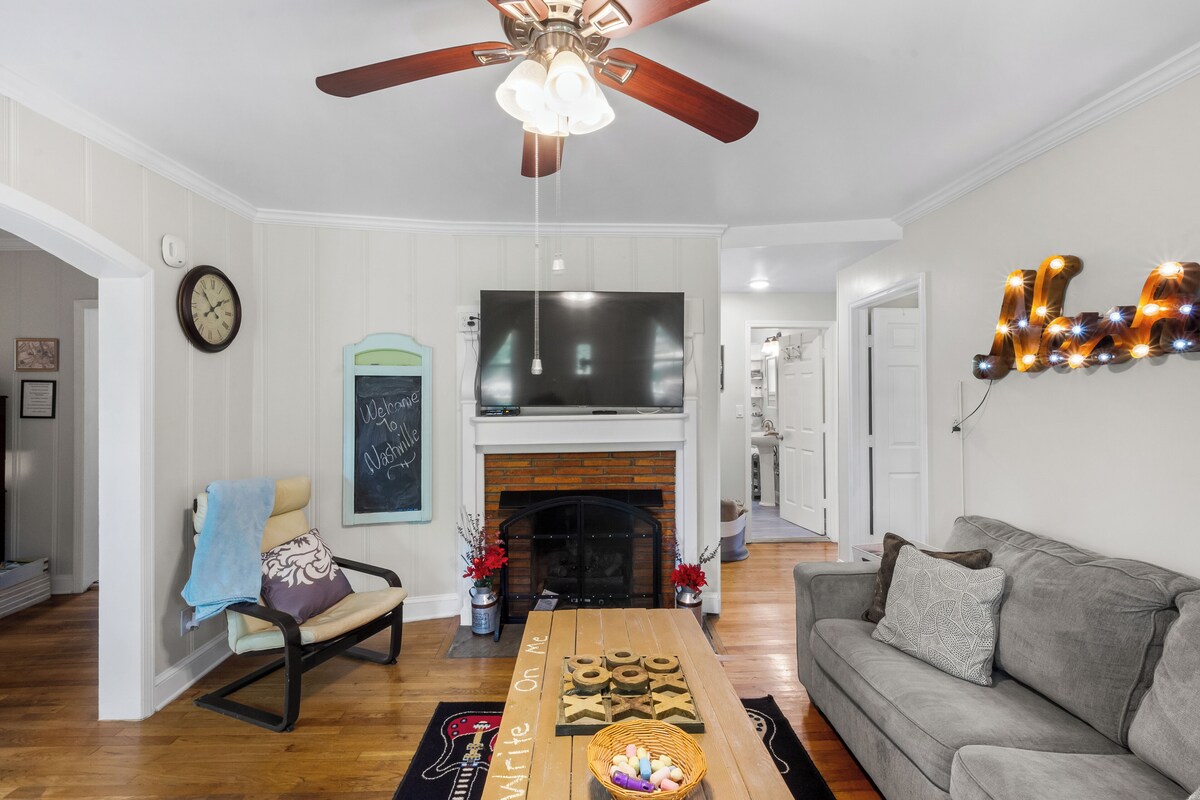 This home is cute and very comfortable! It has everything you need to feel at home. Enjoy the privacy of a corner acre lot w/private fenced in back yard; this little bungalow brick house has 2 bdrms, office w/twin bed, sofa queen bed, comfortably sleeping 8, queen air mattress and pack-n- play. Full bath and a 1/2 bath, galley style kitchen, laundry room w/washer and dryer, living room w/fireplace, all on one level. 5 min- Nashville Airport 10 min-Downtown Nashville 10 min- Nashville Zoo Enjoy the peaceful outdoors and relax on the front porch swing or rocker. The large back yard is surrounded by a privacy fence and has a good size deck for sunbathing and relaxing. This home has everything you need to feel at home while away from home. It has a complete kitchen;(Pots/pans, dishes, dishwasher, stove, over range microwave, refrigerator. The laundry room has a washer and dryer (plenty of detergent). There are hardwood floors throughout and also a cozy gas fireplace. There is 24/7 access, We are always available if you need anything! Always available by call or text. This is such a cute neighborhood. I have always felt safe taking walks around the neighborhood anytime of day. Seven Oaks Park is a short walk away, featuring one of the best disc golf courses in Nashville, tennis courts, covered picnic tables, and kids play area. Located right off Murfreesboro Pike with access to Briley Pkwy, I-24 east and west, I-65 south, I-40 east and west and I-440. The airport is about 5 minutes away, Opry Mills approximately 10 minutes, and only 10 minutes from downtown Nashville. Inexpensive ride with Lyft or Uber pretty much anywhere and a mile walk to the major bus line. Queen Air Mattress, pack-n-play and highchair available upon request. $100 per pet. Stay’s a month or longer will have a higher pet fee. Pets allowed Only upon owner Approval. $75 early check-in or late check-out fee. *Home is cleaned according to CDC guidelines* Pets are allowed on case by case basis with pre-approval only. Pets are NOT allowed on the furniture and NO pee pads are allowed in the house. Pets must go outside to the restroom and guest must clean up after your pet. Any feces outside that has not be cleaned up, if pee pads were used in the house, or any evidence that a pet was on the furniture will result in an additional cleaning fee of a minimum of $100 which will be deducted from the deposit. If you show up with an unauthorized pet, you could be asked to vacate the property and be charged double the pet fee. If any smoking is done in the house there will be a $200 per day fine deducted from your deposit. Do Not Move Furniture. This will result in a fine of $100 and any damages caused. -Quiet hours are from 11pm-6am Please be respectful of my home and enjoy your stay!! No locales and No unauthorized guests. You will be charged an additional $100 per person and asked to vacate. No Parties, Smoking outside only, No parking in the grass without permission and please don't litter. The house does have 24/7 video and recording surveillance on the exterior of the property(back,frontand sides). Our prices include all fees. No hidden fees.