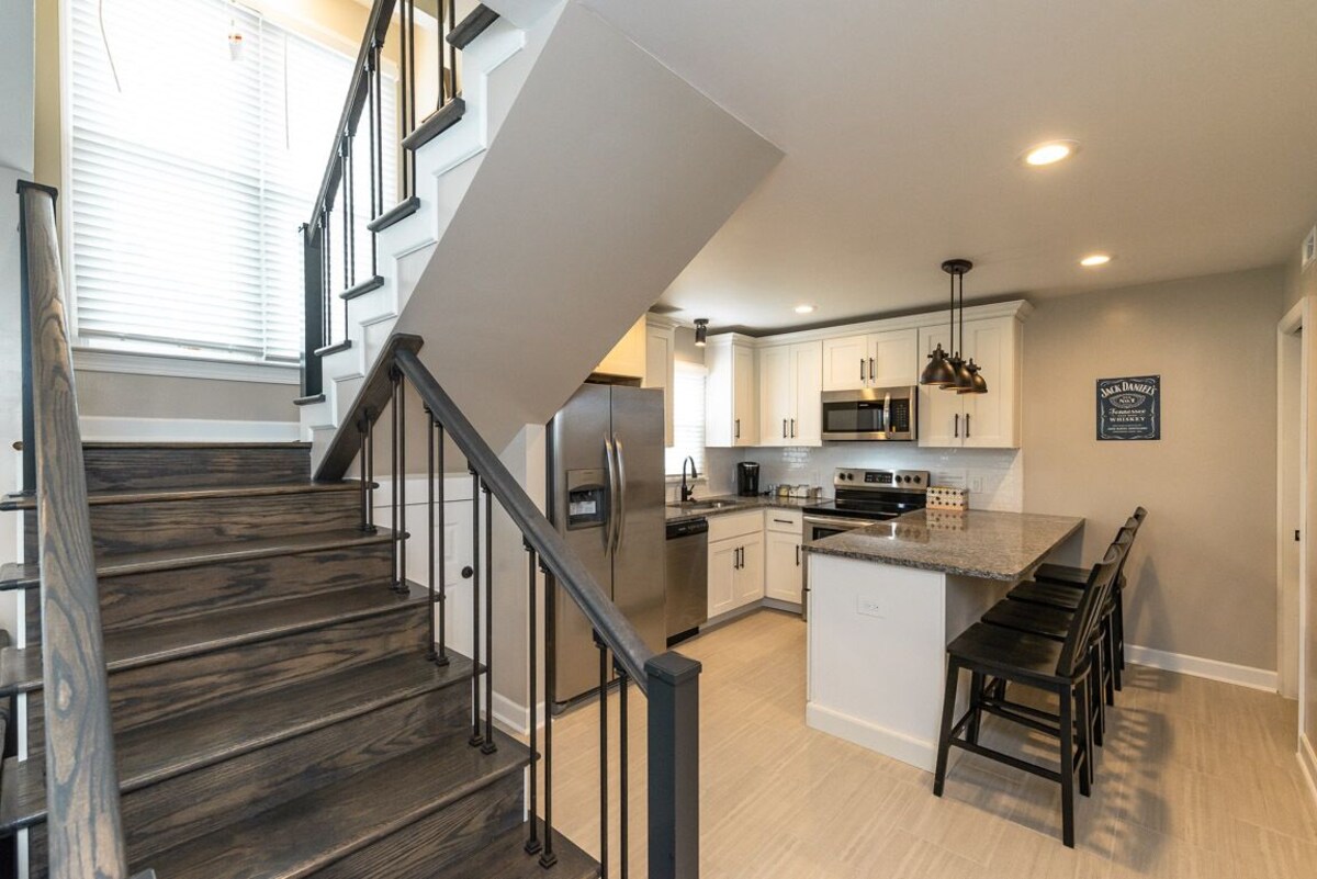 Bedroom 1: King Bed | Bedroom 2: King Bed Renovation completed 2020. Experience Nashville from this charming 2-bedroom, 2-bathroom vacation rental condo that sleeps 6! Centrally located in scenic and historic Hillsboro Village just two miles from downtown, this unit offers quick access to the best of Nashville without the noise and crowds of staying downtown. Our unit features a refreshing living space, outfitted with clean simple furnishings and scintillating styling cues to create a fashionable experience. The full kitchen with stainless steel appliances and a Keurig coffee machine combined with a seating peninsula makes preparing and eating any meal a breeze. Rest and relax in the living room. Make yourself comfortable on the plush corner sofa while you stream your favorite show on the flat-screen Smart TV. Upstairs, the unit features 2 private bedrooms complete with a Jack and Jill style bathroom that allows everyone their own sink and vanity and provides shared private toilet and tub. Downstairs guests can enjoy another full bathroom located conveniently next to the kitchen and living room. The oversized sectional sofa can sleep two additional guests. Hillsboro Village is a slice of southern charm tucked away from the hustle and bustle of downtown Nashville. Eat dinner like a local at the historic Brown’s Diner which has continuously served Nashvillians since 1927 when it opened as a mule drawn trolley car. Other local restaurants are the famous Pancake Pantry and coffee enthusiast haven Fido. Don’t forget to consider eating brunch at Biscuit Love or Ruby Sunshine. The Grilled Cheeserie offers a unique and memorable lunch experience. The Village also hosts familiar favorites like Hopdoddy, Double Dogs, Jeni’s, and Crumbl Cookies. Provisions are plentiful as well with a Kroger grocery store and Village Wines located a short walk away down tree lined 21st Avenue. Looking for something to do? The Belcourt Theatre has been operating in the Village since 1925 and screens a variety of films every day. AnzieBlue, AB, offers regular live music performances. On a sunny day it’s hard to beat Fannie Mae Dees Park, better known to locals as Dragon Park for its large mosaic dragon sculpture. Shopping opportunities abound with the Village’s flower shop, jewelry stores, and numerous clothing shops like Posh, Altar’d State, Molly Green, Rebecca James, Dress Up, Festivity, UAL, and the Nash Collection. All of this is located in just a small 5 block radius largely in beautiful, historic brick buildings. Several distinctive artworks and murals ad to the ambience of the neighborhood. Nearby and within walking distance is Vanderbilt University and its medical center. Also nearby is the commercial district at 12th South, Belmont University, Music Row, and Nashville's Centennial park and full sized replica parthenon. The Village is located less than two miles from the heart of Nashville’s downtown scene and the trip can be made by foot, Nashville’s WeGo’s Number 7 Bus which runs every 20 minutes, car, or rental bike. Downtown Nashville is home to a potpourri of exciting attractions. Pay homage to the legends at the Country Music Hall of Fame or get tickets for a show at the Ryman Auditorium. See a show at the Ascend Amphitheater or take in some history at the Tennessee State Museum. Our prices include all fees. No hidden fees.