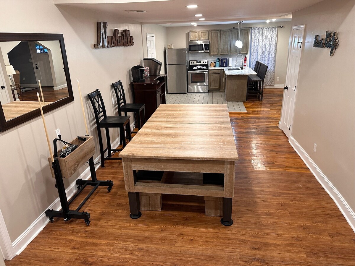 This newly renovated Nashville Home is in a great quiet neighborhood with a large fenced in backyard. It has a fully functioning new kitchen with granite counters, new appliances, Washer/Dryer combo, and a Keurig Coffee maker. This 5 bedrooms, 5 bath (1 king bed, 8 full beds and 2 twin beds) is tastefully decorated for you to enjoy the comforts of home. The whole house has wifi internet and over 200 channels HD TV. Dine in kitchen. There are 2 washers and dryers available for your use.