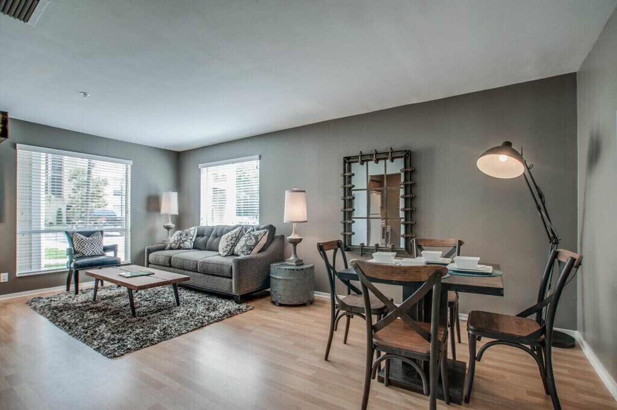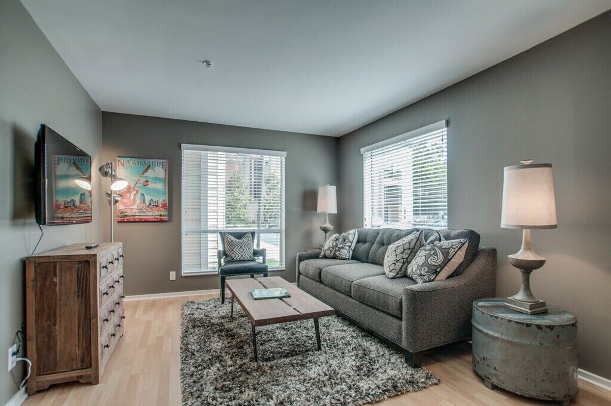 Newly renovated and beautifully decorated one bedroom, one bath condo with kitchen near downtown Nashville. King bed and sleeper sofa sleeps 4. Sleeps 5 with blow up mattress for an additional fee. First floor. No Stairs. Directly across from beautiful Riverfront Pool. Pool open only from Memorial Day to Labor Day. Walk to Nashville's new Sounds Stadium in 5 min.. 15 minute walk to the heart of Germantown. 20 minute walk to the state Capitol. 25 min walk to Broadway/music row or take a 10 min cab/uber. 15 min. walk to Nashville B-cycle bicycle rental at 424 3rd Ave. Pet friendly with adjacent pet walking area to this 1st floor condo. Laundry room and exercise room available within the complex. Cant beat this value. Parking included. Our prices include all fees. No hidden fees.