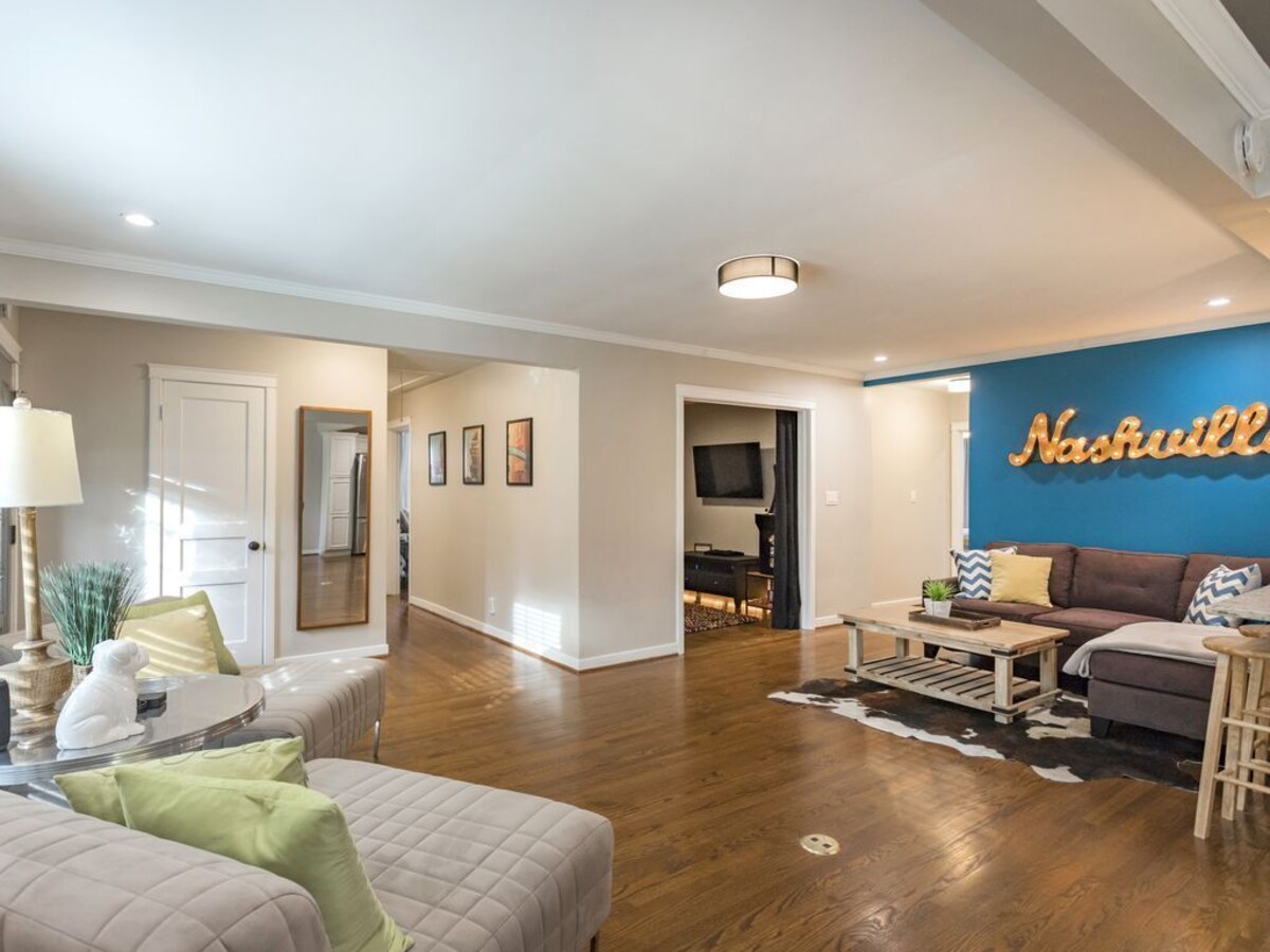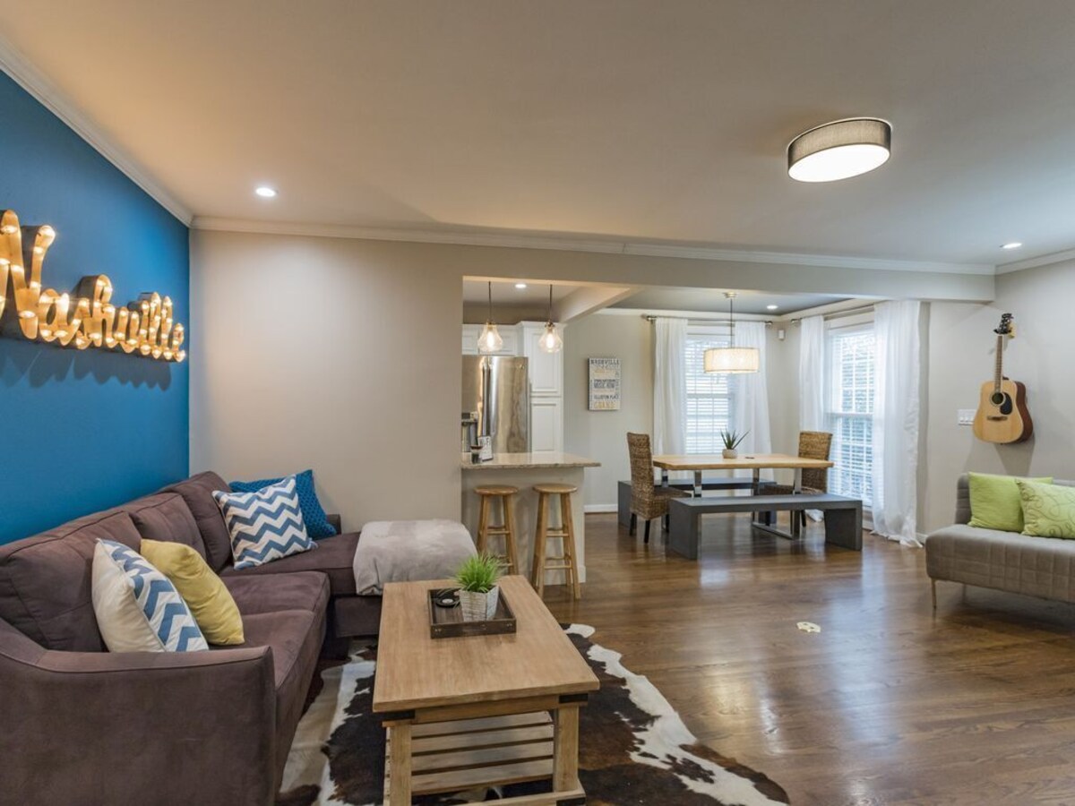This house is so cozy and close to everything! Whether you are looking for a nice romantic weekend away or a family vacation, it is perfect and quiet. Inside, there are beds for 10 people, multiple seating areas for large groups, and games galore. The outside, however, is what sets this house apart! The fully fenced yard is designed as the perfect urban oasis only 4 MILES from Downtown Nashville! There is a hot tub, outdoor furniture and dining, a fire pit, grill, yard games, and MORE!