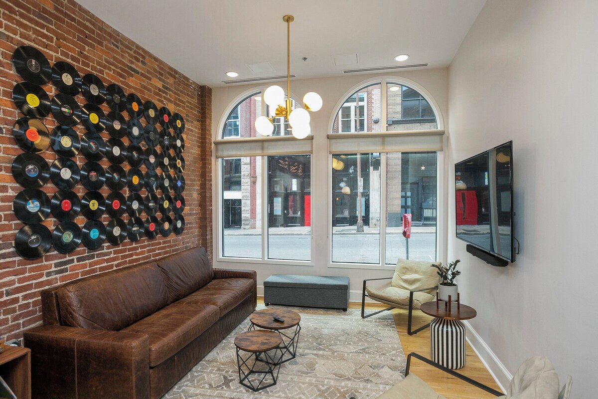This Luxury Condo will knock your socks off with high end amenities and luxurious accommodations. Professionally styled with decor from Restoration Hardware. Just steps to all the Nashville Downtown Hot Spots. 2 Direct Blocks to Broadway and 1/2 a block to Printer`s Alley. First Floor walkup Condo, Large open floor plan with Breakfast Island, Comfy Livingroom with large King Sleeper, 4 bed rooms and insane beauty bar to prep for all your weekend adventures. 3 full bathrooms, Washer - Dryer, Well-appointed kitchen. This contemporary loft is the perfect setting for your next Nashville Celebration. Enter off 3rd Ave North just 2 blocks from all the Attractions that Nashville is known for. Located in the heart of downtown, this converted law office is now Nashville's premier Music City destination. The Lounge area is well appointed with all the luxuries for your Best Nashville Experience. 75\ ,