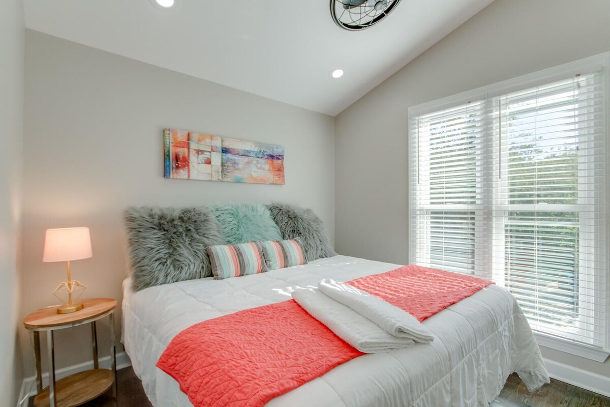 Bedroom 1: King Bed | Bedroom 2: King Bed Renovation completed 2020. Experience the musical magic of Nashville from this charming 2-bedroom, 2-bathroom vacation rental condo that sleeps 6! Located deep in scenic and historic Hillsboro Village just two miles from downtown, this unit offers quick access to the best of Nashville without the noise and crowds of downtown. Our unit features a musically inspired living space, outfitted with clean furnishings and music inspired art to create a truly Nashville experience. The full kitchen with stainless steel appliances and a Keurig coffee machine combined with a seating peninsula makes preparing and eating any meal a breeze. Rest and relax in the living room. Make yourself comfortable on the plush sectional sofa while you stream your favorite show on the flat-screen Smart TV. Upstairs, the unit features 2 private bedrooms complete with a Jack and Jill style bathroom that allows everyone their own sink and vanity and provides shared private toilet and tub. Downstairs guests can enjoy another full bathroom located conveniently next to the kitchen and living room. The sleeper sofa sleeps an additional two guests. Hillsboro Village is a slice of southern charm tucked away from the hustle and bustle of downtown Nashville. Eat dinner like a local at the historic Brown’s Diner which has continuously served Nashvillians since 1927 when it opened as a mule drawn trolley car. Other local restaurants are the famous Pancake Pantry and coffee enthusiast haven Fido. Don’t forget to consider eating brunch at Biscuit Love or Ruby Sunshine. The Grilled Cheeserie offers a unique and memorable lunch experience. The Village also hosts familiar favorites like Hopdoddy, Double Dogs, Jeni’s, and Crumbl Cookies. Provisions are plentiful as well with a Kroger grocery store and Village Wines located a short walk away down tree lined 21st Avenue. Looking for something to do? The Belcourt Theatre has been operating in the Village since 1925 and screens a variety of films every day. AnzieBlue, AB, offers regular live music performances. On a sunny day it’s hard to beat Fannie Mae Dees Park, better known to locals as Dragon Park for its large mosaic dragon sculpture. Shopping opportunities abound with the Village’s flower shop, jewelry stores, and numerous clothing shops like Posh, Altar’d State, Molly Green, Rebecca James, Dress Up, Festivity, UAL, and the Nash Collection. All of this is located in just a small 5 block radius largely in beautiful, historic brick buildings. Several distinctive artworks and murals ad to the ambience of the neighborhood. Nearby and within walking distance is Vanderbilt University and its medical center. Also nearby is the commercial district at 12th South, Belmont University, Music Row, and Nashville's Centennial park and full sized replica parthenon. The Village is located less than two miles from the heart of Nashville’s downtown scene and the trip can be made by foot, Nashville’s WeGo’s Number 7 Bus which runs every 20 minutes, car, or rental bike. Downtown Nashville is home to a potpourri of exciting attractions. Pay homage to the legends at the Country Music Hall of Fame or get tickets for a show at the Ryman Auditorium. See a show at the Ascend Amphitheater or take in some history at the Tennessee State Museum. Our prices include all fees. No hidden fees.