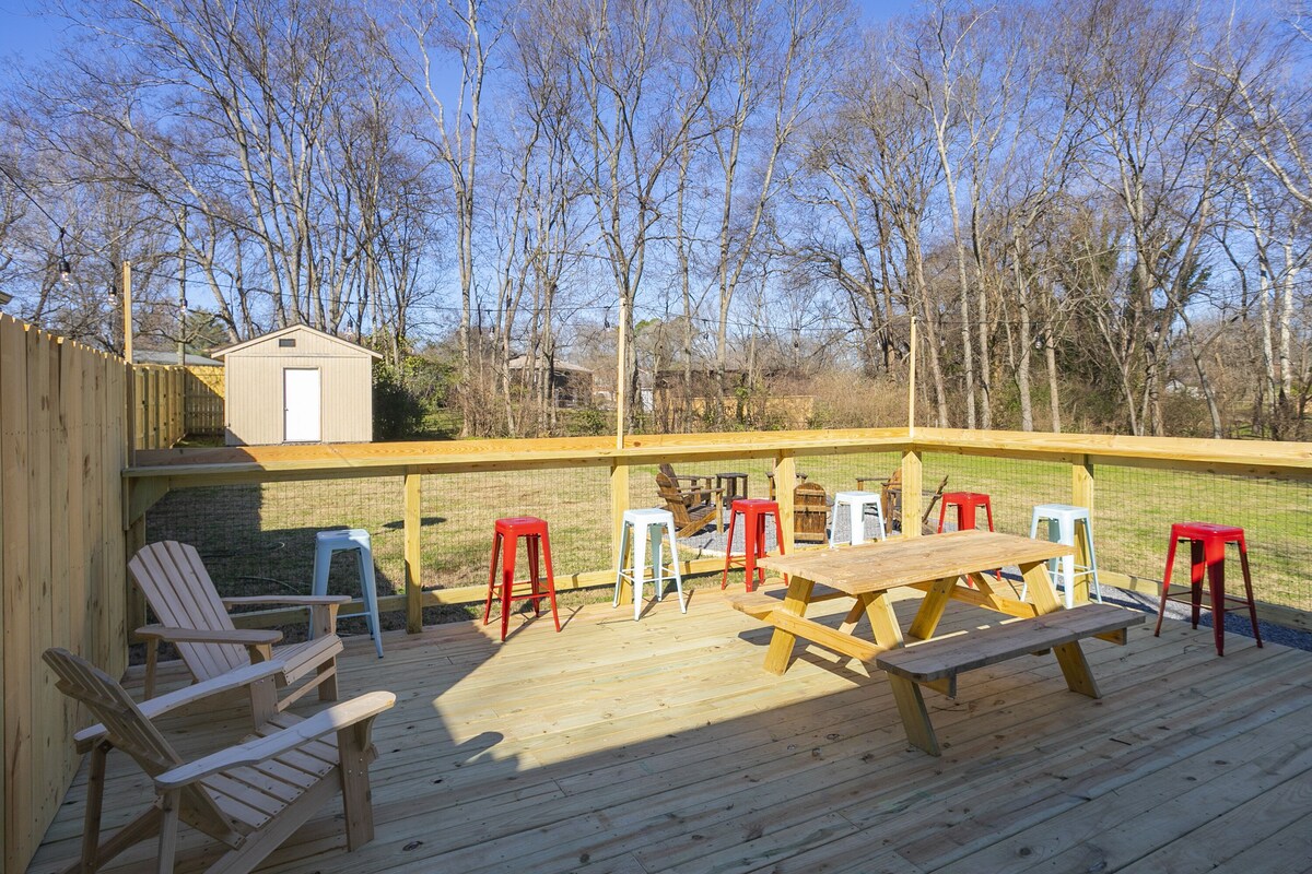 The one level house is situated on 1.2 acres with a fully fenced backyard that includes a brand new deck with outdoor seating, huge fire pit with chairs, picnic table, hammock, bbq grill etc. The house is 1850 square feet and 4 full bedrooms and 2.5 baths. There is also a huge detached garage that includes ping pong, TV, foosball, pop a shot, cornhole, darts, bumper pool/poker table, fridge, yard games, etc.! The property is well lit, has plenty of parking, and even includes a small stream! Only 8 miles to downtown Nashville and very close to numerous restaurants, bars, etc.
