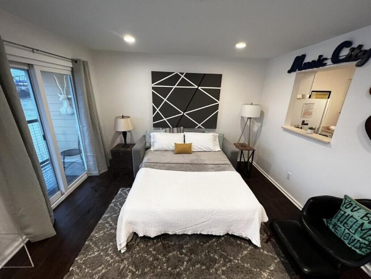 Your downtown Nashville sanctuary awaits! Discover the perfect blend of comfort and location in this stylish 1-bedroom, 1-bathroom condo that accommodates 4 guests. Thoughtfully furnished with everything you need for an unforgettable Music City experience, this riverside retreat offers breathtaking Cumberland River views while keeping you in the heart of all the action Nashville has to offer. What Makes This Location Special: Music & Entertainment: * The Grand Ole Opry is celebrating its 100th anniversary all year with special events and performances * Walking distance to the legendary Ryman Auditorium and historic Tootsie's Orchid Lounge * Easy access to The Bluebird Cafe and The Listening Room where songwriters perform original live music * Close to the Johnny Cash Museum and other musical museums downtown Sports & Events: * Short walk to Nissan Stadium (Tennessee Titans) and Bridgestone Arena (Nashville Predators) * Geodis Park features FIFA World Cup matches and has the largest soccer-specific stadium in the U.S. and Canada * Easy access to the Nashville Sounds baseball stadium with its iconic guitar-shaped scoreboard Dining & Culture: * Experience authentic Nashville hot chicken at famous spots like Prince's Hot Chicken and Hattie B's * Explore the trendy 12South neighborhood and its boutique shops * Visit Fifth + Broadway and the Food Assembly Hall for shopping and dining * Goo Goo Clusters factory tours where you can make your own chocolate creation Nearby Neighborhoods: * Germantown area featuring excellent restaurants and entertainment * Nashville Farmers Market offering fresh produce, flowers, and local goods * Historic Printer's Alley for nightlife and entertainment * Beautiful Cumberland River views * Fully equipped kitchen and living space * Daily bike rental options available * Easy access to Old Town Trolley tours and General Jackson Showboat river cruises Amenities & Features * Full bathroom with tub attached to master bedroom * King bed in the bedroom for ultimate comfort * Queen sleeper sofa in living room for additional guests * Two Smart TVs - one in living room and one in bedroom. * Beautiful Cumberland River views * Fully equipped kitchen and living space * Daily bike rental options available * Easy access to Old Town Trolley tours and General Jackson Showboat river cruises Getting Around Whether you prefer walking to downtown attractions, biking along the river, or taking advantage of Nashville's tour options, this central location puts you in the heart of Music City's action while providing a peaceful riverside retreat. Metropolitan Nashville Permit #: 2015228904 Book now and discover why NOW is the perfect time to experience Nashville - from the Grand Ole Opry's centennial celebration to world-class sports events and the city's incredible culinary scene! Our prices include all fees. No hidden fees.