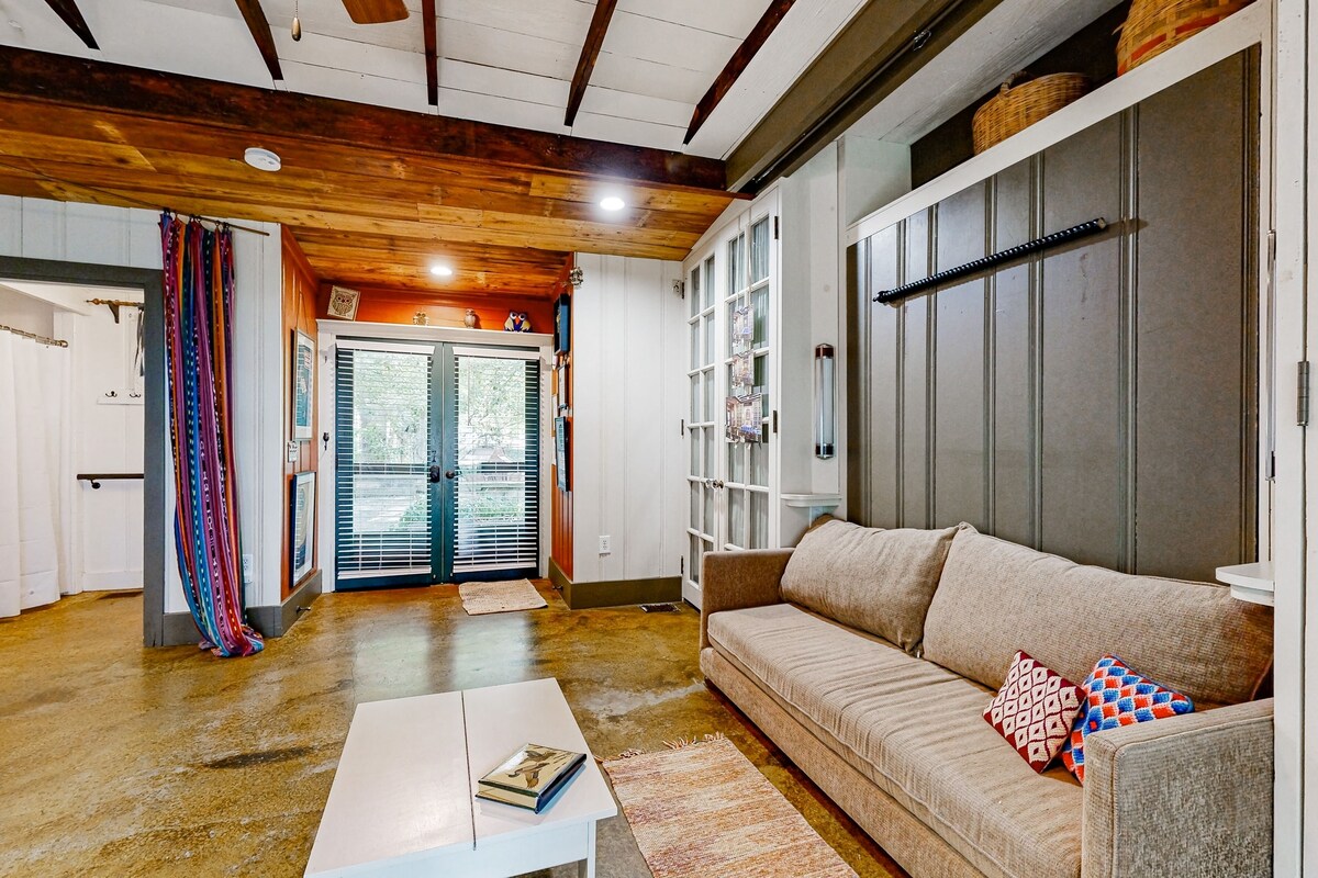 Little House Nashville - Guest House Our calendar is updated in real-time & our nightly rates are accurately displayed. Simply enter your desired dates and click 'Book Now!' Little House Nashville is in a historic neighborhood with big trees and sidewalks. Elmington Park has picnic tables, a big field and a bus shelter. Enjoy the quietness of the Little House, its beautiful gardens and patio that have been featured in several publications. Frequent guests at the family-friendly Little House are parents of students at Vanderbilt and Belmont, couples who come to Nashville for weekend getaways, women's groups, and families. INSIDE THE HOUSE The living room also serves as the bedroom when the queen Murphy bed is pushed into the wall. The comfortable Murphy bed has a pillow-top mattress and does not fold when stowed away -- it remains flat. The dining area also serves as a TV area and sleeping area for more than two guests. Built-in banquette converts to two comfortable twin beds (full length, 30' wide). The kitchen features full-size appliances, including electric stove/oven, refrigerator, and microwave oven. Families tend to be our most appreciative guests. Kids have fun in: - our yard - patio, paths, flowers, fruit trees - great playground and field in Elmington Park across the street - comfortable TV area - great tree house with comfortable, safe seating and roof (adult supervision required) Very accessible! Numerous Universal Design features include wide exterior doorways with very low thresholds and doors with lever handles. You'll find low-pitched ramps from street parking to our garden path and patio to the entry door. The shower has no threshold and there are no cabinets under the kitchen or bathroom sinks. We've had excellent reviews from guests who have required accessibility. Parking is plentiful in the driveway or on the street. Both are within 30’ of the entryway. LOCATION This guesthouse is in the most central location in Nashville. Walk to great neighborhoods, restaurants, shops and parks, including Hillsboro Village, Sylvan Park, Vanderbilt University, and Centennial Park. Nashville's most beautiful historic neighborhoods are all around, and downtown is 3 miles away, a straight shot down West End Avenue that becomes Broadway. You’ll love this quiet home and garden, situated across the street from one of Nashville's favorite green spaces, Elmington Park. Get to downtown Nashville in 15 minutes. Explore many of Nashville's best music venues and attractions. Local Permit # 14540, issued 2016 If you are bringing a dog on your trip, the pet fee is already included in your quote when selecting ‘Yes’ to pets. No more dogs are allowed. Parking notes: There is free parking available for 1 vehicle. This rental is located on floor 1. Please note: this home resides in a noise-sensitive area and the owners participate in our Good Neighbor protection program. Our smart home technology will alert our team if excessive decibel or occupancy levels are detected, allowing us to reach out directly with a reminder of maximum occupancy and quiet hours. This technology is privacy compliant, and only monitors the presence of decibels and devices-not any personal conversation or information. Thank you for supporting our efforts to be good neighbors! Damage waiver: The total cost of your reservation for this Property includes a nightly damage waiver fee, plus tax if applicable (the “Damage Waiver”). (A discount may be applied for stays of 28 nights or longer, if permitted.) The Damage Waiver covers you for up to $3,000 of accidental damage to the Property or its contents (such as furniture, fixtures, and appliances) as long as you report the incident to the host prior to checking out. The Damage Waiver fee eliminates the need for a traditional security deposit. More information can be downloaded from the \ on the checkout page. Due to local laws or HOA requirements, guests must be at least 21 years of age to book. Guests under 21 must be accompanied by a parent or legal guardian for the duration of the reservation. Our prices include all fees. No hidden fees.
