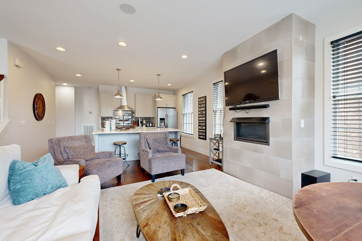 Brick Manor Unit A Our calendar is updated in real-time & our nightly rates are accurately displayed. Simply enter your desired dates and click 'Book Now!' With a fantastic locale near The Gulch and Music Row, this brand-new 4BR/4BA vacation rental is the perfect home base for your stay in the Music City. Enjoy evenings on one of the largest rooftop decks in town, which features skyline views, alfresco dining, and a firepit. Added perks include garage parking, TVs in every bedroom, and a tankless water heater. Downtown is only 5 minutes away! LIVING AREA Unwind in the welcoming living area, which has a smart TV and a gas fireplace. KITCHEN & DINING The pristine kitchen is equipped with a full suite of stainless steel appliances, quartz countertops, a huge four-seat kitchen island, and plenty of cookware. BED & BATH This home sleeps eight guests in four bedrooms, each of which has a flat-screen TV. The primary bedroom offers a king bed and an en-suite bathroom with a TV, a soaking tub, and a walk-in shower. The second bedroom is furnished with a queen bed, while the en-suite bathroom has a tub/shower combination. The third bedroom has a queen bed, while an adjacent bathroom has a tub/shower combination. The fourth bedroom has a queen bed and an en-suite bathroom with a walk-in shower. OUTDOOR AREA & AMENITIES Entertain in style on one of the largest rooftop decks in the city, complete with skyline views! Partially covered, this amazing outdoor space is detailed with a gas grill, gas firepit, ample loungers, and alfresco dining. EXTRA PERKS & MORE DETAILS Complimentary Wi-Fi and a washer/dryer are provided. A tankless water heater ensures unlimited hot water. Parking is available for two cars in the garage. The driveway is not available. Street parking may be available on a first-come, first-serve basis. This four-story home has a step-free entry. LOCATION With a fantastic locale near The Gulch, Music Row, and 12 South, easily walk to popular hot spots, eateries, and attractions nearby. Downtown Nashville is just over a 5-minute drive from home. If you are bringing a dog on your trip, the pet fee is already included in your quote when selecting ‘Yes’ to pets. If you would like to add more dogs, please contact us. Parking notes: There is free parking available for 2 vehicles. This rental is located on floor 1. Please note: this home resides in a noise-sensitive area and the owners participate in our Good Neighbor protection program. Our smart home technology will alert our team if excessive decibel or occupancy levels are detected, allowing us to reach out directly with a reminder of maximum occupancy and quiet hours. This technology is privacy compliant, and only monitors the presence of decibels and devices-not any personal conversation or information. Thank you for supporting our efforts to be good neighbors! Damage waiver: The total cost of your reservation for this Property includes a nightly damage waiver fee, plus tax if applicable (the “Damage Waiver”). (A discount may be applied for stays of 28 nights or longer, if permitted.) The Damage Waiver covers you for up to $3,000 of accidental damage to the Property or its contents (such as furniture, fixtures, and appliances) as long as you report the incident to the host prior to checking out. The Damage Waiver fee eliminates the need for a traditional security deposit. More information can be downloaded from the \ on the checkout page. Due to local laws or HOA requirements, guests must be at least 25 years of age to book. Guests under 25 must be accompanied by a parent or legal guardian for the duration of the reservation. Our prices include all fees. No hidden fees.