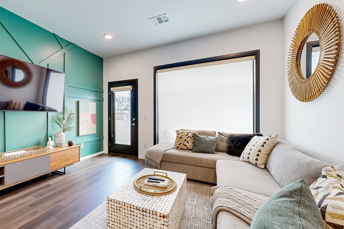 Illume 114 Our calendar is updated in real-time & our nightly rates are accurately displayed. Simply enter your desired dates and click 'Book Now!' Part of the picture-perfect Illume community, this inviting two-bed getaway provides a luxurious all-suite layout. Stream favorite shows on a 75-inch smart TV or sip drinks on your private poolside patio! Set in Gulch View - a prime locale near downtown and The Gulch - this urban escape is minutes from the city’s incredible music scene, fantastic dining, local shopping, and nightlife hotspots. Luxe amenities include a beautifully landscaped courtyard, a fitness center, and a seasonal pool in the heart of the building. Pairing contemporary style with a sustainable design, this forward-thinking retreat includes features like energy-efficient systems and a green roof. Your stylish condo also boasts a sleek full kitchen and retro-modern touches like a chic hanging chair. The welcoming living area features 10-feet ceilings and retro-modern decor. Curl up on the comfy sleeper sofa and watch favorite shows on the 75-inch 4K smart TV. The well-equipped kitchen is fitted with ample cookware and a full suite of stainless steel appliances. Sit down to home-cooked meals at the reclaimed wood table for four. This single-level condo sleeps eight guests between the two suites and a queen-size sleeper sofa in the living area. The primary suite is appointed with a plush king bed and a 50-inch smart TV. The sparkling en suite bathroom holds a double vanity and a walk-in shower. The guest suite is fitted with two full-size beds, a hanging chair, and a 43-inch smart TV. The en-suite bathroom (which is also accessible from the hallway) has a tub/shower combination. Enjoy after-dinner drinks on your private poolside patio, detailed with seating for four. Enjoy a central location near some of the city’s most popular neighborhoods. Walk to The Gulch and explore local boutiques, a vibrant nightlife, and one of the hottest food scenes in the city. You’re also near other sought-after areas, including Music Row and Edgehill Village. Or, take a quick rideshare to downtown to visit the convention center and iconic Nashville attractions like the Country Music Hall of Fame and Ryman Auditorium. Bridgestone Arena and Nissan Stadium are also a short drive away. ILLUME AMENITIES -Outdoor swimming pool (open seasonally) -Furnished pool deck with gas grill -Private landscaped courtyard -Fitness center -Public Wi-Fi at pool -Lounge -Two secured elevators -On-site overnight security -Dog walk (note: not all condos are dog-friendly) THINGS TO KNOW Streaming available with guest accounts. This property is managed by Vacasa Tennessee LLC. If you are bringing a dog on your trip, the pet fee is already included in your quote when selecting ‘Yes’ to pets. If you would like to add more dogs, please contact us. Parking notes: There is free parking available for 2 vehicles. This rental is located on floor 1. Please note: this home resides in a noise-sensitive area and the owners participate in our Good Neighbor protection program. Our smart home technology will alert our team if excessive decibel or occupancy levels are detected, allowing us to reach out directly with a reminder of maximum occupancy and quiet hours. This technology is privacy compliant, and only monitors the presence of decibels and devices-not any personal conversation or information. Thank you for supporting our efforts to be good neighbors! Damage waiver: The total cost of your reservation for this Property includes a nightly damage waiver fee, plus tax if applicable (the “Damage Waiver”). (A discount may be applied for stays of 28 nights or longer, if permitted.) The Damage Waiver covers you for up to $3,000 of accidental damage to the Property or its contents (such as furniture, fixtures, and appliances) as long as you report the incident to the host prior to checking out. The Damage Waiver fee eliminates the need for a traditional security deposit. More information can be downloaded from the \ on the checkout page. Due to local laws or HOA requirements, guests must be at least 21 years of age to book. Guests under 21 must be accompanied by a parent or legal guardian for the duration of the reservation. Our prices include all fees. No hidden fees.
