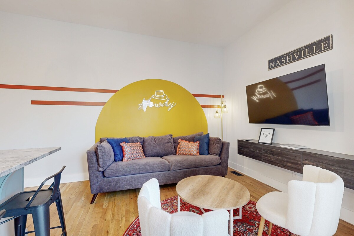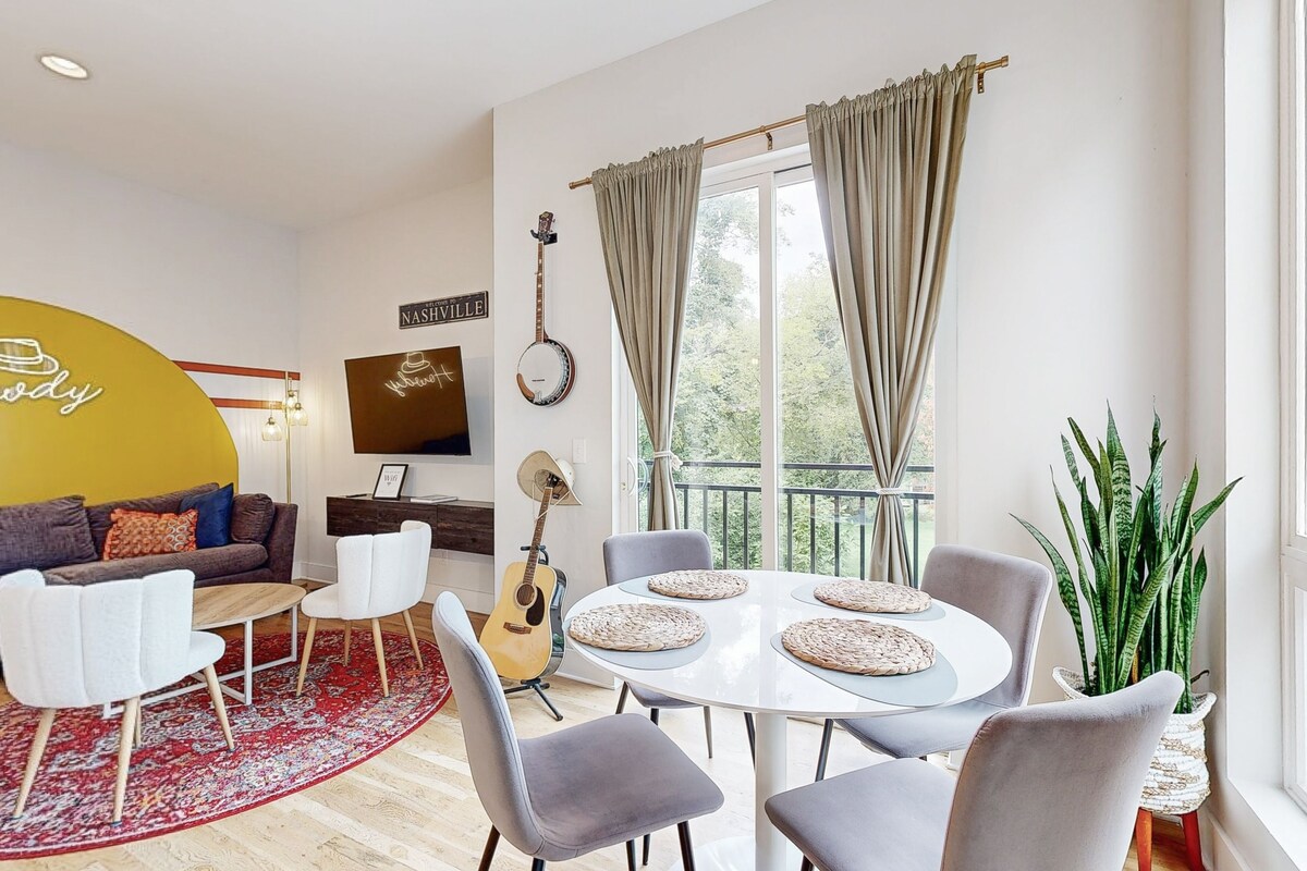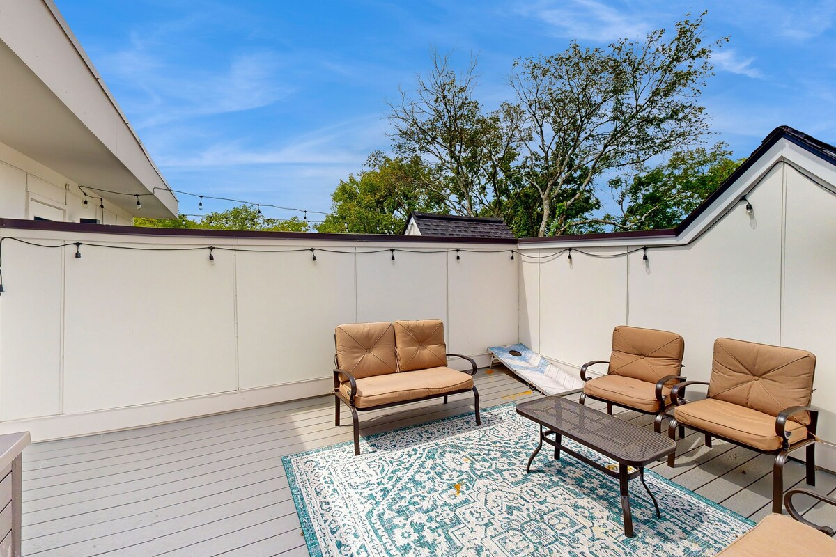 The Song Sanctuary Our calendar is updated in real-time & our nightly rates are accurately displayed. Simply enter your desired dates and click 'Book Now!' Say good morning to Music City from your private rooftop deck - the open-air lounge atop this three-story home features lots of comfortable furniture and a large wall-mounted TV and is the perfect place to greet the morning or cap off a day well spent under the twinkling fairy lights. Best of all, you'll be close to all the action with Grand Ole Opry four miles away and Ryman Auditorium seven miles away! You'll feel right at home from the moment you step inside the light-filled interior, but musical accents throughout will remind you that you're on vacation. Budget-conscious visitors will appreciate the well-equipped kitchen for prepping homecooked meals, and some provided pantry staples will get you started. Snack on appetizers at the breakfast bar while the main course simmers. The contemporary kitchen table is strategically placed by corner windows so you can dine with a view. Afterward, unleash your competitive side with one of the provided board games or head into the game room to beat your top score on one of the arcade cabinets. THINGS TO KNOW This property is managed by Vacasa Tennessee LLC. If you are bringing a dog on your trip, the pet fee is already included in your quote when selecting ‘Yes’ to pets. If you would like to add more dogs, please contact us. Parking notes: There is free parking available for 1 vehicle. Please note: this home resides in a noise-sensitive area and the owners participate in our Good Neighbor protection program. Our smart home technology will alert our team if excessive decibel or occupancy levels are detected, allowing us to reach out directly with a reminder of maximum occupancy and quiet hours. This technology is privacy compliant, and only monitors the presence of decibels and devices-not any personal conversation or information. Thank you for supporting our efforts to be good neighbors! Damage waiver: The total cost of your reservation for this Property includes a nightly damage waiver fee, plus tax if applicable (the “Damage Waiver”). (A discount may be applied for stays of 28 nights or longer, if permitted.) The Damage Waiver covers you for up to $3,000 of accidental damage to the Property or its contents (such as furniture, fixtures, and appliances) as long as you report the incident to the host prior to checking out. The Damage Waiver fee eliminates the need for a traditional security deposit. More information can be downloaded from the \ on the checkout page. Due to local laws or HOA requirements, guests must be at least 21 years of age to book. Guests under 21 must be accompanied by a parent or legal guardian for the duration of the reservation. Our prices include all fees. No hidden fees.