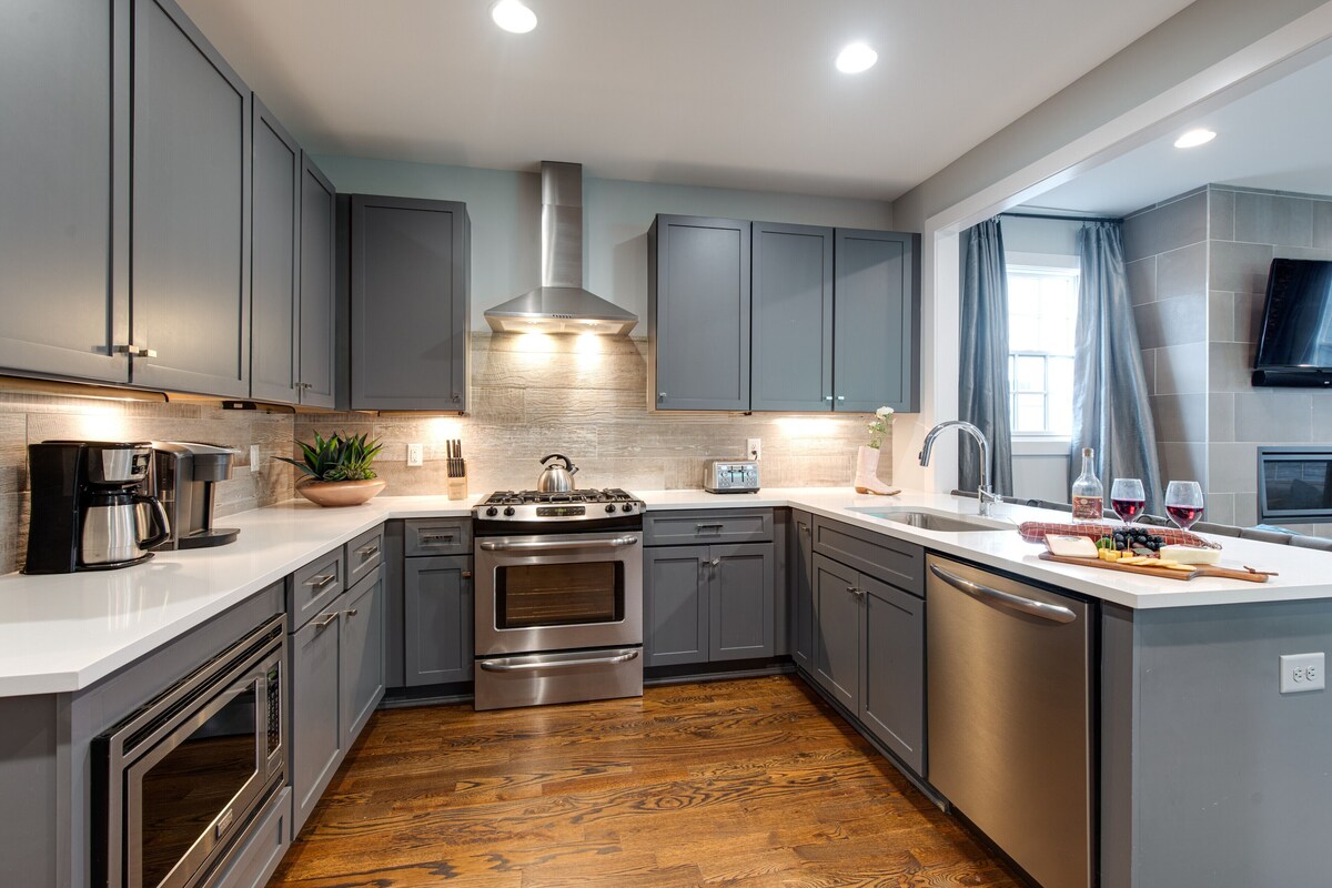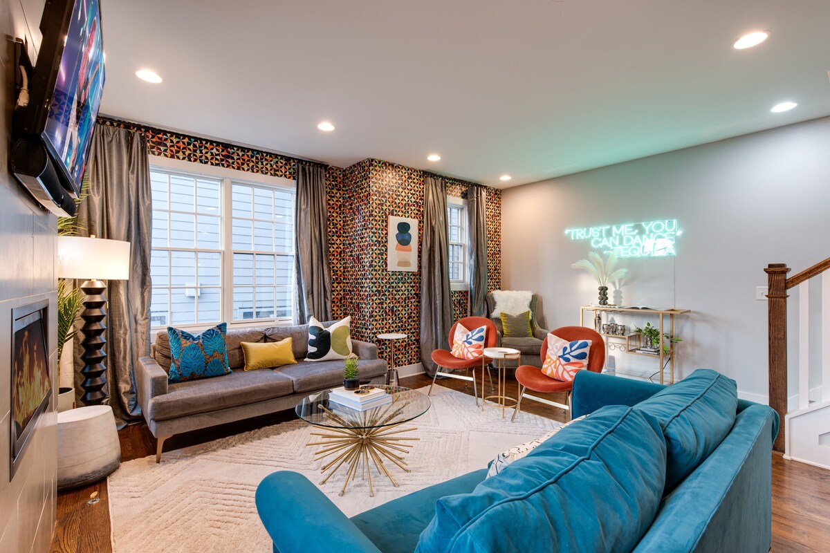 Introducing Melodic Skyline - a vibrant new addition to Nashville's short term rental scene. Experience the the pinnacle of luxury living in this 4 bedroom, 3.5 bathroom gem located in the heart of 12th South near the Gulch - the #1 location in downtown Nashville! Designed by a local artist, every inch of this home is a masterpiece. Each room screams attention to detail. Step inside to find bold design, electric vibes, and the perfect canvas for your Nashville adventure. Enjoy panoramic city views from the rooftop deck entertaining your family or friends while enjoying an intimate al fresco dining experience. Cozy up next to the fireplace for a night under the stars as the perfect ending from long days exploring downtown. Rest easy knowing a GoodNight Stay sleep is ahead in any of the tranquil style bedrooms. There is so much this home has to offer. Experience Music City the right way, and call Melodic Skyline home for your stay. IF YOU ARE INTERESTED IN THIS PROPERTY, PLEASE READ THE LISTING ENTIRELY. By booking, the guest agrees they have read all the details about the property and agree to our terms and conditions. Notes to guests and important details: ***Please note, this is an upcoming so there is nearby for surrounding buildings. Depending on your length of stay and booking dates, guest may experience nearby construction noise. BED SET UP: Primary Bedroom (3rd floor): King bed with en-suite bathroom 2nd Bedroom (3rd floor): 2 Full beds with en-suite bathroom 3rd Bedroom (2nd floor): Full bed with en-suite half bathroom 4th Bedroom (1st floor): Queen bed with en-suite bathroom Rooftop Deck (4th floor) Spacious Rooftop deck with lounge area, dining area, and outdoor BBQ. Primary Bedroom (3rd floor) King bed with walk-in closet, smart TV, and en-suite bathroom. Dual vanity and walk-in shower. 2nd Bedroom (3rd floor) 2 Full-size beds with walk-in closet, smart TV, and en suite bathroom. The bathroom has a shower and tub combo. Washer & Dryer (3rd floor) Behind the door at the top of the 3rd story Kitchen & Dining area (2nd floor) Fully equipped kitchen with stainless steel appliances and breakfast bar seating. The formal dining area is located right outside the kitchen. Living Room (2nd floor) Living area with sleeper sofa, smart TV, bar cart, and multiple lounge areas. 3rd Bedroom (2nd floor) Full-size bed with en-suite half bathroom. 4th Bedroom (1st floor) Queen-size bed with smart TV and en-suite bathroom. The bathroom has a shower and tub combo. Garage (1st floor) 2-car garage Explore the Area: - Walking Distance - 11 min walk: Music Row 14 min walk: RCA Studio 14 min walk: The Gulch - Driving Distance - Estimated drive times do not account for traffic: 4 mins: Broadway 5 mins: Vanderbilt University Medical Center 5 mins: Jeni's Splendid Ice Creams 5 mins: The Blue Room at Third Man Records 5 mins: SOBRO 5 mins: Frothy Monkey 5 mins: 12 South 6 mins: Belmont Mansion 6 mins: Bongo Java 6 mins: Monroe Carell Jr. Children's Hospital at Vanderbilt 6 mins: Vanderbilt University 6 mins: Belmont-Hillsboro 6 mins: Music City Center 6 mins: Edley's Bar-B-Que 6 mins: Country Music Hall of Fame and Museum 6 mins: The Filling Station 6 mins: Burger Up 7 mins: Centennial Park 7 mins: The Parthenon 7 mins: Midtown 7 mins: Bridgestone Arena - Nashville Predators 7 mins: Geodis Park 8 mins: Sevier Park 11 mins: Nissan Stadium - Tennessee Titans 13 mins: McCabe Golf Course 16 mins: Nashville Zoo 21 mins: Grand Ole Opry Add Ons: - Air Mattress ($50 each - 1 per unit) - Pack & Play and Highchair: GoodNight Stay is partnered with the best baby equipment rental service! Please inquire if you'd like to take advantage of this amenity using our special link. Please note, this is an add-on and not included in your reservation. Additional House Rules: - Booking guests must be at least 21 years old. - Same-day move-ins shall not be honored after 10 am Arizona Time. - GoodNight Stay LLC does not allow local residents to book homes. A local resident is defined as any guest who's primary residence is located within two (2) hours of the rented property. - All guests with a confirmed criminal record shall be declined and asked to cancel the booking at their own expense. - The guest agrees to provide identity authentication via a third-party platform operating for GoodNight Stay. They will authenticate the name, address, phone number, and photo ID verification. If this is not provided within 48 hours of booking, GoodNight Stay has the right to cancel the booking without penalty. - Maximum of 2 pets under 35lbs each, $100 fee per pet required. - GoodNight Stay is proud to offer all guests kick-start amenities for kitchens and bathrooms! Kitchen set includes: 2 dishwashing tablet, dish soap, 1 dish sponge, 2 laundry detergent pods, disinfectant wipes, 2 paper towel rolls, 2 trash bags, 1 coffee bag, and 4 coffee filters. - The bathroom set is offered in each full bathroom and includes: 1 shampoo, 1 conditioner, 1 body wash, 1 body bar soap, 1 hand bar soap, Makeup wipe, 1 liner for trash can. - We'll also be sure to provide you with two (2) paper towel rolls per kitchen and two (2) rolls of bathroom tissue per bathroom. - Unfortunately, additional items cannot be provided if requested as these are to kick-start your stay. - All listed amenities are to be used at the guest's risk. The homeowner and GoodNight Stay are not liable in any way for the risk, danger, injury, or damages caused to the other party. - Parties, events, or weddings are not allowed. Nashville Permit Number:2018017692 Our prices include all fees. No hidden fees.