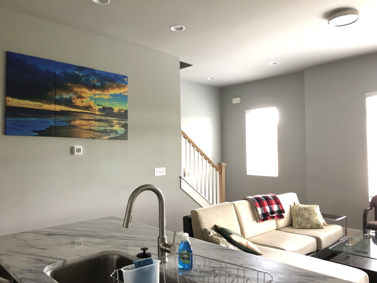 BRAND NEW LUXURY DOWNTOWN SKYLINE HOME! HUGE ROOFTOP DECK! Brand new, newly furnished, three story, 4 bedroom, 4 bathroom home. Our Home is a fully stocked “home away from home”. Each guest may enjoy his/her own space in one of the four bedrooms or come together in the open floor plan living room/kitchen space or rooftop deck. You are only minutes away from downtown Nashville. Our prices include all fees. No hidden fees.