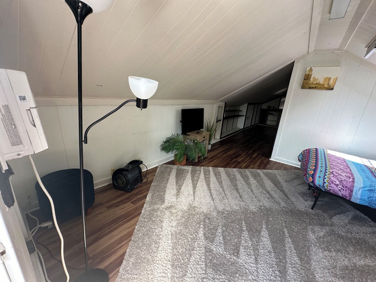 This is a 1 bedroom attic apartment with its own entrance, balcony/deck, and driveway. It has been a short term rental property since 2014 - I have almost 300 positive reviews- I live downstairs with my children- The upstairs and downstairs are totally separate areas-You will have complete privacy. The bathroom has a curtain as a door to allow privacy. There are 2 large skylights - a private deck in the trees - a private driveway - a living room - bathroom with a shower- a kitchenette - and a bedroom. 700 sq ft. -There is a full size bed in the living room. Also there is a full sized air mattress to place on the floor if you need a 3rd bed. There will be towels and extra blankets available in the closet. No smoking inside but you can smoke whatever you want on the deck. Pets are welcome. There is a nice private deck for smoking. There is a large yard for kids and dogs in the front of the house. If I know when you are showing up I can turn on the AC and make sure the apartment has cooled down before you get there. If you book last minute and show up before I know you’re checking in I will not be able to turn on the air conditioning and it might be warm when you arrive but will soon cool down after you turn on the air conditioner. There is a curtain for privacy at the entrance of the back bedroom. There are enough forks and dishes and pots and pans for six people. My family is living in the main part of the house so you will only have access to the upstairs and the front yard. There is parking available. This side of Gallatin Road in Inglewood is the nicest and safest neighborhood in East Nashville. There is a city bus within a 8 min walk that takes you directly down town and I use lyft as my cab service or uber so you should sign up for those services before you get here and add their apps to your phone. The Nashville International Airport is only 11 miles away. If you choose to book your stay here an email with all the info about how to get into the apartment will be sent to you the day before you arrive. There are security cameras on the outside of the house for safety. There are no cameras inside the apartment. This is an old attic apartment - it is not a 5 star hotel - I have hundreds of positive reviews but if you are really picky this property might not be for you. Our prices include all fees. No hidden fees.