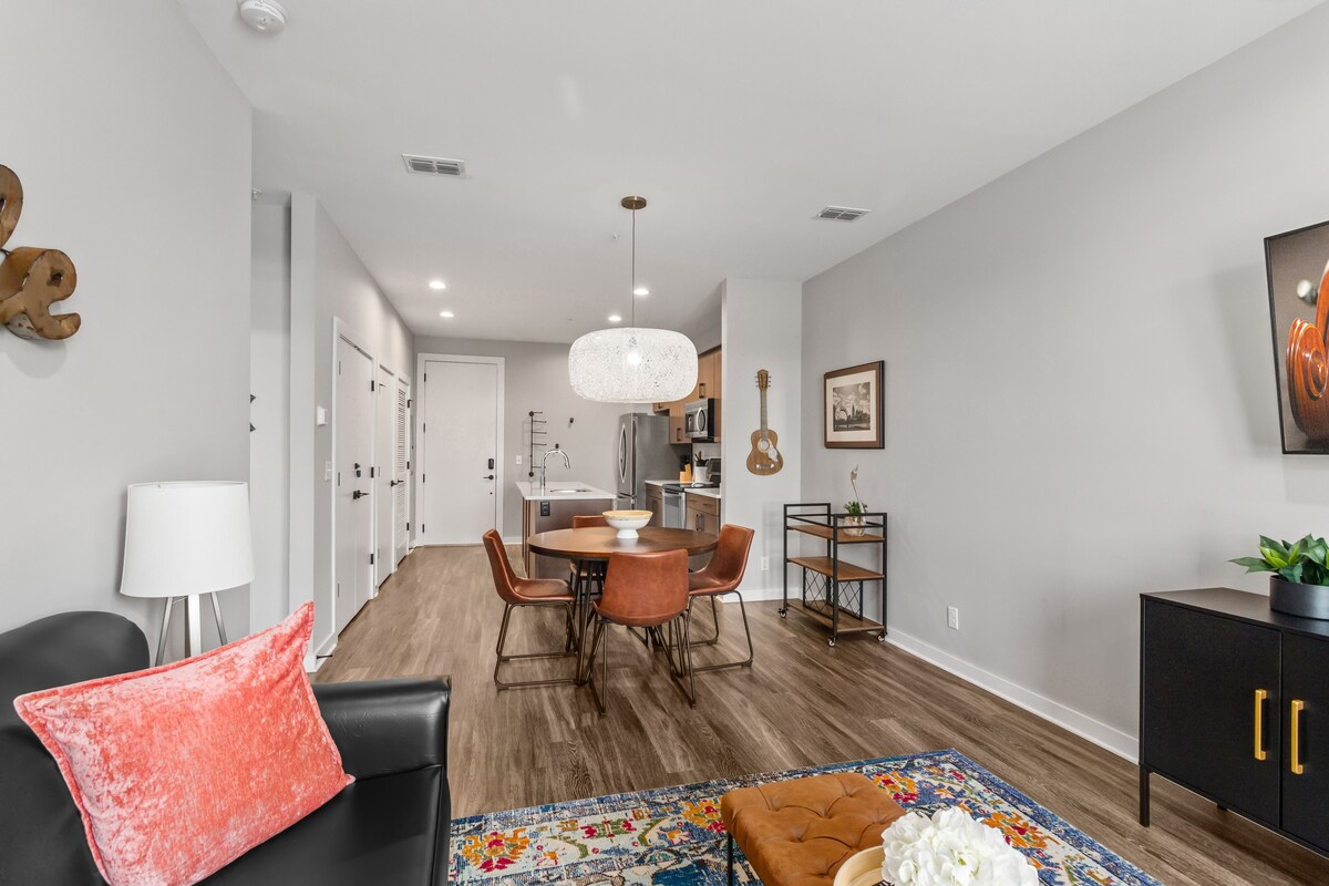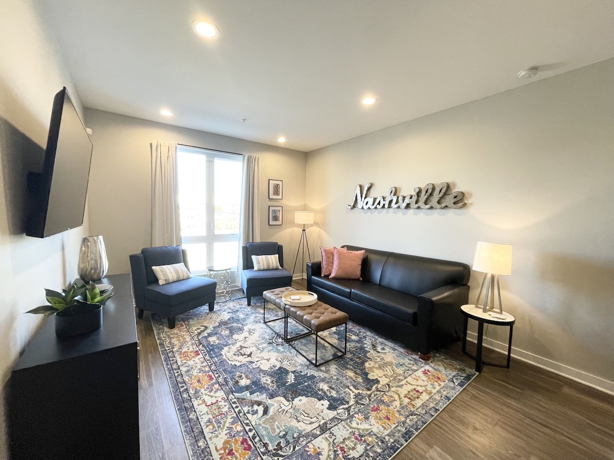 Wonderfully appointed in the popular Nations that sleeps 6! We offer one king, one queen sleeper sofa (upgraded memory foam mattress), and two twin rollaway beds. Free parking available for up to 2 cars. Walkable to restaurants and shopping. Minutes from L&L Market! Close to Hattie B's! Minutes to downtown Nashville! Come stay with us!! Our prices include all fees. No hidden fees.