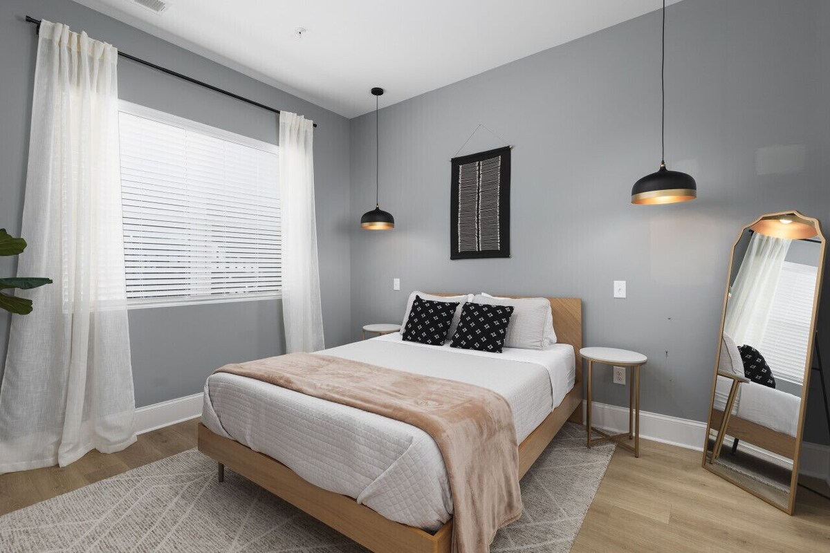 Enjoy a stylish experience at this spacious and conveniently-located condo that sleeps 8 with 4 Beds, 2 Bedrooms & 2 Full Baths! Located in a new, professionally designed condo building in hip & trendy East Nashville. Walk to local coffee, restaurants & a brewery. Only 10 minutes to Downtown Broadway bars and 13 min to the Grand Ole Opry! Hair salon in the building if you need a quick cut! Fully equipped kitchen, Smart TVs in both bedrooms + living room. Condo is on the 1st floor with no stairs. HIGHLIGHTS: ★ If you are coming with a group and need more than 1 condo, let us know! We own all the condos in this building ★ Sleeps 8 people ★ 4 Beds - 1 King, 1 Queen, 1 Queen size Sofa Bed, and 1 Twin rollaway beds ★ 2 Bedrooms ★ 2 Full-size spacious bathrooms - one connected to primary bedroom & one in the hallway ★ Smart TVs in both bedrooms plus the living room ★ Seating for 4 at the kitchen island + seating for 4 at the dining table ★ Fully-equipped kitchen with high-end appliances for all your cooking needs ★ FREE parking ★ Walk to restaurants, coffee, a local brewery & more ★ Only 10 min drive to Downtown Broadway Bars ★ Only 13 min drive to the Grand Ole Opry ★ In-unit washer/dryer (free to use) ★ High-speed internet ★ Plenty of storage for your clothes ★ Hair dryers, shampoo, conditioner and body wash provided ★ Adjustable thermostat ★ Hassle-free check-in with no keys, just codes ★ Keurig Coffee Maker & K-Cups ★ Drip Coffee Maker + Coffee ★ Located on the 1st floor - no stairs to climb ★ Walking distance to All People Coffee, Southern Grist Brewery, Redheaded Stranger, Folk, Audrey, & more! ★ Two Grocery stores nearby - Publix and Kroger BEDS: Bedroom 1: 1 King Bedroom 2: 1 Queen Living Room: Queen Sleeper Sofa and 1 Twin size Rollaway Beds with memory foam mattress BATHROOMS: Bathroom 1: Full size with stand up shower connected to bedroom #1 Bathroom 2: Full size with shower/tub combo in a hallway next to bedroom #2 After a fun day out exploring Nashville, come back to relax in this beautiful, spacious and inviting condo. The space is the perfect mix of style + comfort. All aspects of the home have been thoughtfully designed with ease + convenience in mind. Our neighborhood is very safe and charming with many beloved spots in this flourishing local area of East Nashville. The airport is only about 15 minutes away. There are plenty of Ubers, Lyft and taxis available if you choose not to bring a car. Our condo is in a great location to enjoy all the things that Nashville has to offer! Nearby Spots (alphabetical order): ★ All People Coffee ★ Attaboy ★ Bartaco ★ Basement East (music venue) ★ Board & Brush Creative Studio ★ Dino’s Bar ★ Edley’s BBQ ★ Emmy Squared ★ Flora + Fauna (coffee and brunch) ★ Five Points Pizza ★ Folk ★ Golden Pony cocktail bar ★ Hola Yoga ★ Kisser (Japanese) ★ Lil Cee’s Soul Food ★ Once Upon a Time in France ★ Pelican & Pig ★ Pearl Diver ★ Pharmacy Burger Parlor & Beer Garden ★ Redheaded Stranger ★ Shed Group Fitness East Nashville ★ Starbucks ★ Southern Grist Brewing Company - East ★ The Underdog ★ The Urban Juicer ★ Tower Market & Deli ★ Wilburn Street Tavern ★ Xiao Bao You will have the entire condo to yourself! Please reach out through this booking platform with any questions. Please note that all cancellations within the cancellation timeline will be charged a 7% processing fee if cancelled. **Please note that a required $300 damage deposit hold will be placed on your card prior to check in. Only the number of guests listed with the reservation are allowed at the property at ALL times. This is monitored with outside cameras. Please do not request an early check in time through the app. Early check in times selected through the app are not applicable, even if the booking is \ . If you would like early check in, you must message us. Standard check in time is anytime after 4pm. ALL Pets must be approved in advance of booking. We have a $75 pet fee and do not allow animals to go on the furniture or beds. Please be respectful of the decor and the space itself. We've put a lot of time and energy into making and keeping this home beautiful, if you ruin something or break our house rules we will keep your security deposit. No loud noise at nighttime. This is a residential building, please respect the neighbors! NO Smoking of any kind NO Parties Once you've booked with us, we ask that you keep all communication within the platform. That's the best way to keep in touch and keep all the details in one place. Thank you! We look forward to hosting you! Our prices include all fees. No hidden fees.