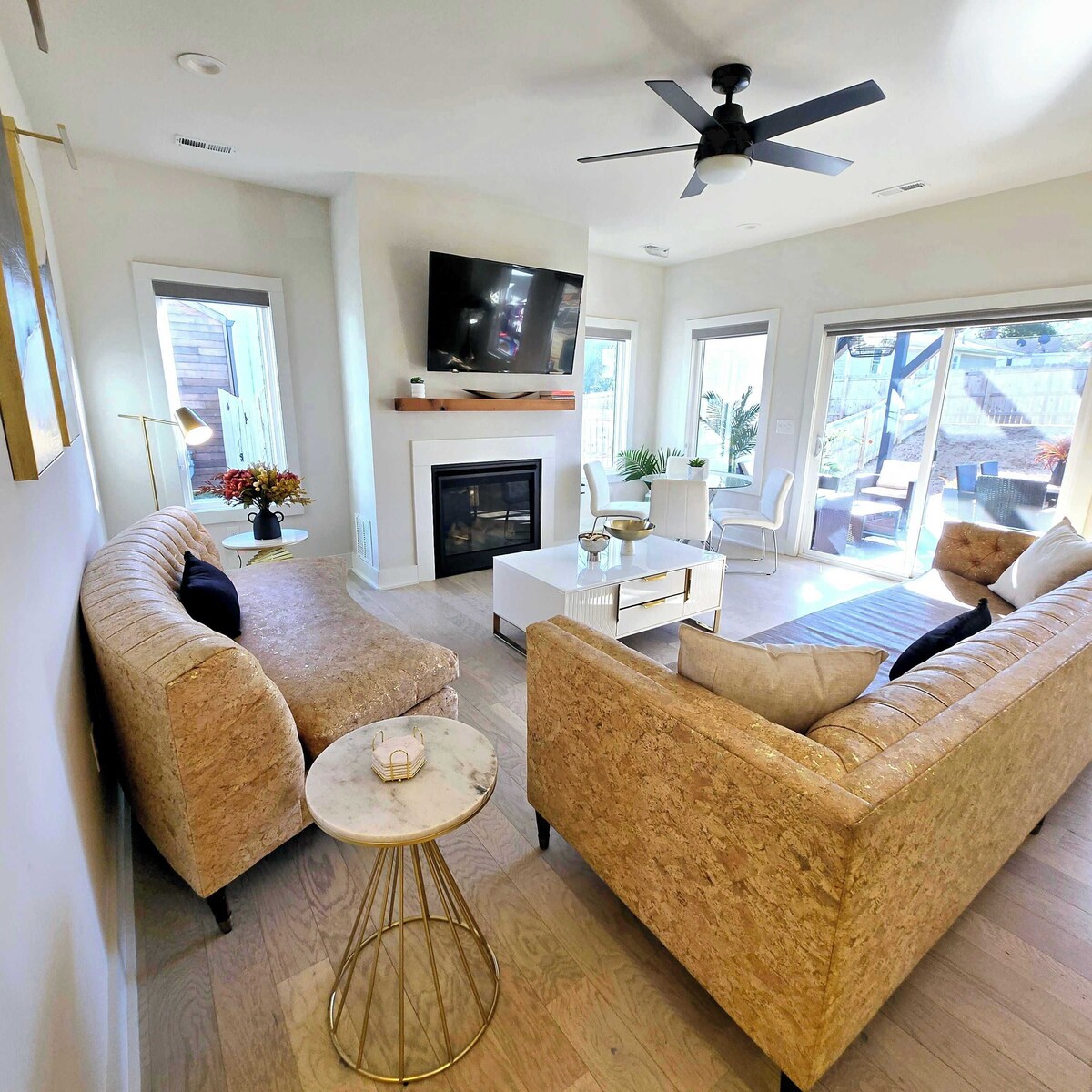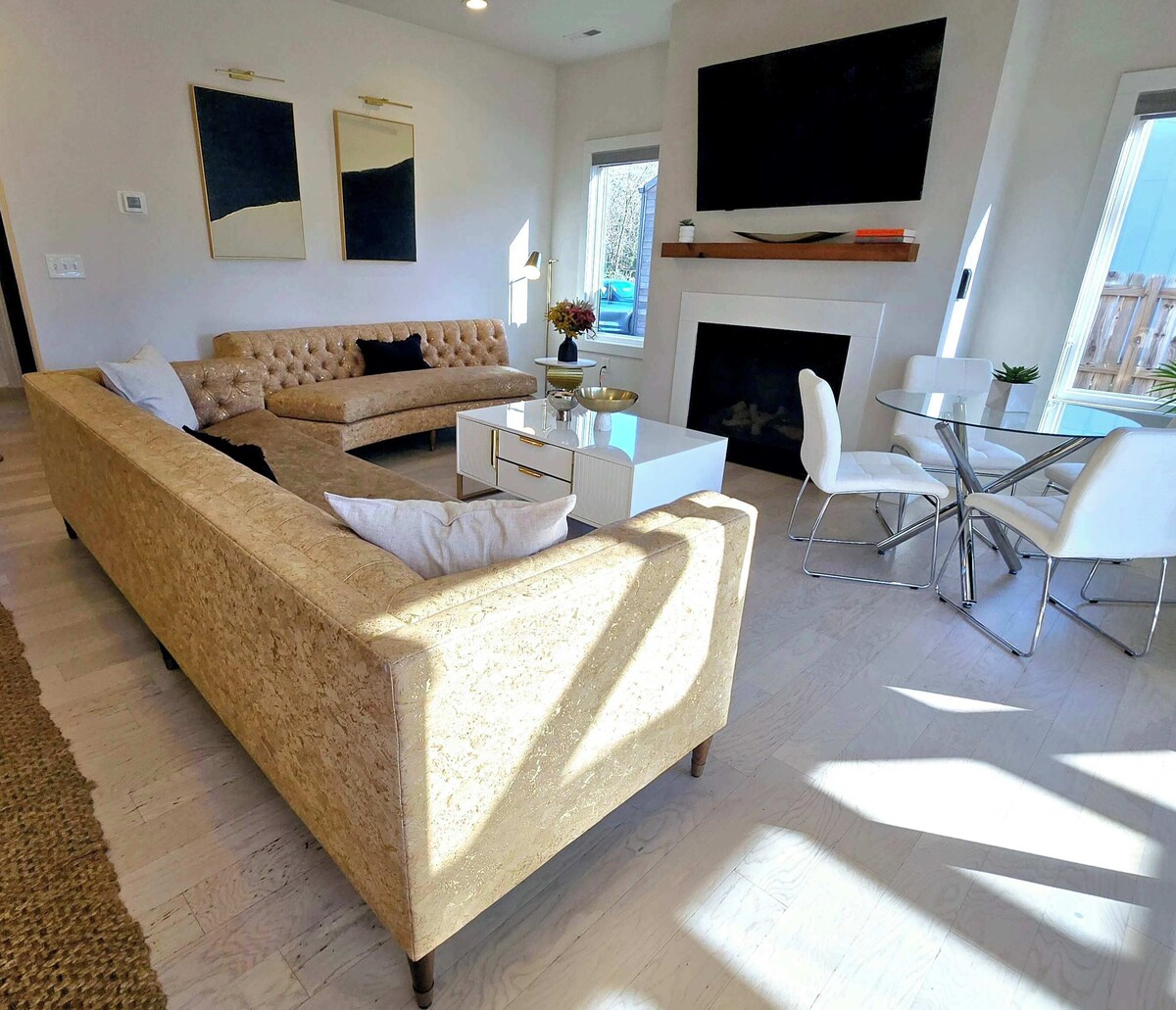 Summary: Modern Comfort Just 10 Minutes from Uptown Charlotte! Welcome to your home away from home — a stylish, modern retreat nestled in a quiet Charlotte neighborhood just minutes from the vibrant energy of Uptown. With nearly 2,000 square feet of thoughtfully designed living space, this home offers the perfect blend of comfort, function, and flair. This home accommodates up to 8 guests, making it an ideal spot for families, groups, or anyone looking to enjoy a peaceful stay with easy access to the city. Whether you're in town for work, play, or a bit of both, this home offers the perfect balance of suburban tranquility and urban convenience. No gatherings allowed. The Space: 🛋️ Spacious & Inviting The open floor plan features a bright, airy living area ideal for relaxing or entertaining, seamlessly flowing into a sleek, fully equipped kitchen with modern appliances and everything you need to cook, dine, and gather. 🌳 Backyard Escape Step outside to a supersized backyard, complete with a dedicated entertainment area perfect for grilling, lounging, or making memories under the stars and around the fire pit. 🛏️ Dual Master Suites + Extra Space for Everyone Enjoy the luxury of two spacious master suites, each featuring a king-size bed and a private full bathroom for maximum comfort and privacy. The first master suite is conveniently located on the main floor, making it easily accessible for guests who prefer to avoid stairs. The second master suite is upstairs, providing a private retreat with generous space and comfort. Also on the second floor, you’ll find two additional bedrooms, a cozy lounge area, a dedicated office desk, and a small dining space — perfect for working remotely, relaxing, or enjoying a quiet meal. The Neighborhood: 🚫 House Rules – Please Read Before Booking To ensure a peaceful and respectful environment for our community, parties, events, and gatherings are strictly prohibited. Our neighborhood is home to families with young children and professionals who value quiet evenings and early mornings. Noise and music must be kept to a minimum at all times. Any complaints from neighbors will result in immediate termination of the stay without a refund, per our house rules. If you're planning to host a gathering or play loud music, this may not be the right fit for your stay — and we kindly ask that you do not book. Visitors and extra cars are not allowed. 🚗 Parking Guidelines Garage parking is available for 2 vehicles. The driveway can accommodate up to 3 additional cars. Street parking is not permitted — any vehicles found on the street will need to be moved immediately or will be towed at guests exepnse. These rules are in place to protect the peaceful character of the neighborhood and ensure a positive experience for all. Getting Around: 13 minutes to Spectrum Center and Bank of America Stadium 11 minutes to Midwood Plaza 18 minutes to Southpark Mall 25 minutes to airport Other Things to Note: Wood not provided for outdoor firepit. Maximum of 5 cars allowed. Pets are welcomed for extra fee of $75. Interaction with Guests: Accessible through phone call or text anytime of the day or night. Our prices include all fees. No hidden fees.