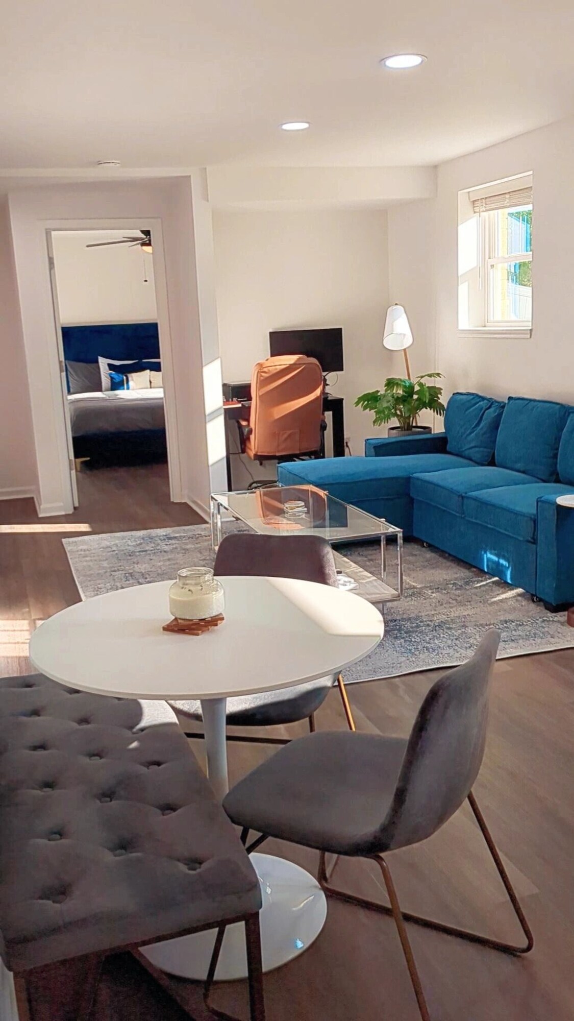 This newly renovated one-bedroom basement unit offers everything you need for a relaxing stay. With a private entrance, a cozy bedroom with a king-sized bed, a modern bathroom with a soaking tub, and a fully stocked kitchenette, you're sure to enjoy your stay.