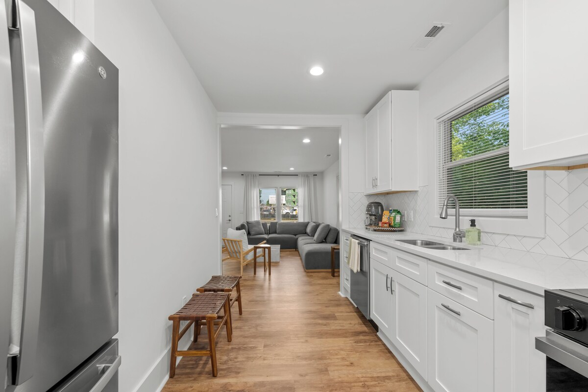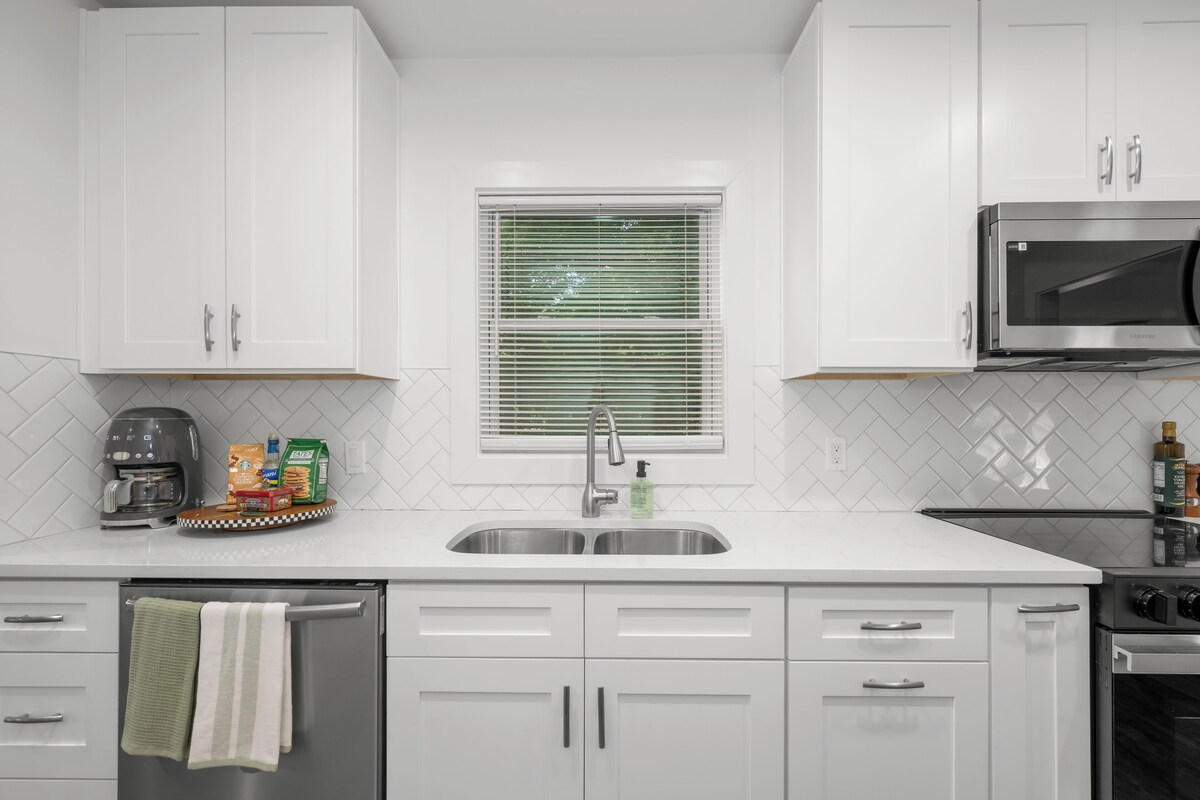 Stay at the Gem of Wendover! Spacious and modern 4-bedroom, 2-bathroom home in Charlotte, close to Starbucks, Chick-fil-A, and grocery stores. Centrally located, just 10 minutes to Uptown, SouthPark, NoDa, and Plaza Midwood. Features a king bed in the primary room, 2 queen bedrooms, twins bedroom, and a pull-out couch. Enjoy a dedicated office space in the sunroom and a dining room. Brand new appliances, fully renovated interior, and security system. Currently being furnished by an interior designer, should be ready by May 15th!