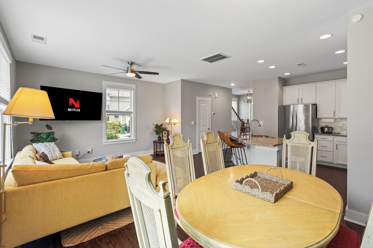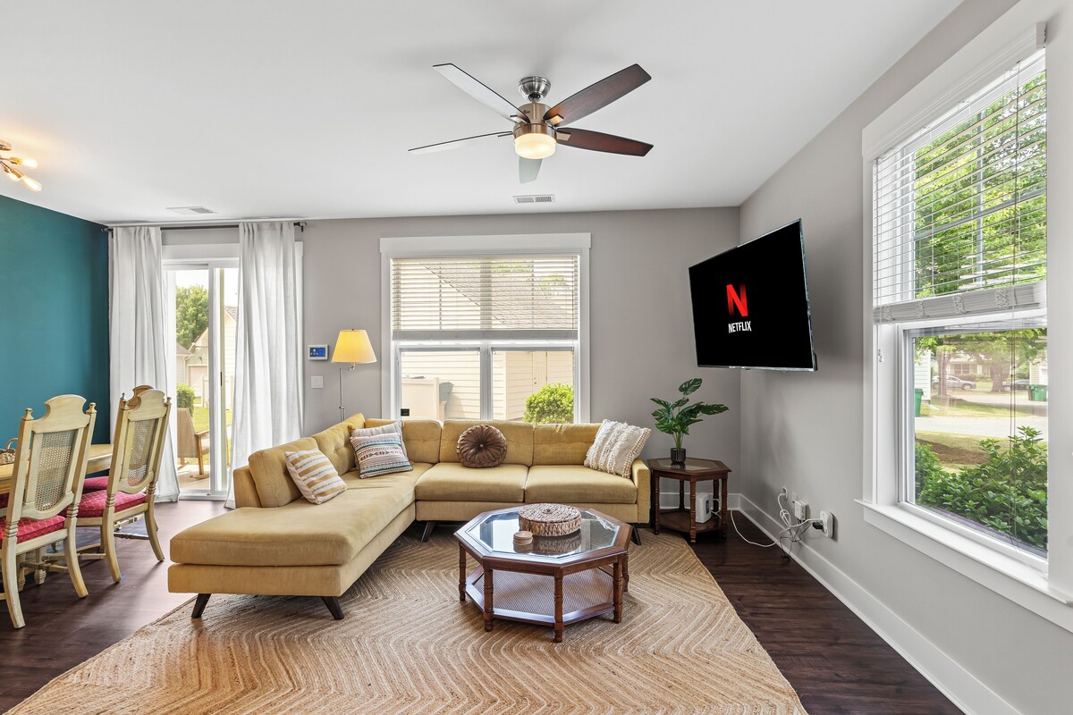 ★~15 min to CLT Airport (9.9 Mi) ★~7 min to Bank of America Stadium (4 Mi) ★~3 min to Camp North End (1 Mi) ★~9 min to South End (5.3 Mi) ★~7 min to City Center (2.4 Mi) ★~4 min to the Filmore (1.2 Mi) ★~9 min to NoDa (3 Mi) ★~10 min to Bojangles Collesium (5.2 Mi) You get close to all the city activities, with the peacefulness of a nice, relaxing neighborhood. Begin your day with a perfectly brewed cup of coffee prepared just the way you like it from the convenient coffee station in your upscale kitchen. Whether you're here for business or leisure, this space is designed to provide the perfect balance of comfort and convenience. With vibrant restaurants just minutes away, you might find yourself exploring Charlotte's culinary scene every night. And with the assistance of your Personal Concierge, securing the best dining recommendations and reservations has never been easier. Of course, after a long day, it’s reassuring to know that your well-equipped kitchen and elegant dining table are ready to provide a 5-star dining experience right at home. Whether you choose to venture out or stay in, this space serves as the perfect home base for work, relaxation, and entertainment. THE SPACE Step inside and discover an inviting open-concept living area, elegantly furnished to provide a blend of relaxation and functionality. Large windows flood the space with natural light, while modern décor and high-end finishes create a sophisticated yet comfortable atmosphere. ✔ Spacious Living Area – Thoughtfully designed with plush seating, a 65” Smart 4K TV, and elegant décor ✔ Fiber WiFi (500+ Mbps) – Perfect for streaming, remote work, or video calls ✔ Smart TV with Streaming Services – Netflix, Hulu, HBO Max (login required) ✔ Self Check-In – Keyless smart lock for a seamless arrival ✔ Dedicated Work Station – A standing desk, perfect for remote work ✔ Private Patio – A tranquil outdoor space to relax and unwind ✔ In-Unit Washer & Dryer – Energy-efficient laundry appliances (detergent provided) BEDROOMS & SLEEPING ARRANGEMENTS Designed for ultimate comfort and relaxation, each bedroom is thoughtfully curated with high-quality bedding, memory foam mattresses, and luxurious linens to ensure a restful night’s sleep. ✔ Master Bedroom – 1 King Bed, walk-in closet, and a private en-suite bathroom ✔ Guest Bedroom 1 – 1 King Bed, premium linens, and ample storage space ✔ Guest Bedroom 2 – 1 Full Bed & 1 Twin Bed, premium linens, and ample storage space SPA-INSPIRED BATHROOMS ✔ Modern Bathrooms – Equipped with high-pressure showers, plush towels, and essential toiletries ✔ Luxury Bath Products – Shampoo, conditioner, body wash, and hand soap provided ✔ Hair Dryer & Essentials – Everything you need to feel at home FULLY EQUIPPED KITCHEN & DINING AREA Whether you're preparing a gourmet meal or enjoying a morning coffee, the kitchen is fully stocked with everything you need. ✔ Stainless Steel Appliances – Refrigerator, oven, stove, microwave, dishwasher ✔ Coffee & Tea Bar – Complimentary coffee, tea, sugar, creamer, and sweeteners ✔ Cookware & Dinnerware – Pots, pans, utensils, dishware, wine glasses, slow cooker, mugs, and more! PRIME LOCATION Situated in a vibrant neighborhood, this property places you just steps from Camp North End—Charlotte’s hub for arts, dining, and entertainment. PARKING & TRANSPORTATION ✔ Free On-Site Street Parking (first-come, first-served) ✔ Public Transit & Ride Shares Available – Quick access to Uber, Lyft, and local transit PERFECT FOR: ✔ Business Travelers – High-speed WiFi, quiet workspace, and proximity to business districts ✔ Couples & Families – Spacious accommodations with premium amenities ✔ Weekend Getaways – Enjoy a relaxing escape with modern comforts ✔ Extended Stays – A fully equipped home for long-term guests HOUSE RULES & POLICIES ✔ No Smoking – A strict no-smoking policy inside the unit ✔ No Unauthorized Guests – No unregistered guests/visitors at the complex ✔ No Parties or Events – Please respect our neighbors & keep noise levels down ✔ Quiet Hours: 8 PM - 8 AM – Ensure a peaceful stay for everyone BOOK YOUR STAY TODAY! Experience the perfect blend of luxury, comfort, and convenience at this elegant urban retreat. Whether you're here for business, a romantic getaway, or a long-term stay, this space is designed to make you feel at home. Message us with any questions—we’re here to help! Our prices include all fees. No hidden fees.
