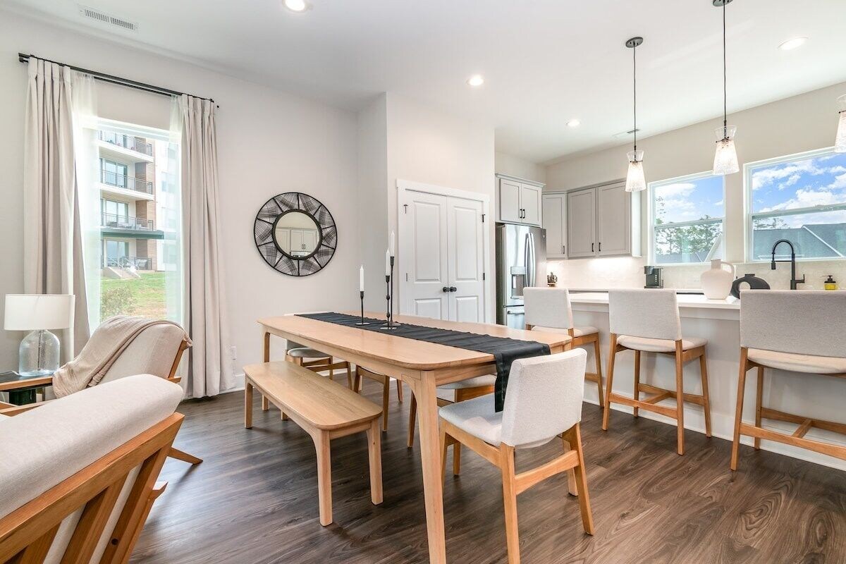 Nestled just minutes from UNC Charlotte and the best of University City, this Japandi-inspired 4-bedroom, 3.5-bath townhome is thoughtfully designed. Enjoy calming sage tones, cozy textures, spacious rooms, smart home features, and pet-friendly touches — all wrapped up in a peaceful, stylish retreat. Whether you're visiting for work, play, or a bit of both, you'll find your perfect balance of comfort and convenience here