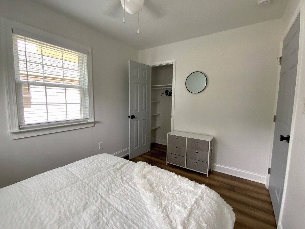 Welcome to your Charlotte retreat! This fully remodeled unit in a charming duplex offers everything you need for a memorable stay, whether you’re here for a few days or an extended visit. Enjoy the comfort of a newly renovated bathroom (2025), brand-new HVAC system with a Nest thermostat and whole-house air filter (2024), ensuring a perfect climate year-round. Step outside to the generously sized, fully fenced backyard—ideal for letting your furry friend roam freely. With updated landscaping, a private driveway that fits two vehicles, and in-unit washer/dryer, this home is designed for your convenience.