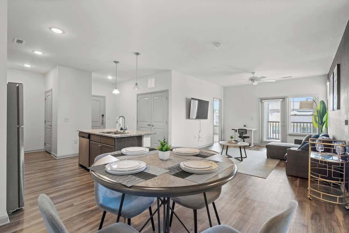 Summary: Stay in style in the eclectic city, home to the 2nd largest banking center in the USA—Charlotte. This classy 1168-square-foot (~109-square-meters) 2-bedroom & 2-bathroom apartment features 1 King Bed & 2 Plush Full Beds for your comfort, Lightning Fast Wifi, a Separate Workstation, a Fully Equipped Kitchen, and other Luxury Amenities—specially designed for your longer length stays! Step out to a lively neighborhood, just 15 minutes from Uptown—close to restaurants, cafés, bars, and shops! The Space: Begin your day with a perfectly brewed cup of tea or instant coffee—decaf or regular—prepared just the way you like it from the convenient coffee station in your upscale kitchen. Whether you're here for business or leisure, this space is designed to provide the perfect balance of comfort and convenience. With vibrant restaurants just minutes away, you might find yourself exploring the culinary scene in Charlotte each night. And with the assistance of your Personal Concierge, securing the best dining recommendations and reservations has never been easier. Of course, after a long day, it’s reassuring to know that your well-equipped kitchen and elegant dining table are ready to provide a 5-star dining experience right at home. Whether you choose to venture out or stay in, this space serves as the perfect home base for work, relaxation, and entertainment. THE SPACE Step inside and discover an inviting open-concept living area, elegantly furnished to provide a blend of relaxation and functionality. Large windows flood the space with natural light, while modern décor and high-end finishes create a sophisticated yet comfortable atmosphere. ✔ Spacious Living Area – Thoughtfully designed with plush seating, a 55” Smart 4K TV, and elegant décor ✔ Fast WiFi (300+ Mbps) – Perfect for streaming, remote work, or video calls ✔ Smart TV with Streaming Services – Netflix, Hulu, HBO Max (login required) ✔ Self Check-In – Keyless smart lock for a seamless arrival ✔ Dedicated Work Station – A standing desk, perfect for remote work ✔ In-Unit Washer & Dryer – Energy-efficient laundry appliances (detergent provided) BEDROOMS & SLEEPING ARRANGEMENTS Designed for ultimate comfort and relaxation, each bedroom is thoughtfully curated with high-quality bedding, memory foam mattresses, and luxurious linens to ensure a restful night’s sleep. ✔ Master Bedroom – King-sized bed, walk-in closet, and a private en-suite bathroom ✔ Guest Bedrooms – 2 full sized bed, premium linens, and ample storage space SPA-INSPIRED BATHROOMS ✔ Modern Bathrooms – Equipped with high-pressure rainfall showers, plush towels, and essential toiletries ✔ Luxury Bath Products – Shampoo, conditioner, body wash, and hand soap provided ✔ Hair Dryer & Essentials – Everything you need to feel at home FULLY EQUIPPED KITCHEN & DINING AREA Whether you're preparing a gourmet meal or enjoying a morning coffee, the kitchen is fully stocked with everything you need. ✔ Stainless Steel Appliances – Refrigerator, oven, stove, microwave, dishwasher ✔ Coffee & Tea Bar – Complimentary coffee, tea, sugar, creamer, and sweeteners ✔ Cookware & Dinnerware – Pots, pans, utensils, dishware, and glasses. PRIME LOCATION Situated in a vibrant neighborhood, this property places you within minutes of top attractions, dining, and nightlife. Enjoy easy access to: NASCAR Hall of Fame – 10 miles, about a 15-minute drive. Discovery Place Science – 10 miles, about a 15-minute drive. Carowinds Amusement Park – 3 miles southwest, about a 7-minute drive. Billy Graham Library – 6 miles, about a 10-minute drive. U.S. National Whitewater Center – 18 miles west, about a 25-minute drive. Spectrum Center – 10 miles, about a 15-minute drive. SouthPark Mall – 3 miles, about a 7-minute drive. Bank of America Stadium – 10 miles, about a 15-minute drive. Camp North End – 12 miles, about a 20-minute drive. NoDa (North Davidson Arts District) – 10 miles, about a 15-minute drive. Plaza Midwood – 9 miles, about a 15-minute drive. Freedom Park – 9 miles, about a 15-minute drive. PARKING & TRANSPORTATION ✔ Free On-Site Parking (first-come, first-served) ✔ Public Transit & Ride Shares Available – Quick access to Uber, Lyft, and local transit PERFECT FOR: ✔ Business Travelers – High-speed WiFi, quiet workspace, and proximity to business districts ✔ Couples & Families – Spacious accommodations with premium amenities ✔ Weekend Getaways – Enjoy a relaxing escape with modern comforts ✔ Extended Stays – A fully equipped home for long-term guests HOUSE RULES & POLICIES ✔ No Smoking – A strict no-smoking policy inside the unit ✔ No Unauthorized Guests – A strict no unauthorized guests/visitors at the complex ✔ No Parties or Events – Please respect our neighbors & keep noise levels down ✔ Quiet Hours: 8 PM - 8 AM – Ensure a peaceful stay for everyone BOOK YOUR STAY TODAY! Experience the perfect blend of luxury, comfort, and convenience at this elegant urban retreat. Whether you're here for business, a romantic getaway, or a long-term stay, this space is designed to make you feel at home. Reserve your stay now and enjoy a first-class experience in Charlotte! Guest Access: Guests have full access to their private unit, including all listed amenities inside the apartment. However, CERTAIN community features such as the gym, pool, and other shared facilities are subject to seasonal availability, maintenance, or closures at the discretion of the building management. Please refer to the amenities list for an updated list of all amenities. Pool Availability: The pool is seasonally closed in the fall and winter and reopens in late spring. Shared Amenities: We are not responsible for random maintenance or closures of amenities, as they are managed by the apartment complex and shared among all residents! For any questions about access or amenity availability, please feel free to a