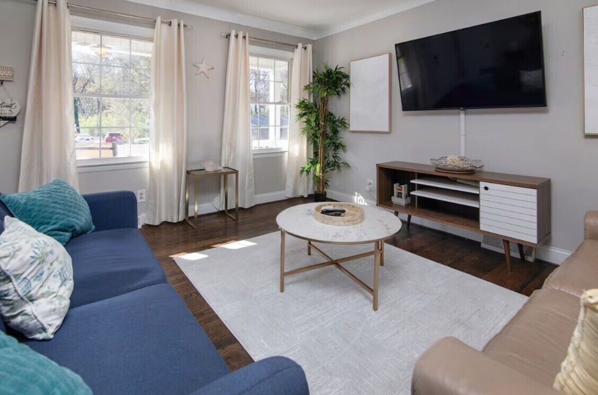 Welcome to your perfect Queen City getaway! This spacious 3-bedroom, 2-bathroom home is designed for comfort and relaxation, featuring 1 king bed and 2 queen beds to ensure a restful night’s sleep for every guest. Start your morning with coffee in the sunroom, filled with natural light and the perfect spot to unwind. In the evenings, step outside to the private backyard, where a cozy fire pit and glowing string lights create a warm and inviting atmosphere — ideal for gathering with friends and family. Inside, you’ll find a fully equipped kitchen, bright living areas, and all the essentials including heating, AC, a hair dryer, and an iron for your convenience. Whether you’re here to explore Uptown Charlotte, catch a Panthers or Hornets game, or simply enjoy a peaceful escape, this home is the perfect base for your stay. Book your stay today and experience comfort, charm, and unforgettable evenings under the lights! Our prices include all fees. No hidden fees.