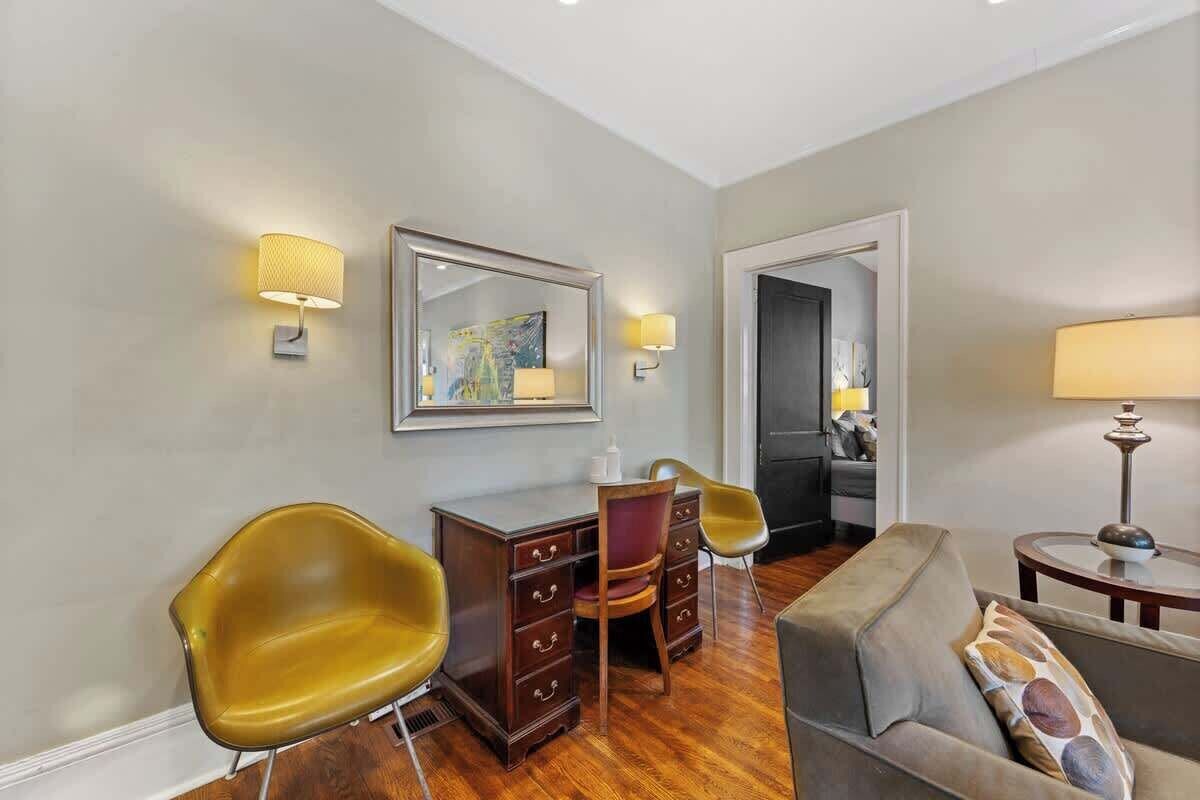 Summary: Enjoy the luxuries of our modern 2 bedroom condo on prestigious Queens Road. Features include a full kitchen and dining area, upscale furnishings, ultra-fast Wi-Fi, and Hulu + Live TV. With a screened-in porch overlooking lush landscaping and a private patio on the ground floor, enjoy this oasis of comfort and style during your vacation. This condo comes with on-site parking and is minutes away from Freedom Park and the Myers Park Mile, and a 12 minute walk to Atrium CMC and Novant. The Space: Charlotte’s biggest and best fitness center, the Dowd Y, is only five minutes away. Amenities include cardio equipment, weights, group classes, and swimming. A 7-day pass is only $50 The Home Collection presents an unparalleled fusion of comfort and elegance. With over 40 meticulously designed residences, all conveniently located within a two-mile radius of downtown Charlotte, our selection caters to a variety of tastes and preferences. We offer discounts for long-term stays, so please contact us. If you are traveling with a dog, please read our pet policy below. This historic yet modernly renovated condo provides the ultimate home-away-from-home experience with unmatched hospitality. You can relax with comfortable beds, blackout curtains, a relaxing couch, high-speed WiFi, and Hulu + Live TV channels. We've maintained the character of this historic 1920's building, while completely updating and renovating the interior. This first floor condo has large double-hung windows that let in an abundance of light in all the rooms. Additionally, the original refinished hardwoods, bathroom tile, graceful arched doorways and two-panel doors provide the charm so often absent in new construction. Relax in the spacious living room featuring a large, upholstered sofa and a flatscreen television with streaming and Live TV. Enjoy the artwork by local artist Nico Amortegui, well-known for large-scale paintings and installations throughout NC and The Smithsonian. The kitchen features a gourmet gas range, a convection oven, a refrigerator with an ice maker, a dishwasher, and a stackable washer and dryer. Granite countertops complete the kitchen, which comes fully equipped with essentials such as measuring cups, spoons, mixing bowls roasting pans and garlic press. The adjacent dining room comfortably seats four with all the place settings. The screen porch area is perfect for sitting and drinking some morning coffee or tea. A desk and ultra-fast Wi-Fi enable business travelers to stay plugged into their busy schedules. The main bedroom has a king-sized bed with a television and a generous closet. The second bedroom has two twin beds and a flatscreen television. The twin beds can be pushed together to create one king sized bed. Furnishings may vary slightly from photographs as we periodically update. The bathroom is spotless and features plush towels. Included in our amenity package are a starter supply of Nest bath products as well as detergents. The building has a shared patio that includes a grill, tables, and chairs. This is the perfect spot to have a cookout with your party while enjoying the beautiful scenery. Located in historic Myers Park, Queens Road is the heart of Charlotte’s premier neighborhood replete with wide sidewalks and towering oaks throughout the neighborhood. This incredibly safe community provides an ideal place for walking or jogging and is just a short stroll from multiple coffee shops and restaurants. Within a half mile walking distance are more than 40 locally owned restaurants (Thai, Italian, French, and Mexican), as well as Starbucks, Panera, and Old Pancake House. Our favorite full-service spots, include Stagioni (Italian), RuRu’s (casual Mexican), and Napa on Providence. If you are looking for local gems, check out Laurel Market, Summit Coffee, Bond Street Wines, and Fenwick’s. On the ‘Myers Park Mile,’ you will find many locally owned shops including antiques, fine gifts, wines, and bespoke clothing for men and women. Spring through fall, Simpson’s Farmers Market on Kings is just around the corner and open Tuesday, Friday and Saturday. Charlotte’s renowned greenway is less than a half mile away. From there, you can bike, run, or walk along the 30 miles of trails. We are also very close to Freedom Park, Dilworth, Plaza-Midwood, the Atrium Medical Center (Levine Children’s Hospital and Levine Cancer Institute) and the Novant Hospital complex. The parks and open walking spaces make the area perfect for those with a furry friend. Many of our neighborhood restaurants have patios that welcome dogs. We love hosting guests for both short or long-term stays. So, whether you are here for business, pleasure, or visiting someone at either Atrium or Novant Hospitals, our goal is for you to feel at home during your stay. We will try hard to accommodate any special requests and are readily available should something come up. We look forward to hosting you. If this residence is not available for your preferred travel dates, please ask as. A workstation is available for rent during your stay. This includes a 32” monitor, wireless keyboard, and mouse. There is ample on-site parking next to our building. Guest Access: The entire condo is yours and is accessible via a digital lock or lock box to allow convenient 24-7 self-check-in. There is ample off-street parking next to our building. The Neighborhood: Welcome to Myers Park, a prestigious and sought-after neighborhood near Uptown Charlotte that offers an exquisite backdrop for your stay. Immerse yourself in the elegance and sophistication that defines this historic district. Myers Park is renowned for its architecture, tree-lined streets and lovely gardens. As you explore the neighborhood, you will be charmed by the surroundings. Myers Park is a haven for those seeking a luxurious and serene escape. Indulge in the culinary scene, where upscale restaurants, cafes, and eateries beckon. From fine dining establishments serving gour