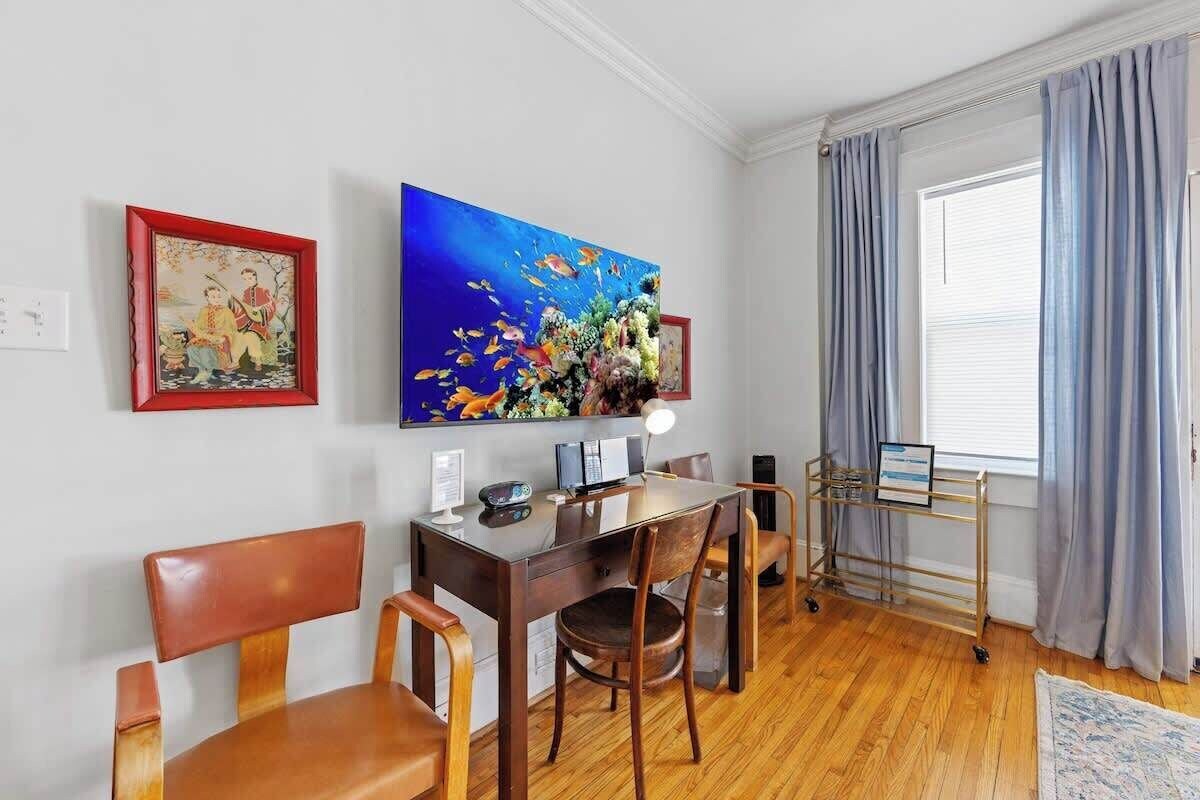 Summary: Nestled in the heart of Dilworth, our bright, cheerful, condo is perfectly located to enjoy all that Charlotte has to offer a short walk from restaurants, shopping, galleries, and entertainment and a short drive to Atrium CMC. Perfect for long or short term stays, our condo features a fully equipped kitchen, ultra fast wifi and Hulu Live TV as well as a porch and gas grill for dining and relaxing. You'll enjoy onsite parking and easy access to Uptown, Mint Museum, and Bank of America Stadium. The Space: Charlotte’s biggest and best fitness center, the Dowd Y, is only five minutes away. Amenities include cardio equipment, weights, group classes, and swimming. A 7-day pass is only $50 This property is part of the Home Collection-Charlotte's Boutique Furnished Residences. We have over 30 different residences all within 2 miles from downtown Charlotte! Comfortable 2nd-floor 1 bedroom apartment located on a quiet residential street in Historic Dilworth, 1.5 miles from Uptown. Perfect for long- or short-term stays with a fully equipped kitchen, wifi, and a sun patio for dining and relaxing. Fully equipped kitchen down to the garlic press. In-unit washer and dryer, 400-thread count linens and Egyptian cotton towels. The neighborhood has a mix of stately homes and craftsman bungalows, many built in the early 1900s, along with several vibrant commercial areas that provide an abundance of local restaurants and shops, making Dilworth the most pedestrian-friendly, walkable neighborhood in the city. One great feature is the large sun patio, overlooking the front lawn and tree canopy. There is a also a common area with a gas grill and outdoor dining for your use. In the fully-equipped kitchen there are brand new cabinets, quartz countertops and stainless steel appliances, including a gas range and refrigerator with ice maker. We also provide complimentary snacks & beverages. A full-size washer and dryer are also included inside the apartment for your use. There is a desk, wifi, and a small stereo cd player with a place for your Ipod or MP3 player. A large flat screen television in the living room, and there's also a flatscreen tv in the bedroom. Located just 1.5 miles from the central business district (Uptown), you'll be able to walk to 3 parks, two full-service grocery stores, 40+ restaurants (Thai, vegan/raw, Indian, Italian, Peruvian, new American etc.) massage studios, coffee shops, art galleries, consignment stores, neighborhood pubs and other amenities, along wide sidewalks under huge willow oak trees. Within just a couple of blocks are many dining options, including a sushi restaurant, one of the best Italian restaurants in Charlotte, a coffee shop, yoga studio, several neighborhood pubs (one with live music most nights), a popular breakfast spot, a full-service grocery store, and a park with a tennis court. A transit stop 1/2 block away provides bus service directly to Uptown, the Convention Center/Time Warner Arena/Panthers Stadium and in the other direction to SouthPark (upscale shopping) every 15-20 minutes. The Lynx Blue Line light rail is only a 15-minute walk away, with trains going directly Uptown in 10 minutes. Carolinas Medical Center (Levine Children's Hospital) is 4 minutes away by car, or an easy 15-20 minute walk. Annual events in the neighborhood include the Greek Festival, Festival in the Park, the Dilworth Criterium bicycle race. With so much at your doorstep, and great access to public transportation, a car is not needed, and many of our guests simply take a taxi from the airport and explore the neighborhood on foot. Guest Access: The entire condo is yours for your stay, access provided via combination lockbox. The Neighborhood: Welcome to Dilworth, a charming neighborhood near Charlotte that promises to elevate your stay to new heights. Discover the perfect blend of historic charm, tree-lined streets, and a vibrant atmosphere, making it an ideal destination for travelers seeking a unique and memorable experience. Immerse yourself in the rich history and architectural beauty that defines Dilworth. Take leisurely strolls along the picturesque streets adorned with historic homes, each one telling its own story. The neighborhood exudes a welcoming ambiance, inviting you to explore its hidden gems and local treasures. Indulge in the culinary delights that Dilworth has to offer. Delight your taste buds with a diverse array of dining options, ranging from cozy cafes and stylish bistros to trendy restaurants. Experience the warm hospitality and flavors that make Dilworth a culinary destination like no other. Nature enthusiasts will find solace in the neighborhood's lush parks and green spaces. Freedom Park, just moments away, offers a serene oasis for relaxation, jogging, or a leisurely picnic. The nearby Little Sugar Creek Greenway presents the perfect opportunity for a scenic walk or bike ride amidst nature's beauty. Dilworth's central location provides easy access to Charlotte's renowned attractions. Uptown Charlotte, with its bustling energy and vibrant nightlife, is just a short distance away, allowing you to immerse yourself in the city's cultural offerings, shopping districts, and entertainment venues. Explore the fascinating exhibits at The Mint Museum, catch a live performance at the Blumenthal Performing Arts Center, or indulge in retail therapy at the SouthPark Mall, all within easy reach. Experience the convenience of excellent transportation options, making it effortless to navigate Dilworth and beyond. Whether you choose to drive, take a leisurely walk, or utilize public transportation, you'll find that getting around is a breeze, enhancing the overall convenience of your stay. With its unique character, vibrant atmosphere, and prime location, Dilworth stands out as a desirable destination for travelers seeking an exceptional experience. Book your stay in Dilworth today and unlock the charm and allure of this remarkable neighborhood. Getting Around: The Lynx