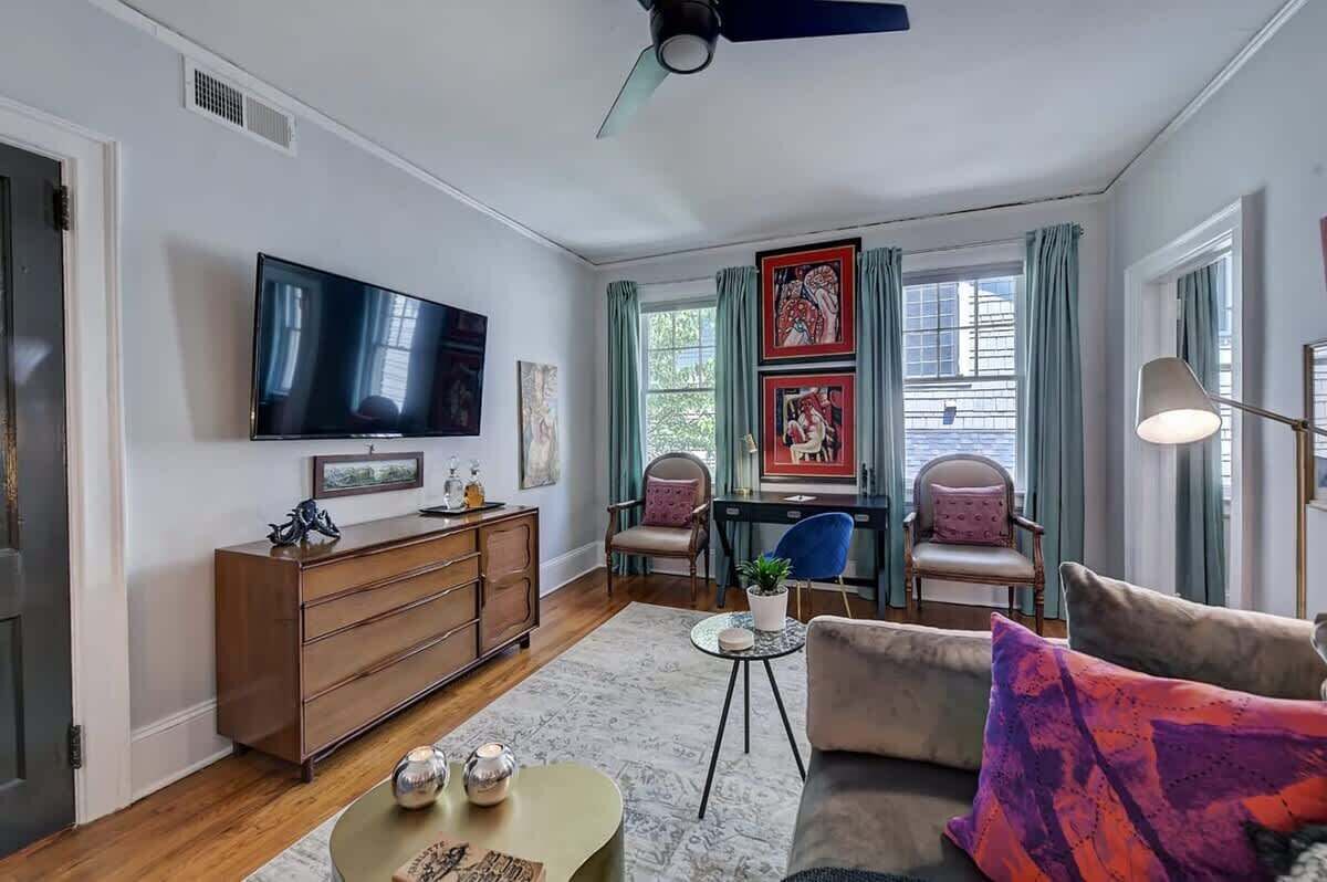 Summary: This newly renovated 2 bedroom, second-floor condo in Charlotte's historic Elizabeth neighborhood is minutes walking to restaurants and coffee shops, and Independence Park. Features include a fully equipped kitchen, ultra fast Wi-Fi, Hulu + Live TV, and in unit washer & dryer. There is on-site parking and is only a two block walk to the Streetcar, with direct access to Plaza Midwood and Novant Hospital. The Space: Charlotte’s biggest and best fitness center, the Dowd Y, is only five minutes away. Amenities include cardio equipment, weights, group classes, and swimming. A 7-day pass is only $50 The Home Collection provides all the comforts of home, with unmatched design and hospitality. We own over 40 different residences all within 2 miles from downtown Charlotte! Founded by a third generation Charlottean, our mission is to give you an authentic Charlotte experience and offer a range of accommodations including the most-deluxe furnished residences in Charlotte. Welcome home! We offer discounts for long-term stays, so please ask. If you are traveling with a dog, please read our pet policy below. Relax in the spacious living room featuring a large, upholstered sofa and a flatscreen television with streaming and Live TV. Enjoy the artwork by local artist Nico Amortegui, well-known for large-scale paintings and installations throughout NC and The Smithsonian. We've maintained the character of this historic 1920's building, while completely updating and renovating the interior. This second floor condo has large double-hung windows that let in an abundance of light in all the rooms. Additionally, the original refinished hardwoods, bathroom tile, and two-panel doors provide the charm so often absent in new construction. The recently renovated kitchen features with stainless appliances, and is fully equipped with pots, pans, utensils, etc. The adjacent dining room comfortably seats four with all the place settings. Ample storage in the apartment makes it ideal for long-term guests. A desk and ultra-fast Wi-Fi enable business travelers to stay plugged into their busy schedules. The main bedroom has a king-sized bed with a television and a generous closet which includes plenty of clothes hangers, an iron, and an ironing board. The second bedroom has a full-sized bed and a flatscreen television. Furnishings may vary slightly from photographs as we periodically update. The bathroom has modern bath fixtures and tiled walls and floor. It is spotless and features plush towels. Included in our amenity package are a starter supply of Nest bath products as well as detergents. Situated in historic Elizabeth, our residence is conveniently located a few steps from Hawthorne Avenue, the heart of Charlotte’s health care district. Plaza Midwood and Uptown are a short ride away on the streetcar. Located in the stately Milton apartment building, this recently refurbished second floor condo in the desirable and walkable Elizabeth neighborhood. This incredibly safe community provides an ideal place for walking or jogging and is just a short stroll from Charlotte’s most vibrant night life. Within a half mile walking distance are more than 40 locally owned 40 restaurants (Italian, Mexican, Cajun, and Mediterranean). For breakfast, walk past Starbucks and try Central Coffee or Villani’s Bakery. Our favorite full-service spots include Customshop (local cuisine), Cajun Queen (Louisiana soul food) and Intermezzo (Italian). If you are looking for local gems, check out The People’s Market, Menya Durama (Ramen), and Moo & Brew (burgers). My favorite BBQ joint is Midwood Smokehouse (but this is a touchy subject in the crossroads of BBQ). Have a beer at Legion Brewery, a drink at the infamous Thirsty Beaver (Mick Jagger’s favorite spot), or a cocktail at the Crunkleton. On the ‘Plaza Piazza,’ you will find many locally owned shops including antiques, fine gifts, wines, and bespoke clothing for men and women. Elizabeth is also a neighborhood with a vibrant nightlife. If you’re looking for an exciting place to stay in Charlotte, you’ve come to the right place. Just down the street is Independence Park, Charlotte’s oldest park. This newly renovated park has miles of wide sidewalks, towering trees, a playground, picnic areas, and garden respites. Charlotte’s renowned greenway is less than a half mile away. From there, you can bike, run, or walk along the 30 miles of trails. The parks and open walking spaces make the area perfect for those with a furry friend. Well-behaved, quiet pets are allowed in most of our properties with a pet fee. Many of our neighborhood restaurants have patios that welcome dogs. We love hosting guests for both short or long-term stays. So, whether you are here for business, pleasure, or visiting someone at either Atrium or Novant Hospitals, our goal is for you to feel at home during your stay. We will try hard to accommodate any special requests and are readily available should something come up. We look forward to hosting you. If this residence is not available for your preferred travel dates, please ask as. A workstation is available for rent during your stay. This includes a 32” monitor, wireless keyboard, and mouse. There is ample on-site parking next to our building. Guest Access: The entire condo is yours for your stay and is accessible via keys in a combination lockbox. The Neighborhood: Welcome to Elizabeth, a captivating neighborhood nestled in the heart of Charlotte that embodies the perfect blend of historic charm and modern vibrancy. Immerse yourself in the enchanting atmosphere of this sought-after destination, where tree-lined streets, beautiful parks, and a vibrant local scene await. Step into a neighborhood that seamlessly combines the elegance of historic homes with trendy boutiques, inviting cafes, and acclaimed restaurants. Explore the quaint streets lined with charming shops, where you'll find unique treasures and one-of-a-kind souvenirs to remember y