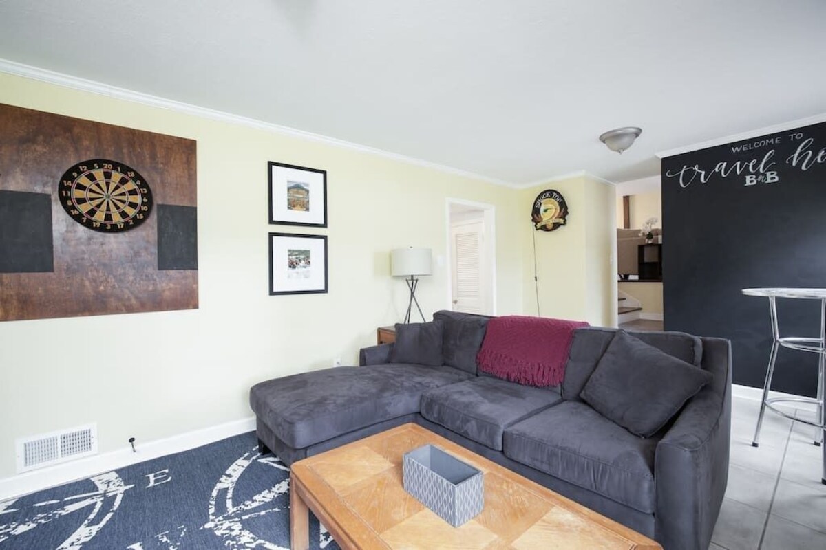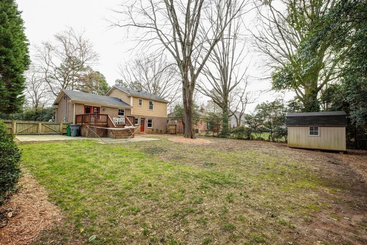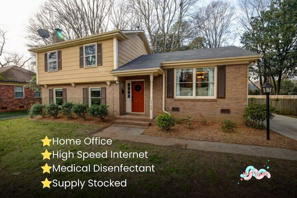 Summary: Enjoy the heart of SouthPark from this 4 BR home with game room, two common areas, and natural fenced in yard. Nestled between beautiful tree-lined streets blocks from the spectacular retail community of SouthPark. Perfect for groups: open great room, plenty of seating, and game room! Enjoy quick access to all of Charlotte! Book Now! The Space: This amenity-packed home comfortably accommodates up to 8 guests, in 4 large bedrooms, with 2 additional couches. It's Ideal for large families and big groups, but flexible enough for business travelers and couples. Remote Workers and Students work simultaneously on our high-speed internet. Work at a desk in your private room, the kitchen table, the great room, or the den. Internet Speed: up to 300mbps Tested 2/7/2021: 210 mbps download speed The main floor offers tons of seating, perfect for entertaining. Prepare a tasty meal in the stainless steel kitchen, completely stocked with: oven, stovetop, microwave, toaster oven, pots & pans, glasses, plates, and utensils. Coffee and tea is included! Unwind to cable and Netflix from the 50 ” Smart TV, or additionally in two of the bedrooms. Laundry machines, iron, and ironing board also included. Retire to your own specious bedrooms, featuring fresh pillows, comforters, towels, and linens. Each bedroom is equipped with a ceiling fan, plenty of closet storage space, and mirrors for getting ready. All bathrooms include plenty of shampoo, conditioner, body wash, and hand soap, Hairdryers are available in each full bath. The lower level suite features a bonus game room, bedroom, and full bathroom. Play game after game of darts, Giant Jenga, cards, board games, or color on the full-length chalkboard wall. Make your way outside to the large furnished deck, or down to the hammock and enjoy the private fenced in wooded back yard. Book now, and get the most out of Charlotte! Guest Access: Guests have private access to all 4 bedrooms, 2.5 bathrooms, kitchen, both living areas, laundry room, and backyard. The locked owners' closet and shed are unavailable. Ample parking is provided in the driveway and carport. Self-entry via electronic lock ensures easy access. Early check-in may be requested and accommodated if possible. The Neighborhood: SouthPark, a major retail and business district just a few miles south of Uptown, features SouthPark Mall, North Carolina’s largest shopping mall, Phillips Place for high-end shopping, dining, and movies, and Montford for more dining and entertainment options like Park Lanes bowling. The home offers quick access to SouthPark and other parts of Charlotte, with plenty of Uber options available. Distances: Myers Park: 4.9 miles | 10 minutes South End: 5.7 miles | 10 minutes Uptown: 7.4 miles | 15 minutes Dilworth: 5.8 miles | 12 minutes Plaza Midwood: 7.8 miles | 15 minutes Ballantyne: 7.7 miles | 15 minutes Pineville: 5.6 miles | 10 minutes Getting Around: The home is settled on a central street with quick access to SouthPark and the rest of Charlotte. During rush hour guests may prefer to make a right turn out of the property. Plenty of parking is available in the driveway and carport. Other Things to Note: **House Rules** The home is friendly to both pets and small children, pending they are house trained. Any breach will result in up to a $300 fine for additional cleaning. Baby (or puppy) gates are available as well as protective outlet covers! We provide starter supplies, enough for 3-4 day stays. It will be up to the guest to replenish those supplies for extended stays. Each guest will be provided a rental agreement before the start of your reservation. Per the NC Vacation Rental Act, signature, payment of money, or taking possession of the property are evidence of your acceptance of the agreement. The booking guest is required to complete the check-in form with a valid government ID. Missing or inaccurate information will result in a termination of your stay without refund. Minimum booking age: 25 years old. If the booking party is under 25, MyTripify reserves the right to collect a *refundable $1000 security deposit along with an ID of guest who is 25 or above. Alternatively the reservation may be canceled and refunded based on the cancellation policy. Access to the Home: Early check-in (1:00 PM) may be requested and will be accommodated if possible. Cost: $99 + Booking platform fees You have private access to the entire home except for the locked owners' closet on the lower level and the locked shed in the backyard. Use of the attic fan is prohibited as it may blow out the hot water heater’s pilot light To keep belongings safe and secure, be sure to lock all doors and windows when leaving the property. Check-in is at 5:00 PM Check-out is at 11:00 AM Holdover or Late Checkout will result in a $250 fee, and does not entitle the guest to any extension of the rental period. Quiet Hours - Beginning 10 PM: You have the right to quiet enjoyment of the property during your stay, please do not disturb the rights of the neighbors. Only guests on the booking are allowed on premises. No parties are permitted. Any neighborhood disturbance will result in a $400 fine and termination of your stay without refund. Pets: Approved pets must be confirmed prior to check-in, (3 pets maximum). Pending approval, the exact count needs to be added to the reservation prior to check in. Any undisclosed pets will result in a $350 fine. No cats allowed. Pet owners must disclose the type of pet, breed, name, and age. If pet stays are longer than 1 week, MyTripify may require guests to purchase travel insurance. Please keep pets off furniture and beds. Removal of pet hair from furniture will result in additional fees up to $300. Pet owners are to clean up after all waste in the yard and surrounding area. Any damages done will be charged to the guest. Parking: Parking is available in the driveway and carport for up to five cars. Driving or parking on the lawn or grass is prohibited and will i