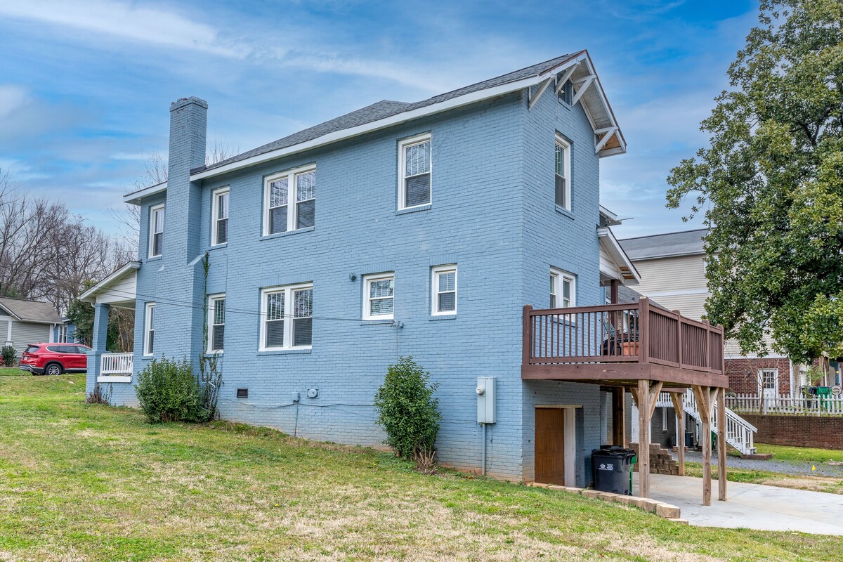 You CANNOT BEAT this location if you're looking to be close to uptown Charlotte, Southend neighborhood, and within a short distance to some of Charlotte's best restaurants, breweries, sports, and NASCAR. With a fine porcelain bathroom, stainless steel appliances, friendly neighborhood (Wesley Heights) you will feel just like home. House is equipped with all your traveling needs. Streaming services across all TVs and BIG ample space to work from home DESK provided. PET FRIENDLY. Travel nurses. It is a beautifully furnished family DUPLEX home is a classic but very well-maintained home, with two stories, a family deck with an outdoor seating area, a garage, and a spacious side yard for your lovely pet. To enter the home we provide an Electronic lock so you have a keyless experience and easy in and out of the house. 5 minutes from Bank of America Stadium, easy access to 2-77 highway to go anywhere in town, perfectly located nearby all the restaurants, businesses, and entertainment of uptown charlotte and main business. The home has hardwood floors throughout and features custom design elements that make this a one-of-a-kind space. The downstairs features a full kitchen with Keurig Brand Coffee Maker fully equipped to make your delicious coffee in the morning before going off to your next destination, well-maintained countertops, and stainless steel appliances including a microwave. The spacious living room features brand new furnishings, plenty of seating, and a large 4k SmartTV for all your entertainment needs. There is also a separate dining room downstairs, with an elegant banquet-style table with room enough for everyone up to 6. The half bath is located downstairs as well. The upstairs portion houses all three bedrooms. Each bedroom is outfitted with a plush queen bed, closet and drawer space, and their own TV's for a late-night movie. Brand new clean linens are provided. The full bathroom is upstairs and features a bathtub/shower. The house has multiple areas outdoors for getting some fresh air - the sweeping back deck is the perfect blend of inside and out. The parking is in the back garage + driveway, so parking is included. There is a washer and dryer in the home. All new lighting throughout the house and modern interior doors. The friendly neighborhood at one of the best locations in town to walk your pet, run, jog, or just take a breath in the beautiful summer. House has smoking detectors as well as CO2 detectors so no need to worry about unwelcome gases. - E-lock keyless entrance so you can easily access the house - Pets are welcome for 40$ per stay. - LONG STAYS ARE WELCOME to ask about a 1 to 2-month stay! We host travel nurses on an ONGOING basis. So you are welcome -SMOKING FEE OF $100 if you violate this rule NO PARTIES ARE ALLOWED OR CELEBRATIONS AT THIS LOCATION. Our prices include all fees. No hidden fees.
