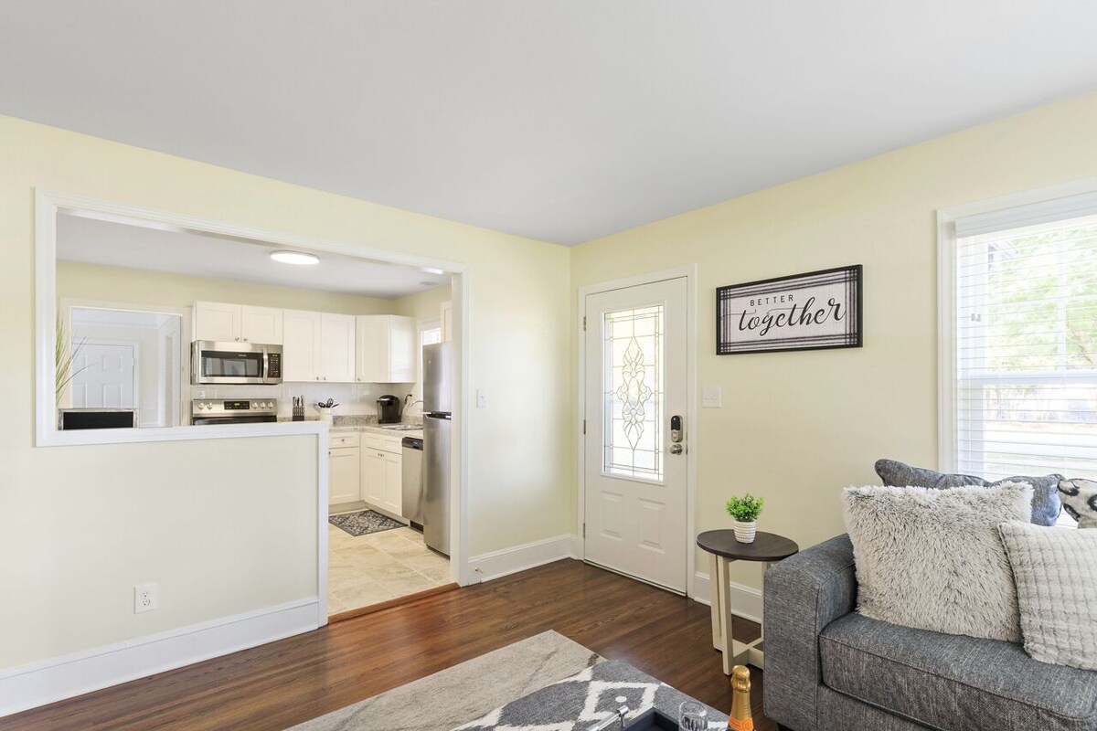 The home is 12 minutes from South End and Uptown CLT. Less than 15 minutes from Charlotte Douglas International Airport. Spectrum WiFi, 55\ ll feel right at home in this two bedroom, one bathroom home that just underwent a full renovation both inside and out. Whether traveling for business or pleasure, you smart TV. The kitchen is also stocked with brand new stainless steel appliances and a dinning table for gathering around. This home is a duplex (side by side). The home is friendly to both young children and pets. There is a 2 pet maximum at this time in which a pet fee will be added to your reservation. Security Deposit - if you damage the home, you may be charged depending on the cost to fix the damage. Added cleaning fee will be applied if guests smoke inside the home. Surveillance or recording devices on property - Security cameras on the outside only for noise monitoring. They are there for the safety of both guests and hosts. If the cameras are tampered with, the guest will be removed from the property immediately. Our prices include all fees. No hidden fees.