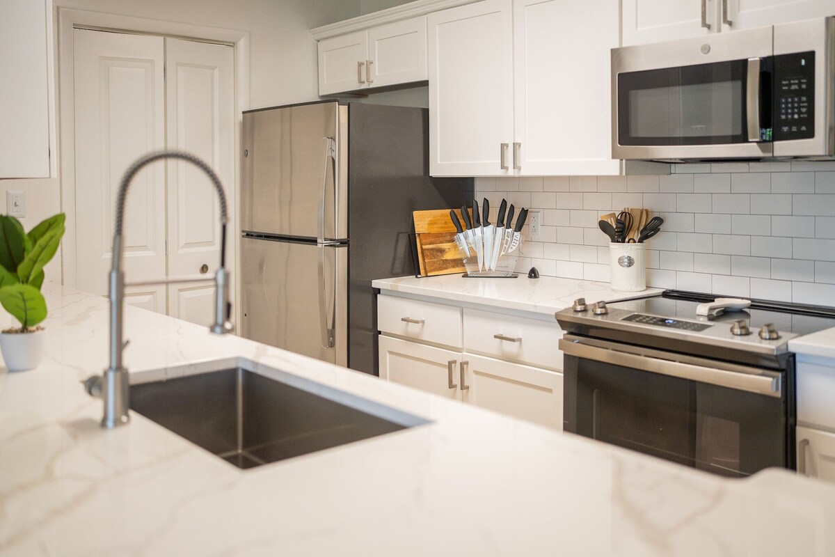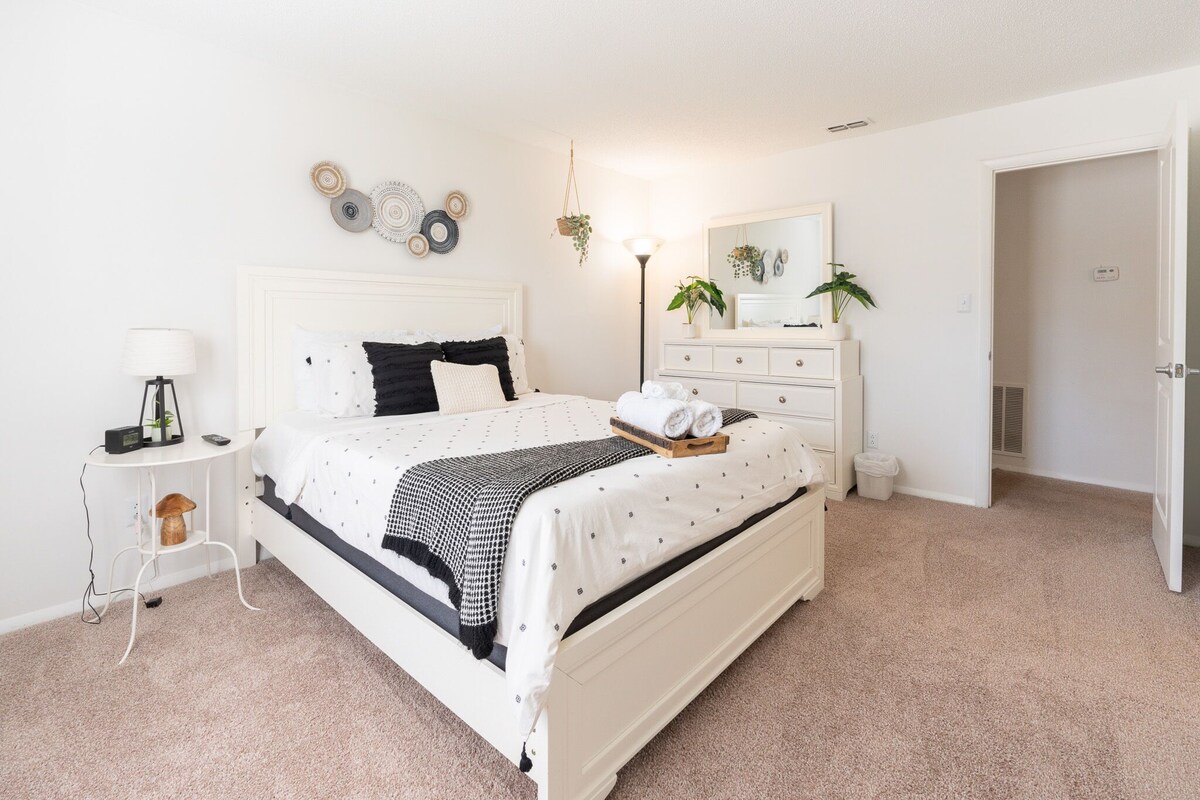Welcome to our spacious bohemian style apartment, featuring 2 bedrooms, 1 bathroom located in a peaceful residential area of South Charlotte. Conveniently located less than 1 mile from Quail Hollow Country Club (PGA), and 25 minutes from Charlotte Douglas International Airport, this space is easily accessible from I-77 and I-485. This modern, comfortable space has everything that you need for an unforgettable stay! Large picture windows throughout the house allow for healthy natural lighting. Our open-concept kitchen, dining, and living room has high-ceilings, the perfect area for lounging after a day of exploring! Enjoy all of the comforts of a modern home, such as reliable, high-speed WiFi, laptop friendly workspaces, a fully equipped kitchen, HD television, washer & dryer in-unit, and free parking. Have a morning coffee or evening drink on the patio, relax in the pool, workout in the gym, or take the kids to play in the playground. With pets allowed, this unique designed space is perfect for the whole family and extended stays are welcome! The full amenities of the space are detailed below: ★ LIVING & DINING AREA★ ✔ Large Comfortable Couch with Pillows ✔ HD Television & Roku Streaming ✔ Stylish Coffee Table & Themed Decor ✔ Dining Table & Seating for 4 ✔ Fireplace, Air Conditioning & Heating ✔ Washer & Dryer In Unit ✔ Free High-Speed WiFi & Laptop Friendly Workspaces ✔ Large Windows with Natural Lighting ✔ Enclosed Balcony with Screen & Furniture ★ FULLY EQUIPPED KITCHEN ★ ✔ Modern Stovetop & Oven ✔ Microwave Oven & Dishwasher ✔ Large Refrigerator & Freezer ✔ Electric Kettle & Coffee Machine ✔ Knife Set & Basic Cooking Utensils ✔ Plates, Silverware, Trays, Pots & Pan ✔ Cups, Coffee Mugs, Wine Glasses ✔ Detergent & Cleaning Products ✔ Ample Marble Counter Space ★BEDROOM 1★ ✔ 1 King Bed & Nightside Table with Lamps ✔ Clean Pillows, Linens, Comforter & Towels ✔ HD Television & Roku Streaming ✔ Large Window with Natural Lighting & Shades ✔ Mirror & Closet & Dresser with Drawers ✔ Bedside Armchair for Additional Comfort ★BEDROOM 2★ ✔ 1 Queen Bed & Nightside Table with Lamps ✔ Pillows, Linens, Comforter & Towels ✔ HD Television & Roku Streaming ✔ Large Window with Natural Lighting & Shades ✔ Mirror & Closet & Dresser with Drawers ★ BATHROOM ★ The home features a single bathroom with a shower, tub, sink, vanity, hair dryer, and toilet. Complimentary hand towels, bath towels, shampoo, conditioner, hand soap and toilet paper are also available for your convenience. ★ADDITIONAL AMENITIES★ ✔ Pets Allowed ✔ Washer & Dryer In-Unit ✔ Ironing Board & Laundry Detergent ✔ Free High-Speed WiFi & Laptop Friendly Workspaces ✔ Free Parking & 24/7 Fitness Center ✔ Pool with Lounge Chairs & BBQ Equipment ✔ Playground & Grassy Areas ✔ Tennis Courts & Nature Trails ✔ Peaceful Residential Neighborhood ✔ Convenient Location Our prices include all fees. No hidden fees.