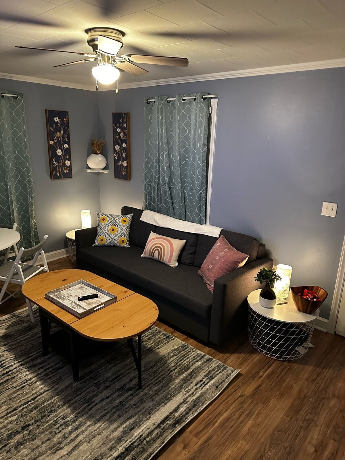 A two bedroom house in Charlotte's best neighborhood - SouthEnd. Everything you need for a delightful stay is provided. Two comfy King beds and a queen pullout from IKEA make for ample sleeping arrangements for multiple couples. Nestled amongst truly spectacular houses, this place is an ideal spot from which to explore all that Charlotte has to offer. Fully fenced yard with fire pit and picnic table too! Enjoy a unique getaway in this stylish home featuring a “Fun Cave” with a hot tub, arcade games, and a large TV. Relax in the spacious, fenced-in yard with a cozy fire pit, perfect for evenings under the stars. Located in a vibrant area, you’re just steps away from trendy restaurants, nightlife, and shops. Pet-friendly and ideal for short-term stays, this is your perfect home base for exploring all that Charlotte has to offer! Book now! Our prices include all fees. No hidden fees.