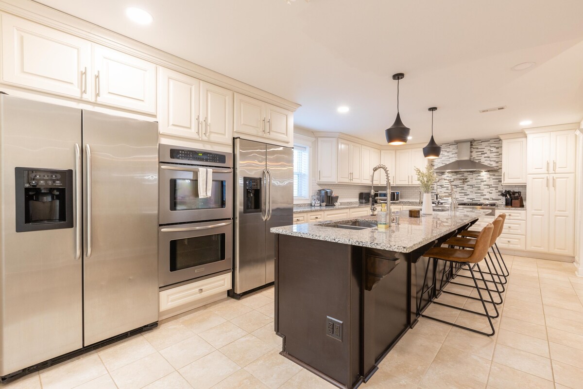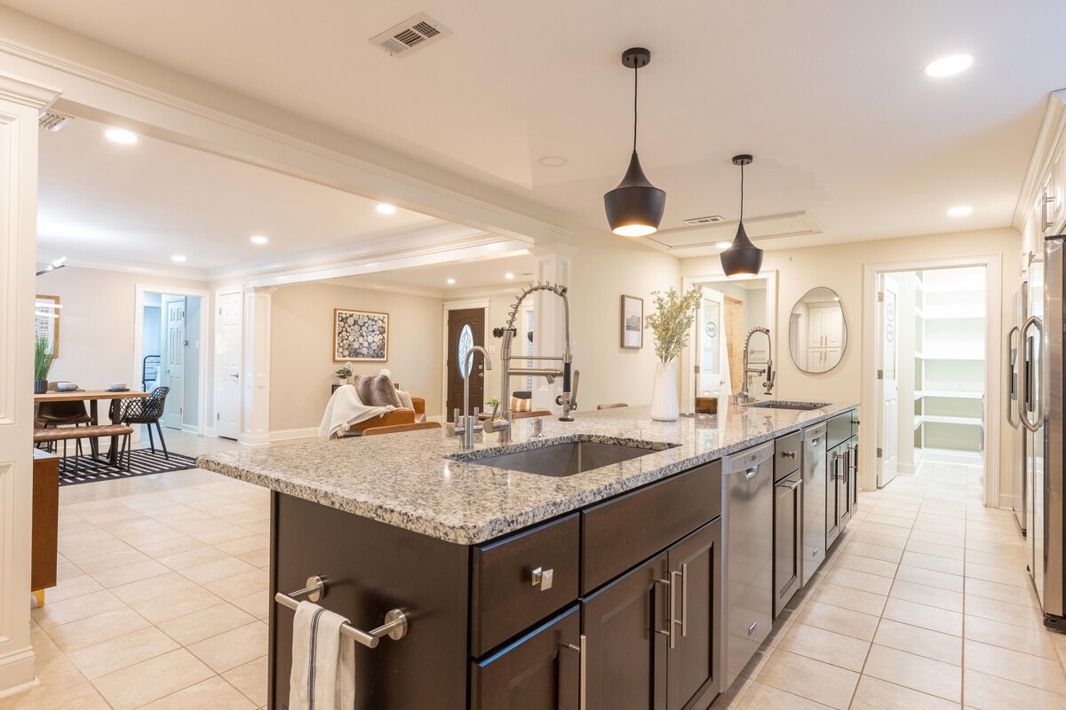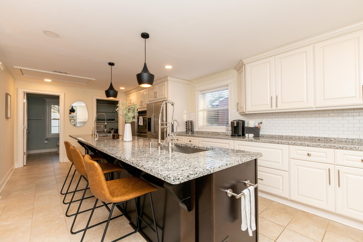 4. Extra large kitchen island or farmhouse table for cozy dining.