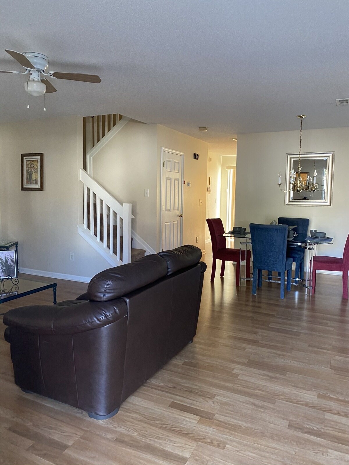 Beautiful Centrally Located Townhouse Experience comfort and convenience in this spacious 3-bedroom, 2.5-bath townhouse nestled in a quiet, desirable neighborhood. This fully furnished home boasts: Master Suite: Vaulted ceiling, large walk-in closets, and a private ensuite bathroom. Additional Bedrooms: Two generously sized, tastefully furnished rooms. Modern Amenities: Ceiling fans in every room, central heating and cooling, U-verse HDTV, wireless internet access, a washer and dryer in a large laundry room, and a dishwasher. Living and Dining Areas: An immense great room with an attached dining area, perfect for entertaining. Kitchen: A spacious kitchen featuring a center work island for added functionality. Ideal for those seeking a blend of style, comfort, and modern living. Our prices include all fees. No hidden fees.