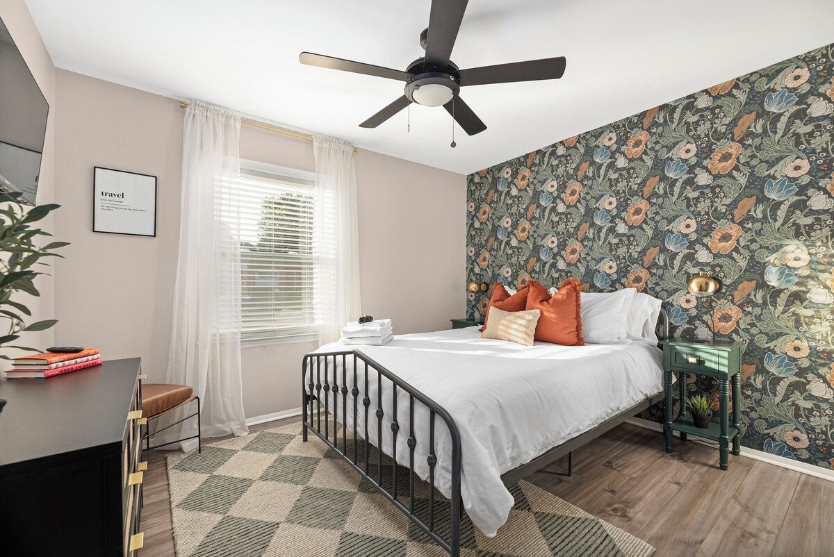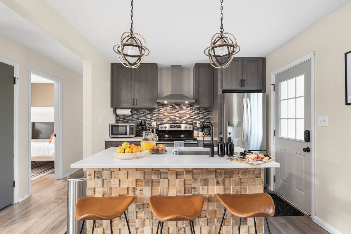 Fully Renovated 1960’s home just 10min outside of Uptown with parking for 4 cars and a fenced in back yard. The home is exceptionally clean, dog friendly and only minutes from all things Charlotte. Our guests love our home! NEARBY DESTINATIONS -Camp North End | 2.9mi/9min -NC Music Factory | 3.1mi/8mins -Fillmore | 3mi/9min -BofA Stadium | 4.6mi/10min -Spectrum Center | 4.1mi/10min -Optimist Hall | 4.2mi/10min -NoDa | 4.2mi/14min -US National Whitewater Center | 13mi/19min THE SPACE - Parking for 4 cars (2 in driveway, 2 street spots) - Maximum Occupancy is 7 guests/visitors and 2 dogs - 3 Bedrooms: Full-Twin Bunk, Queen, King - 1 Bathroom: Double vanity - Updated, modern comfort decor - Open shared space - Gravel Patio - Solo Stove fire pit - Charcoal Grill - Plenty of seating - 2 dedicated workspaces - 500MB WiFi - Easy access charging ports - Compact and Functional Kitchen - Washer and Dryer - Iron & Ironing Board Porch: Enjoy a morning coffee on the porch chairs or a glass of wine with the sunset. Living Area: Relax on the large sectional and enjoy the 55” Roku Smart TV w. Airplay. Challenge each other to games or enjoy snacks on the coffee table. Kitchen: Compact Kitchen with everything you need to enjoy your stay. We enjoy it being open to the living room and dining area. - Pots & Pans - Serving Utensils - Salt & Pepper - Seasonings and Spices - Knife Block and Sharpener - Electric Stove Top Oven and Range Vent - Large Stainless Steel Sink - Dishwasher and Detergent - Refrigerator and Freezer with water dispenser and ice maker - Countertop Microwave - 12 cup coffee brewer - French Press - Glasses - 16oz, 12oz and Wine Glasses - Plates and Bowls - 3 Barstools Dining Area: Adjacent to the kitchen and living area with a table and chairs/bench for 6. Fenced Backyard: The backyard is great for spending time outside with a view of the lights of the uptown skyline in the evenings. Gravel patio and Adirondack chairs are great for entertaining around the grill or fire pit. ACCOMMODATIONS - Premium mattresses - Fresh, soft bed linens - Pillows - Full length mirror - Closet space - Easily accessible charging outlets Bedroom 1 Front yard view. Great for 3 people on the bunk beds with a Full Nectar mattress on bottom and Twin Lull mattress on top (150lb. max on top bunk). Bedroom 2 Front yard view. Great for 2 people on the King bed with Puffy Luxe memory foam mattress. Bedside lighting and a 50” Roku Smart TV w. Airplay. Bedroom 3 Back yard view. Great for 2 people on the Queen bed with DreamCloud Premier hybrid mattress. Workspace equipped with a desk chair and monitor with HDMI connection. Bathroom Hallway Bathroom with stone walk in shower and rainfall shower head/handle. Toilet and two vanity sinks and wall mirrors. Guest access Entire home is available for use except the utility closet in the back yard. GREAT FOR GROUPS OF FRIENDS Guests in town to visit CLT for weddings, games, concerts and more love our home. Location makes most of Charlotte easily accessible and within 20 minutes of Charlotte’s best destinations and activities. Home has everything you need to make this your landing pad for your visit. Fenced in backyard and patio great for outdoor entertainment and spending time with friends. Delivery and Rideshare Apps are very accessible. Maximum occupancy is 7 total guests/visitors. GREAT FOR FAMILIES Families enjoy the fenced in back yard, patio and kids channels on the Roku TV. The bunks are great for the little ones, bigger ones and the little ones that think they’re bigger ones. The washer and dryer are great for longer stays or unexpected accidents and messes. Highways are accessible to get to different areas of Charlotte quickly GREAT FOR BUSINESS TRAVEL (including Travel Nurses) Close by to Uptown Charlotte puts you in a great spot to get to the office, meeting or site. Work from home with close by coffee and foodie hotspots and space to get stuff done. Relax just outside the hustle and bustle of uptown on the patio or with a movie or game on the couch. GREAT FOR TRAVELING WITH A DOG Pet Friendly up to two dogs. We find it hard to leave ours behind and you shouldn’t have to. Fenced in back yard is great for letting them out and back door light helps you keep an eye on them. Our pups like sitting on the back steps or gravel patio and gazing at the creekbed and trees. $150 pet fee per stay. THE NEIGHBORHOOD Our home is located in a historic Charlotte neighborhood just outside of uptown and accessible to the entire Charlotte Metro area. The home conveniently sits a couple minutes from Interstate 77, 85, Brookshire Freeway and the 277 loop- the main corridors around the bustling city of CLT! Charlotte is the 3rd fastest growing city in America, but our home is on a quiet residential street where most of the neighbors have lived since the 60’s when their parents and grandparents first started families here. In an effort to keep a good relationship with our neighbors we strictly enforce our house rules. Please keep in mind that this is an ever-evolving and changing city - please be respectful and mindful of our neighbors during your visit! HOUSE RULES Failure to follow these guidelines will result in additional charges during your stay and potential immediate cancellation of your reservation by the booking channel. Many of these rules are a result of previous guest negligence. * No smoking inside the home. * No parties or events. * No unregistered overnight guests or pets allowed * The maximum property capacity at all times is 7 registered people and 2 registered dogs. Any guests/visitors exceeding 7 people warrant additional charges. * Unregistered dogs incur a $350 Penalty. * Quiet time after 11 p.m. (Music, talking or other disturbances). We have a great relationship with our neighbors and they are good people. Please help us keep it that way! * Do not leave fire pit unattended when hot. Use Metal Lid to cover hot coals if not completely extinguished. * Dispose of 