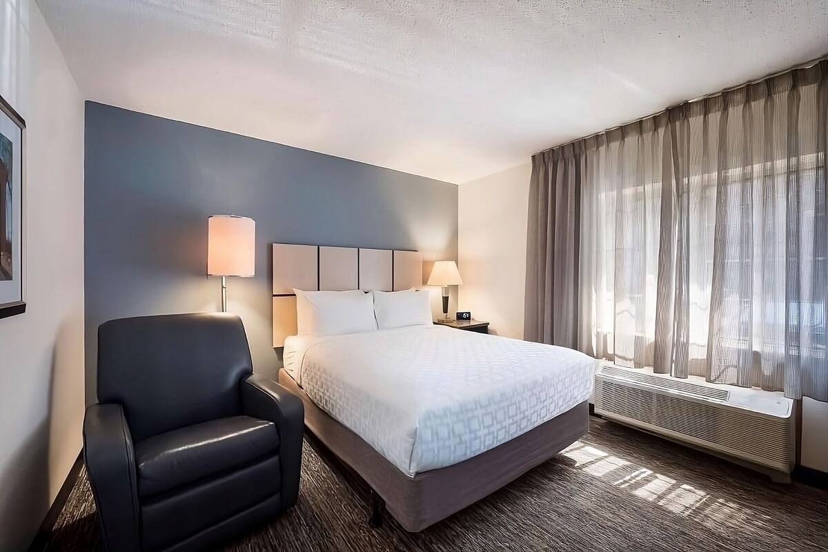 Discover the ultimate budget vacation destination in Charlotte, North Carolina This listing is for a room within a hotel. ✦ Your room is 350 sq. ft, equipped with complimentary toiletries, kitchen with basic amenities, TV, ensuring cleanliness and comfort throughout your stay. ✦ Daily cleaning services included in the nightly price. There are a few additional details to know before you book: ✦ The minimum age required for check-in is 21 years old. ✦ Please ensure you have a valid ID for check-in, as it is mandatory for entry. ——————————————— Guest Access: During your stay, you will have access to the property and amenities according to the following schedule: ✦ Check-in is available from 04:00 pm. ✦ Fitness center is available. ✦ Paid parking lot – 1 space(s), available for $5 per day. ——————————————— Other Things to Note: There are several additional things to note: ✦ A credit/debit card is required at check-in for a $250 refundable deposit, returned after check-out if no damages occur. ✦ Pets are welcome. $75 for 7 nights, $150 for longer stays plus taxes ✦ We use multi-unit listings, so rooms are similar but may have small differences. Our prices include all fees. No hidden fees.