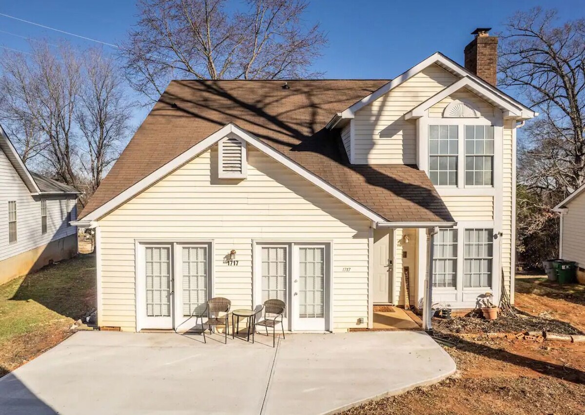 ★ 2bed a den 2.5bath Open Floor Plan home with tall ceilings and lots of natural lights. Outdoor fire pit for cozy night with Family and friends★ ☞ CAL King bed +Walk-in Closet ☞ 2 Smart TV’s ☞ Fully equipped + stocked kitchen ☞ Access to tennis court, Trails, and Playground ☞ Parking on property ☞ Pet friendly ☞ Free Wi-Fi 5mins → UNC, Plant Fitness, LA Fitness 15 mins → NASCAR Hall of Fame, BOA Stadium, Topgolf and Concord Mills Concord Regional Airport 23 mins → Charlotte Douglas International Airport On-site free parking is available for your convenience. Access to shared laundry room (It is accessible to both parties through a Jack-and-Jill-style setup. You're welcome to use it at any time—just be sure to keep your door closed at all times for privacy.) Perfect for 30+ day stays. Inquire for longer bookings or special accommodations. Our prices include all fees. No hidden fees.