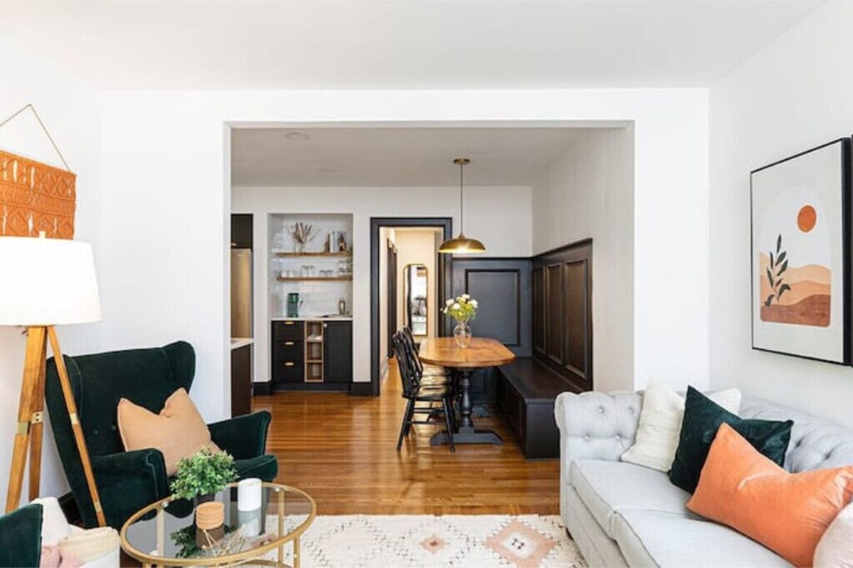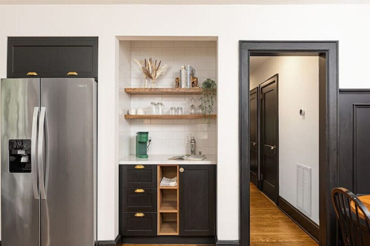 Indulge in the charm of this beautifully restored Tudor-style home nestled in the heart of Dilworth. Meticulously renovated and professionally designed, this quaint abode offers unparalleled comfort and convenience. Situated in a prime location, it provides easy access to all major attractions, such as Freedom Park, Uptown CLT, Southend, CMC Main, Novant Health, BOA Stadium, and CLT Airport. Experience the best of Charlotte with a touch of elegance, just moments away from all the excitement! The Space: Step into The Amelia, where you'll enjoy the exclusive use of one side of this beautifully renovated all-brick duplex. Your private access leads you to a designer-friendly living room, perfect for unwinding with a good book or indulging in your favorite shows on our ROKU Smart TV. The kitchen is fully stocked with pots and pans for the day-to-day chefs as well as all the necessities to have a home-cooked meal. Discover a delightful oasis just off the kitchen – our inviting dry bar awaits your pleasure! Savor your mornings with a steaming cup of coffee or embrace the evening's charm with a glass of wine or your favorite cocktail. We've provided a curated cocktail recipe book and a shaker for crafting your favorite concoctions. The perfect spot to unwind and relish the moment. Retreating to the rear of our home, you'll discover two inviting bedrooms. The larger of the two is perfect for those traveling with little ones, offering ample space to accommodate a pack-and-play/crib, which we can provide for a nominal $10 fee. As for the master bedroom, it comes thoughtfully equipped with a dedicated workspace, complete with a cozy desk and chair. Whether you seek relaxation or productivity, our bedrooms are ready to cater to your every need. A full bathroom with a deep soaking tub/shower combo is conveniently located at the end of the hall. Bath amenities are there for your convenience. Don't forget to embrace the beautiful Charlotte weather – step out onto your private, screened-in porch, thoughtfully furnished with cozy outdoor furniture, and let the gentle breeze from the ceiling fan envelop you in ultimate comfort and relaxation. It's a tranquil retreat designed to make your stay truly enjoyable and unforgettable. Guest Access: You'll have access to the entire left side of the duplex. There is a door in between the two sides of the duplex, located in the hallway, that is always locked and soundproofed for the guest's (and our own) convenience. The backyard has yet to be renovated, but we keep it mowed in case you'd like to use it for any reason. Other things to note: My wife and our two children (2.5 yrs old and 4.5 yrs old) live on the other side. You'll more than likely see us coming and going as we try and keep up with our kiddos! Feel free to say hello! Throughout the renovation, we tried to do as much as possible to limit the transfer of sound in between the two sides but, as you can imagine, it's nearly impossible to limit ALL sound. So you may hear our kiddos before and after school. But we try to keep things as quiet as possible. Our prices include all fees. No hidden fees.