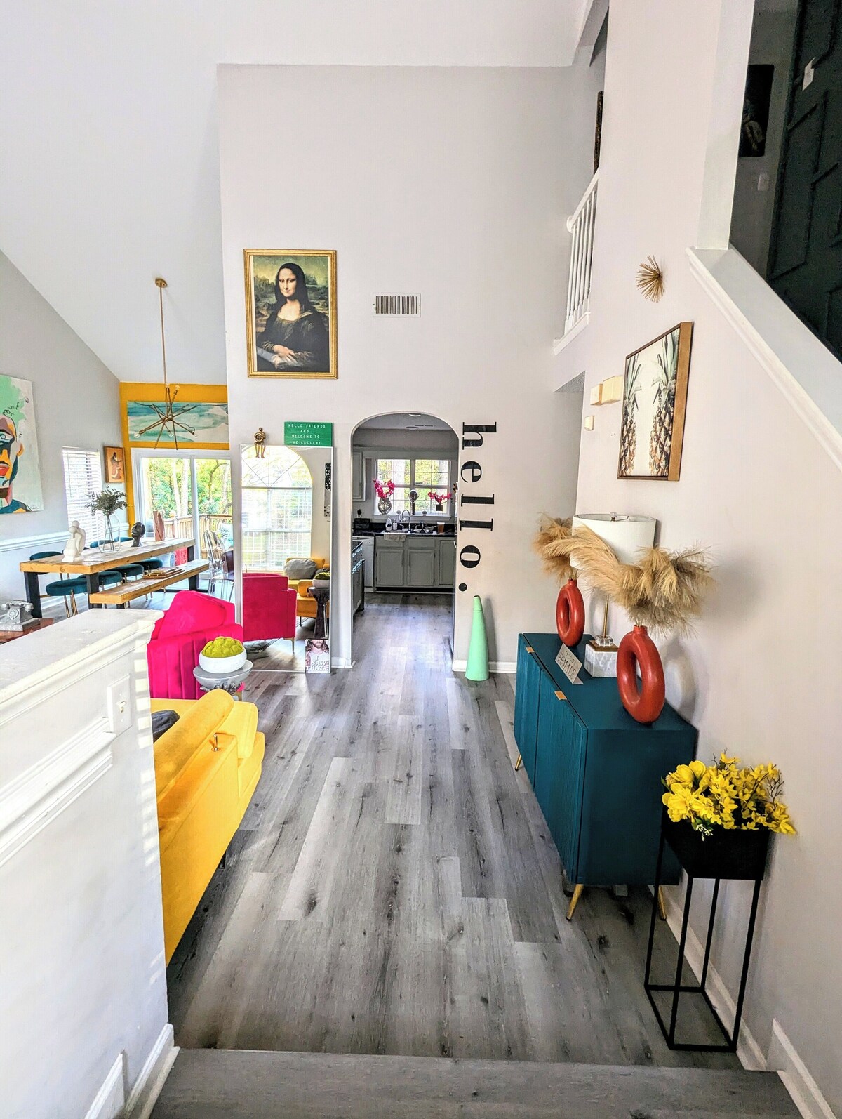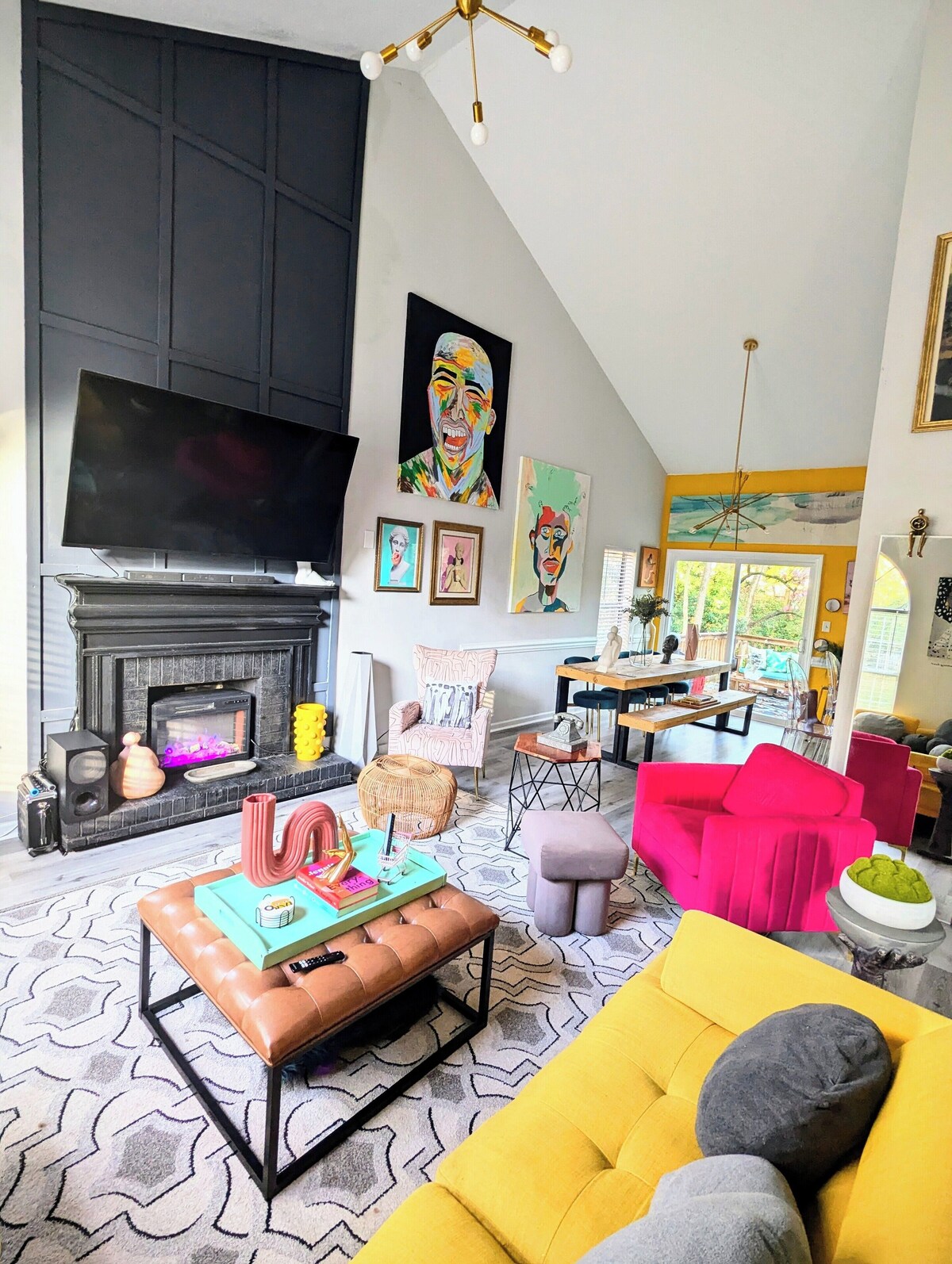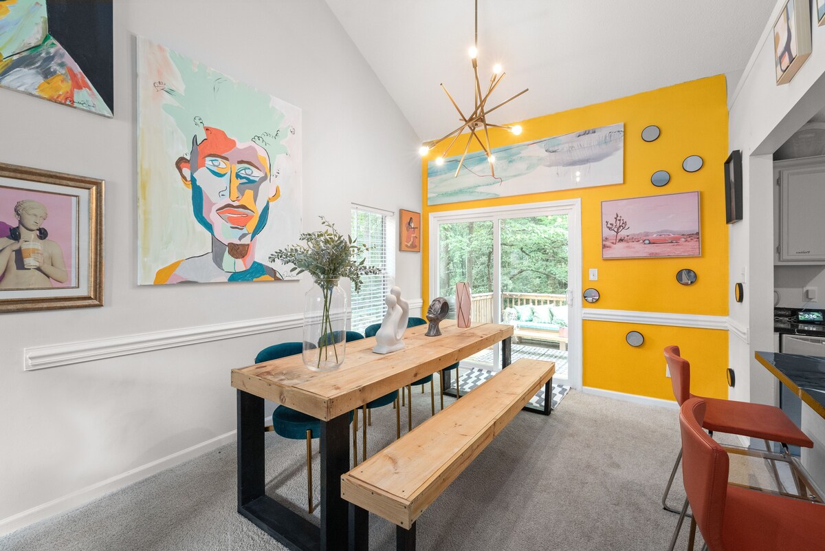 Come kick back and relax at The Gallery! This home is inspired by my artwork as well as thoughtful touches with you in mind. Every detail is designed for a one-of-a-kind experience. This home away from home is located: * 5 min from Hornets Nest Park * 5 min from Northlake Mall, shopping, grocery and over 50 local restaurants * 5 min walking trails in the neighborhood * 10 min from downtown * 14 min from Truist Baseball Field * 15 min from PNC Pavilion * 16 min from Bank of America Stadium * 17 min from AvidXchange Music Factory * 17 min from Speedway Harley-Davidson * 17 min from UNCC campus * 18 min from South end area * 19 min from Bojangles Coliseum * 19 min from Charlotte Douglas Airport * 20 min from Noda area The space includes: * Artsy chic interior design * Exposed brick and electric fireplace * 20 ft vaulted ceilings * Free parking. The driveway can fit up to 5 cars, and free street parking is available. * 3 BR / 1.5 BA available, 1965+sf * Wifi * Fully stocked kitchen * Outdoor firepit * Outdoor movie theater * 2 Outdoor daybed tents with curtains * JYX Karaoke Machine with 2 Wireless Microphones, Portable Bluetooth Speaker with Bass/Treble Adjustment, PA System with Remote Control, LED Lights,Supports TF Card/USB, AUX IN, FM, REC,TWS. * Smart TVs with Netflix, Amazon Prime, Spotify, Pandora, Roku, Alexa Echo, HBO, etc. * Sony HT-S40R 5.1ch Home Theater Soundbar System * Games (Uno, playing cards, life size games, family feud, monopoly, minute to win it, bowling, checkers, chess, mini and giant beer pong and more) * Loft with LED lighting * Coffee and popcorn machine * Large backyard * Corn hole * Washer and dryer onsite * 5-in-1 Babyjoy baby bedside sleeper featuring bassinet, travel pack and play crib, changing diaper table, cradle and playpen * Toys for ages 0-12 * Workout equipment: Resistance band, yoga mat, pull-up rope, countable jump rope, and (2)15 lb weights * Birthday Decor: (includes set up for $60) sash, crown, LED letters \ lights, LED birthday sign, sunglasses, sequin table runner, door banner, and fringe backdrop (check pics). * Stainless steel Whirlpool appliances * 24/7 actively recording outdoor security cameras at the front door * Newly installed 16 ft fully enclosed pergola featuring a clear roof and spacious enough for up to 20 guests. House Tour: Guests have access to the whole house, excluding 1 bedroom downstairs and all bedroom closets. No worries, there is an ample amount of dresser space for storage in every space. Walking in, you will be welcomed by an open space introducing you to the kitchen, living area, and dining room. Enjoy the amazing surround sound, turn on the fireplace, or make yourself welcome to the abundant options of games. Along the hallway is the guest bathroom, 1 bedroom, and the laundry room towards the back. The bedroom includes a queen size bed with a sliding twin size bed underneath. Upstairs, there are 2 bedrooms that both include a queen bed and an additional twin trundle bed. The loft includes a large sleeper futon that can sleep 2. Inside the loft, enjoy a cappuccino or pop some popcorn and enjoy a great movie night with some fun LEDS. Upstairs includes the full bathroom. Returning downstairs in the coat closet is the high chair, the 5 in 1 pack and play for a baby under 20 lb including a mattress and a bassinet, and a baby bath. The backyard is a lovely oasis that has several spaces to relax and unwind. Starting off, enjoy at the firepit to sit and have great conversations, or make smores. The deck is a perfect space to listen to the tranquil waterfall, read a book, or enjoy the natural views. The pergola is large, yet intimate to enjoy an enclosed area, eat during a BBQ, or just gather with friends. Newly added is a 10x17 ft floating deck with 2 daybed outdoor tents that can be fully enclosed for a glamping experience. The outdoor movie theater makes for a memorable evening with equipment and materials taking approximately 10 minutes to set up. So, no matter the mood or the vibe, The Gallery is here to welcome you and your guests! Our prices include all fees. No hidden fees.