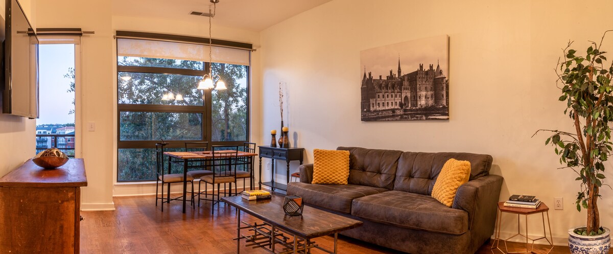 Quaint Studio apartment located in the heart of the city. One block from the Spectrum Center, 5 minutes from the Bank of America Stadium and Truist Field. Perfectly located for sporting events or brewery/restaurant districts (NoDa, South End & Plaza Midwood). Close to all uptown dining/entertainment and light rail. Secure Garage parking space.