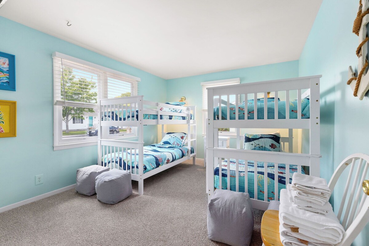 Summary: Bayside Tiki offers plenty of space for friends and family to gather. Spacious home with 3 bedrooms and 2 full baths. Sleeps 8 comfortably. This home is fully stocked with everything you might need for your next vacation! Located in North OC. Short walk to beach. Views of the sunset over the bay are steps away from The Bayside Tiki. Game room with multi-arcade table, Chexx bubble hockey and board games. Spacious front deck. North Surf park is nearby and has a playground and Pickleball courts. Many restaurants close by. Dogs are welcome with additional fee. The Space: Welcome to Bayside Tiki – Your Fun & Relaxing Coastal Getaway in North Ocean City! Located in a quiet North Ocean City neighborhood, Bayside Tiki is the perfect beach retreat for families and small groups. Enjoy the best of both worlds—peaceful surroundings with easy access to the beach, just a 12-minute walk away. This inviting home features 3 comfortable bedrooms and is thoughtfully designed to sleep up to 8 guests. The bright, spacious living room is perfect for gathering after a day at the beach, with cozy seating and plenty of natural light. Created with entertaining in mind, Bayside Tiki boasts a large front deck with a grill, tiki bar, and picnic table—ideal for outdoor meals and evening cocktails. The open-concept kitchen is fully stocked with all the essentials, including cookware, utensils, and brand-new appliances. Enjoy meals at the dining table for six, with additional seating at the breakfast bar. Just off the kitchen is a cheerful game room—a fun space for kids and adults alike, complete with board games, puzzles, a multi-game arcade table, and Chexx bubble hockey. All bedrooms are tastefully decorated and include smart TVs, so you can easily stream your favorite shows and wind down comfortably each night. We’ve got your beach days covered with beach chairs, a cooler, and other essentials. After the sun sets, rinse off in the private outdoor shower tucked away in the back. The home includes private parking for 2 vehicles, with additional street parking available. At the end of the street, enjoy peaceful sunset bay views at a small park—a hidden gem perfect for a quiet evening stroll or a relaxing end to your day. Bayside Tiki is fully stocked, thoughtfully furnished, and ready to welcome you. Just bring your beach gear and get ready to make some unforgettable memories! We're a family-owned and operated rental business, not a large company or management firm. We live locally and take great pride in personally maintaining and managing each space. If anything isn’t quite right during your stay, please don’t hesitate to reach out. We’re nearby and will do our best to make it right as quickly as possible. Your comfort and experience truly matter to us! Come make your beach memories at Bayside Tiki—comfortable, convenient, and just steps from the surf. Guest Access: Guests will be provided with a code for the keyless entry of the home. The Neighborhood: Stay where the locals live! The Bayside Tiki house is nestled in the family friendly neighborhood of Caine Woods in North OC. Short walk to the beach (.6 miles). North Surf Park, Fiesta Park and and Northside Park (fireworks every Sunday) close by. End of 139th offers beautiful sunset views. Mini golf, Ice cream and many restaurants nearby. Getting Around: Easiest ways to get around town are to walk, drive, take the bus ($3 per day) or bike. Other Things to Note: Guests must be 25+ to rent If using grille guests are responsible for refilling propane if needed. Guests are expected to clean up after their pets and are responsible for bringing their own pet supplies (food, waste bags, etc). $75 per dog per stay Ocean City has adopted a noise control ordinance that makes it unlawful to cause or permit noise levels which exceed those established by the Department of the Environment of the State of Maryland (COMAR 26.02.03.02) or are in violation of Chapter 30, Article V of the Town Code. It shall be a violation of this agreement and grounds for eviction under Maryland law if these noise levels are exceeded as a result of activity on this property. Ocean City has other noise ordinances, which are criminal offenses if violated Early check-ins are not available June-August. Off season months depend upon availability and cannot be determined until the day of check in. We can not determine days prior to check in if housekeeping will have the unit ready earlier than 3pm. LINENS AND BATH TOWELS ARE PROVIDED. We provide enough TP (1 roll per bathroom), paper towels (1 roll) and trash bags (1 bag in bin and 1 back up bag) to get you started. Please bring your own supply to last your stay. BEACH TOWELS ARE NOT PROVIDED. Our prices include all fees. No hidden fees.