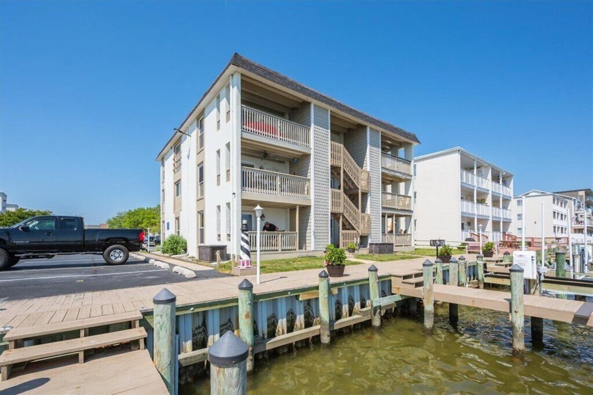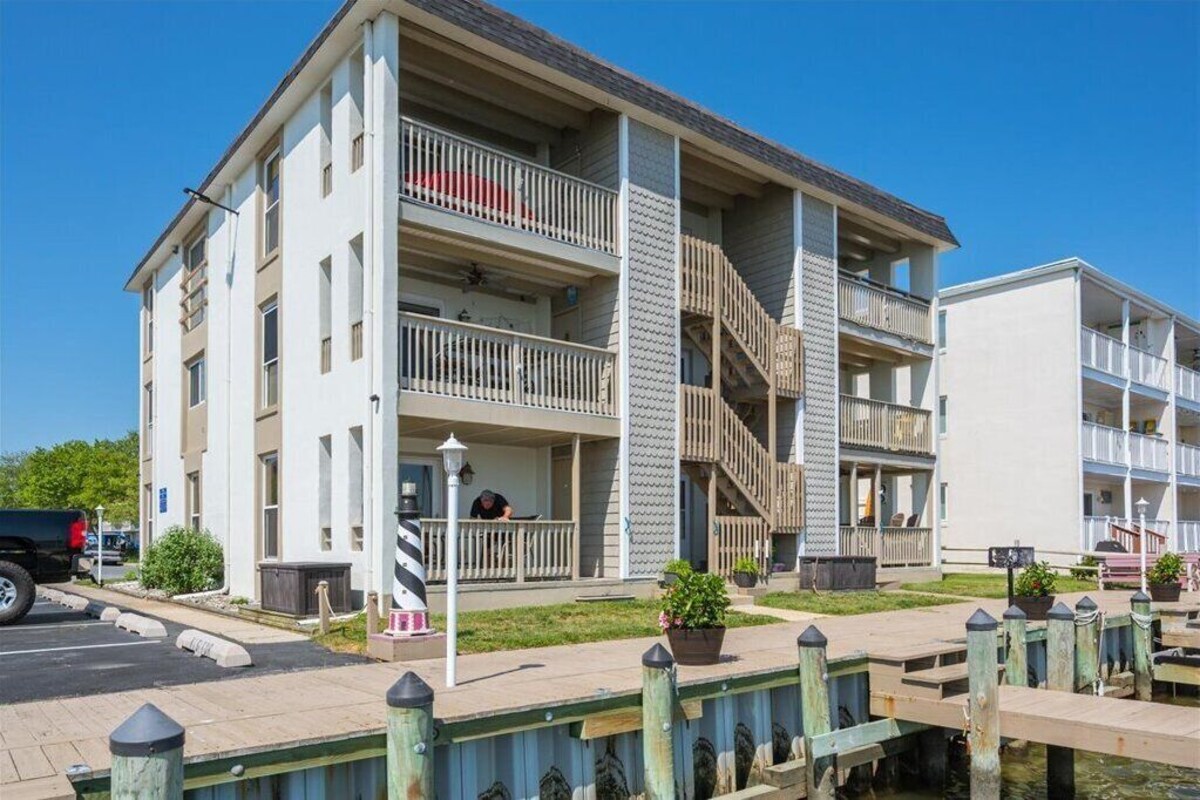Room 2 is a king size nectar bed, room 1 is a queen nectar and twin bunk bed nectar, and the front room is a queen sofa sleeper with a new memory foam mattress. The condo complex is on Assawoman Bay. Stacking washer/dryer, internet access, NOW TV, beautiful view of the bay from the porch. - 2 bedrooms; 2 full baths - 1 with a bathtub - Spacious Common Area w/ Pullout Sofa, Xfinity NOW and Internet, Smart TV in front room only. - Full Kitchen and Dining Area - Porch is perfect for spending time outside - Easy 10 min (0.6 mi.) walk to the Beach - Northside Park is just 10 streets away - Conveniently located to famous Crabcake Factory, WAWA, CVS, Food Lion, Dunkin Donuts and Greene Turtle, Shopping, and many other places - Limit to 2 dogs, total of 50lbs with separate fee - No smoking allowed. - 1st Floor unit - BOAT LIFT IS NOT AVAIALBLE FOR USE Our prices include all fees. No hidden fees.