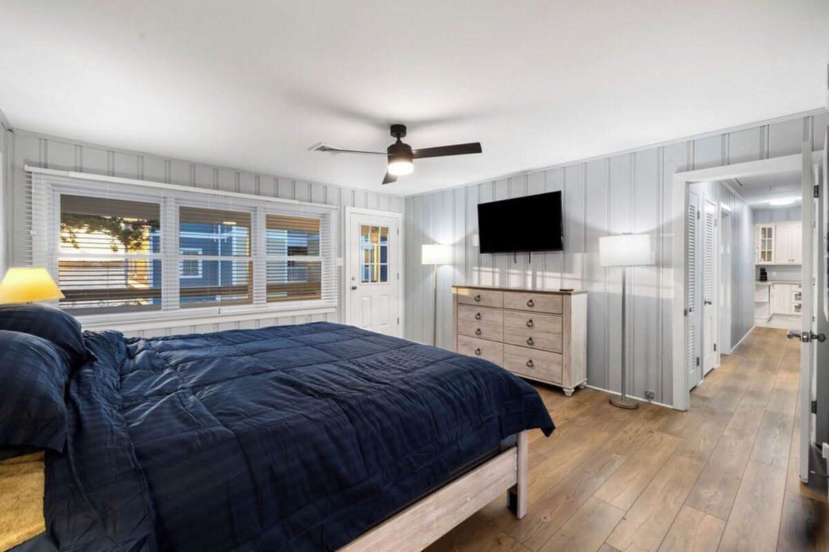 Situated on the edge of the bayside, from sunrise to sunset, the ever-changing hues of the sky paint a mesmerizing canvas. Edgewater Retreat is not just a place to stay; it's a sanctuary where you can unwind while enjoying the quietness of a bayside neighborhood but still being in the heart of downtown. Amazing Bay Views and only 3 blocks from the Beach and Boardwalk. Take advantage of the newly renovated Recreation Complex that is only 1 block away! pickleball, tennis courts, playground, walking paths. Our prices include all fees. No hidden fees.