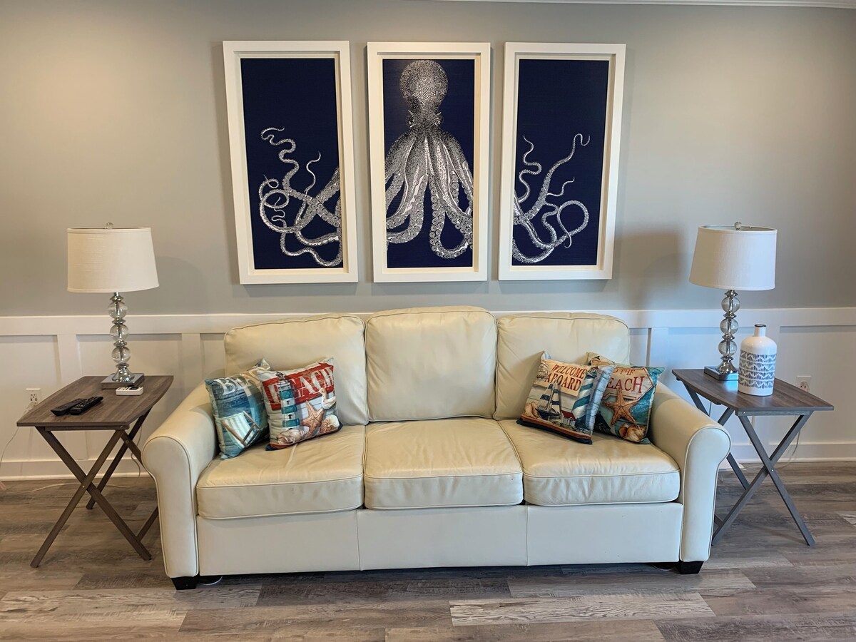 Located off of 94th Street, you are in mid-town, and close to all that Ocean City has to offer. The neighborhood sits closer to the bay, a quieter area off the highway and just a half mile, but an easy bike ride, walk, or drive to the beach. Many restaurants are close by or you can make your own meals in the full kitchen and dine on the deck overlooking the bay canal. The condo can sleep six with a sleeper sofa and futon great for young adults and kids, in addition to the king size bed. Starter supply of all needed toiletries, snacks, coffee, bottled water provided. Grocery store (Acme) is just down the street as well as a breakfast/lunch drive through (Coffee Beanery) in the same center as the grocery store. I, the condo owner, personally perform a detailed clean and stock the condo with starter supplies just prior to your arrival to ensure your total satisfaction. Your king size bed will be freshly made and clean bath towels supplied in the full bathroom. I will be available to help by phone within 15 minutes and if necessary can be at the condo within an hour if needed and only when desired by the guest. Our prices include all fees. No hidden fees.