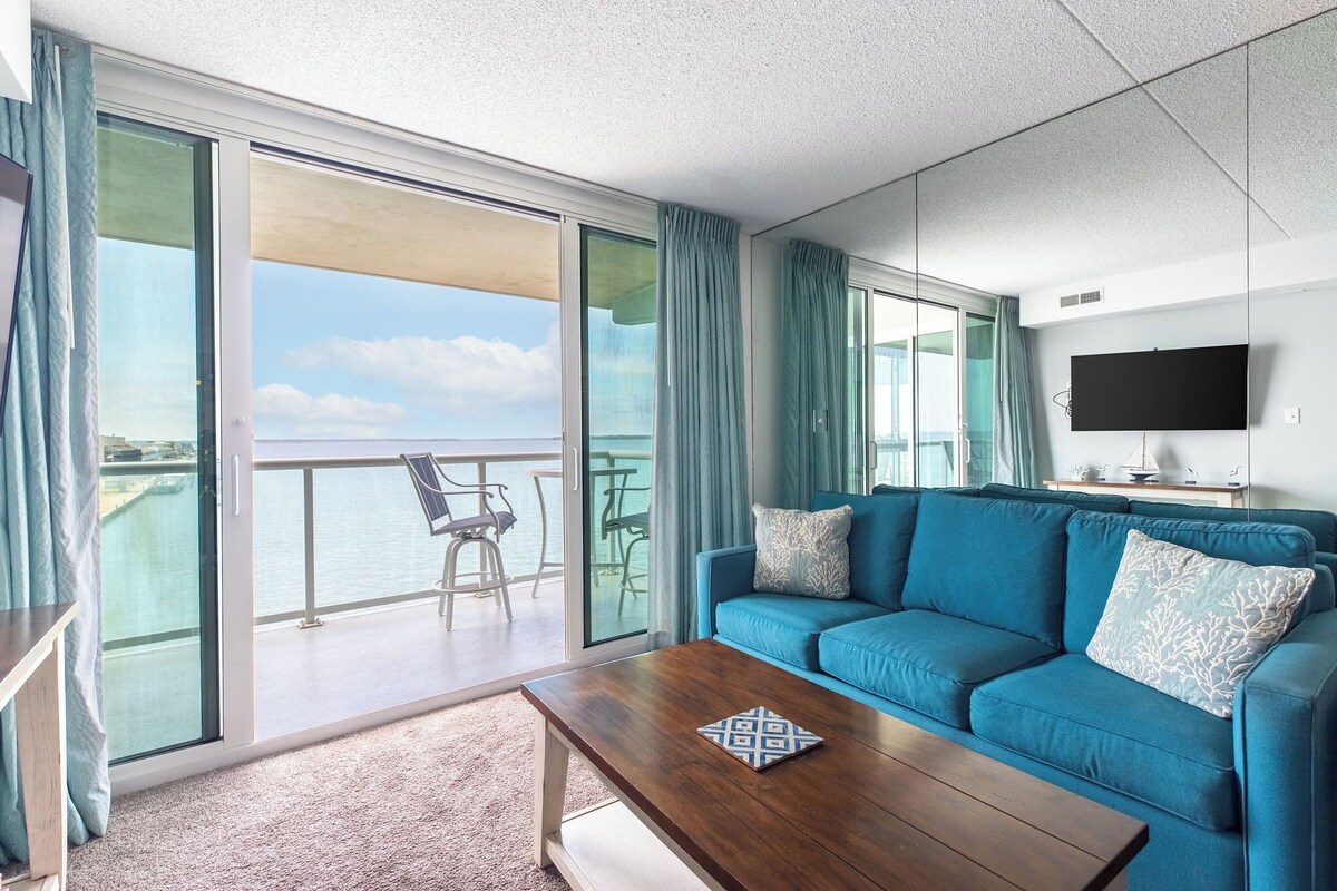 Escape to the charming seaside town of Ocean City, Maryland. Located on the fourth floor, this 2-bedroom, 2-bath condo offers stunning views of Assawoman Bay. Just 5 blocks from the Boardwalk and 4 blocks from beach access, it is conveniently close to local attractions and restaurants. Main Bedroom: Spacious king-sized bed with direct access to the balcony and bay views. Guest Bedroom: Furnished with two full beds, ensuring comfort for your guests. Balcony: Accessible from both the living room and main bedroom, equipped with outdoor furniture. Kitchen: Equipped with a coffee pot, toaster, kitchenware, utensils, pots, and pans, featuring great counter space and overlooking the open-concept common area. Dining Area: Seats six comfortably, perfect for shared meals and gatherings. Living Room: Includes a couch with a sofa bed and a loveseat, with bay views from the common area and main bedroom. Additional Conveniences: In-unit washer and dryer Bath towels and linens provided Free Wi-Fi Two parking permits included **Amenities Disclaimer: While we strive to maintain excellent amenities, occasional maintenance or unforeseen issues may arise. Our team is committed to resolving any concerns promptly to ensure a pleasant stay.** Must be 21 or older to rent. A security hold is due at check-in. Please remember that we do not provide salt, pepper, cooking oils, or coffee filters. This is a dog-friendly resort. Pet fee is payable upon check-in. Max: 2 dogs per unit 70lbs max weight limit per dog. Dogs are NOT to be left unattended in the unit. Our prices include all fees. No hidden fees.