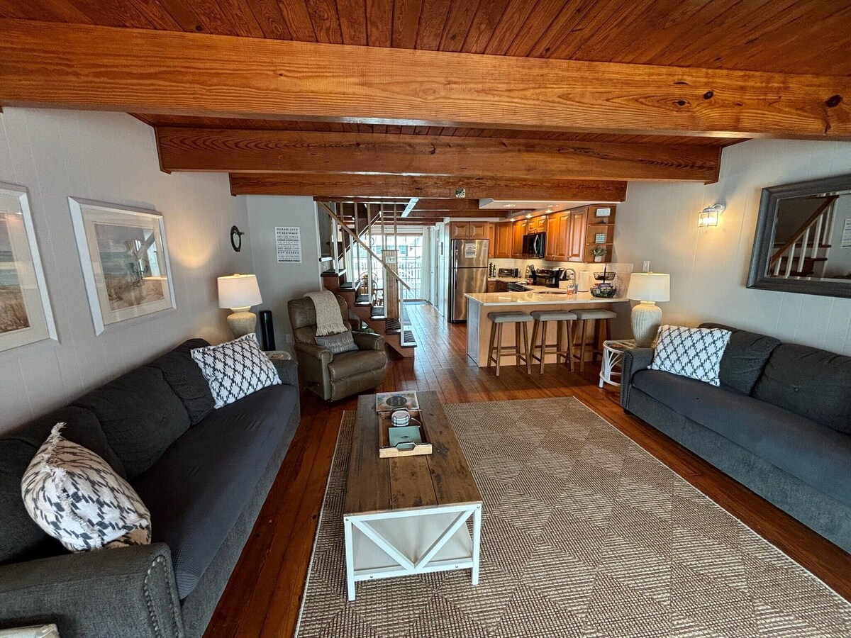 Escape to our family & pet-friendly oceanside townhome, perfect for your next getaway! Located ocean block and just steps from the beach, this beautifully maintained and recently renovated home offers the ultimate coastal retreat. Featuring 3 bedrooms, including a king bed with an optional cot, a full bed, and a twin-over-full bunk bed, plus two pullout couches for extra sleeping space, there's plenty of room for everyone. With 2 full bathrooms, an in-unit washer and dryer, and a fully equipped space with linens, towels, and essential amenities, your stay will be as comfortable as it is convenient. Step outside onto one of three private decks and take in breathtaking views of the ocean and bay. Private parking ensures a hassle-free arrival, and we welcome up to two well-behaved pets—so bring your fur babies along for the adventure! This home is personally utilized by the owner and meticulously maintained—we simply ask that you treat it with care, just as you would your own home. Interested in offseason renting (October–March)? Inquire with the host for availability and rates.
