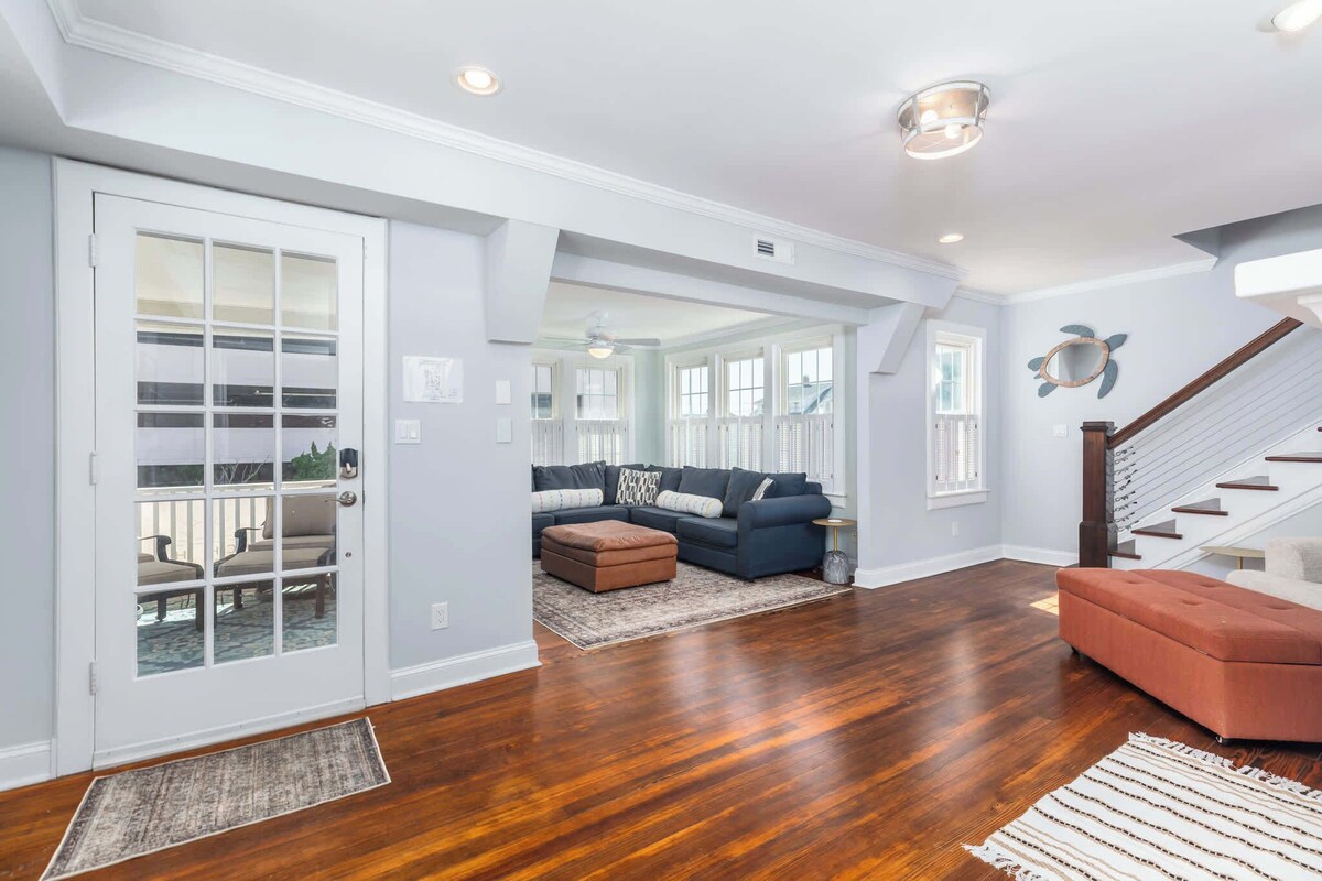 Summary: Escape to Surf 1 Upper House, a stunning 3-bedroom, 2.5-bathroom house steps from the Ocean City Boardwalk! This inviting property offers a perfect blend of comfort and convenience for your beach getaway. Enjoy spacious bedrooms, modern amenities, and easy access to the beach. Perfect for families, the house boasts a fully equipped kitchen, free parking, and is close to attractions like the boardwalk, games & rides and the BEACH. Experience the best of Ocean City with this prime location! Stay here for the concerts downtown! The Space: This home entrance is up a flight of stairs and is the whole 2nd level Rent the whole building for your group to sleep 17 (Unit 1, 2 & 3) The Neighborhood: Located between 7th and 8th street Ocean Block. Walk to the boardwalk, numerous restaurants and shopping like the Kite Loft, the T-shirt Factory, Shenanigan's, Arcades, Funnel Cakes and more! Our prices include all fees. No hidden fees.